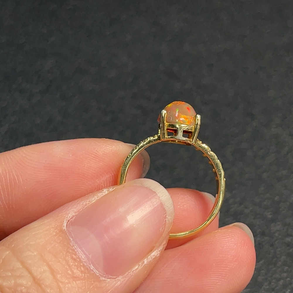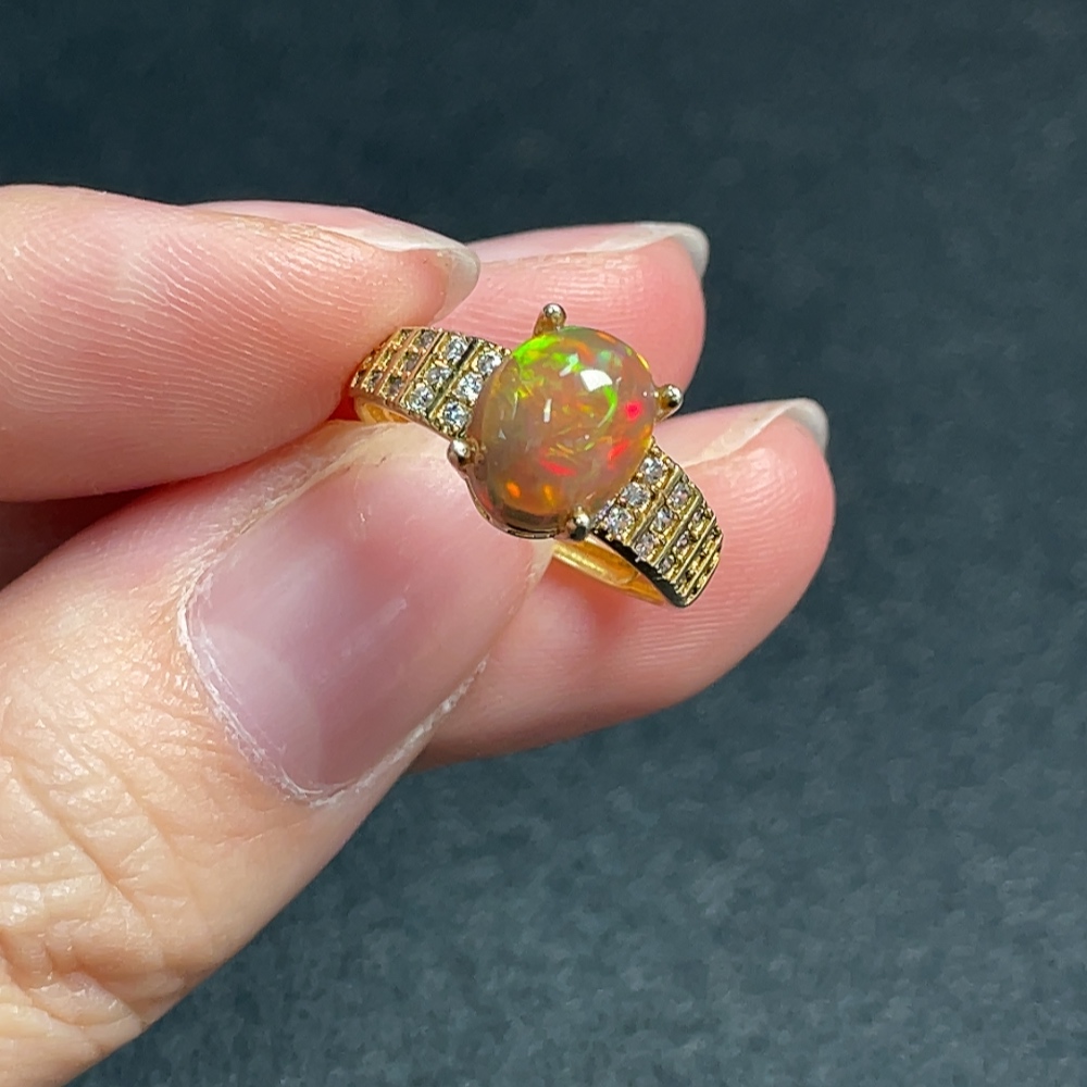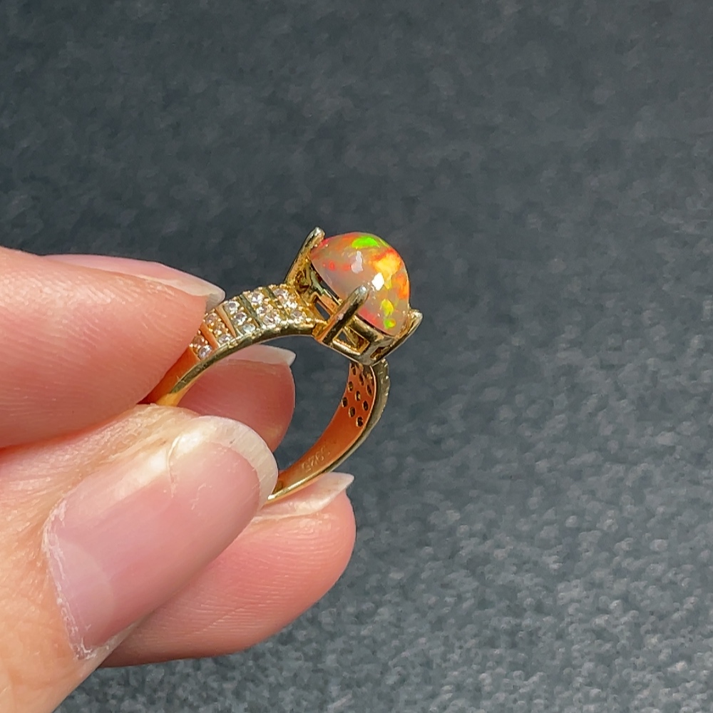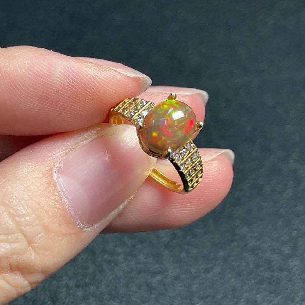 Opal ring, color origin undetermined, non-diamond, non-gold, total weight approximately 1.92g, size 9