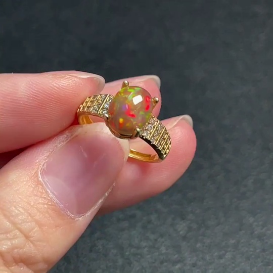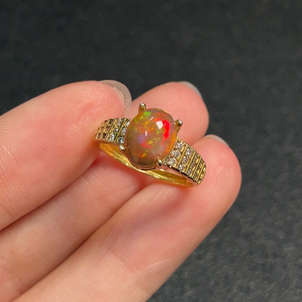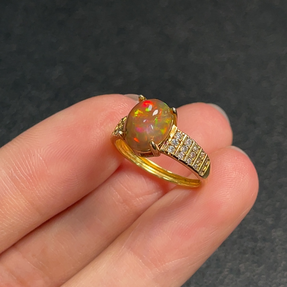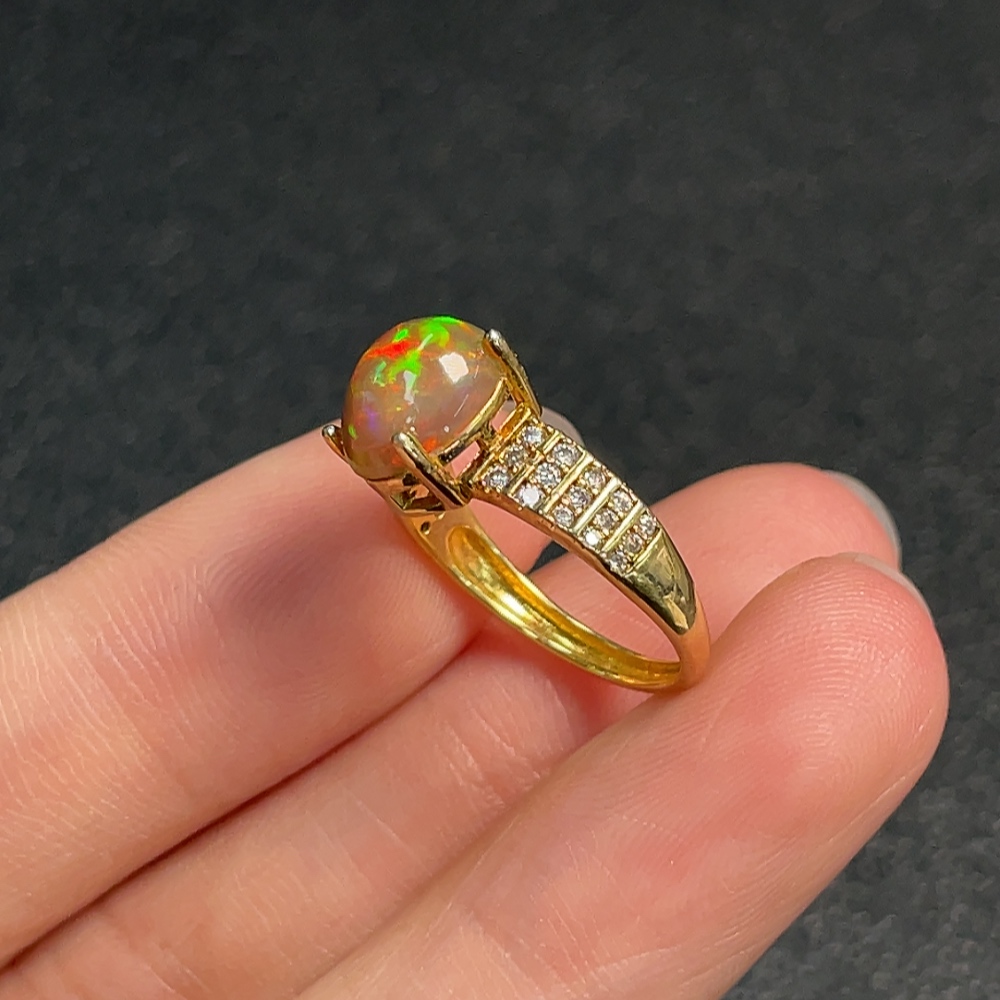 Opal ring, color origin undetermined, non-diamond, non-gold, total weight approximately 1.92g, size 9