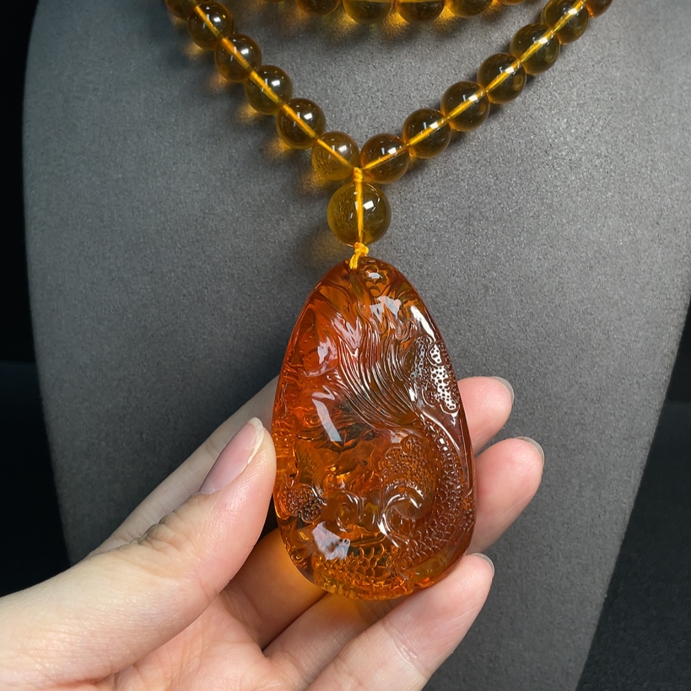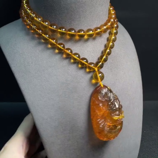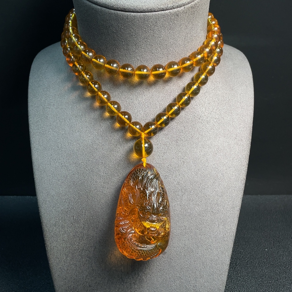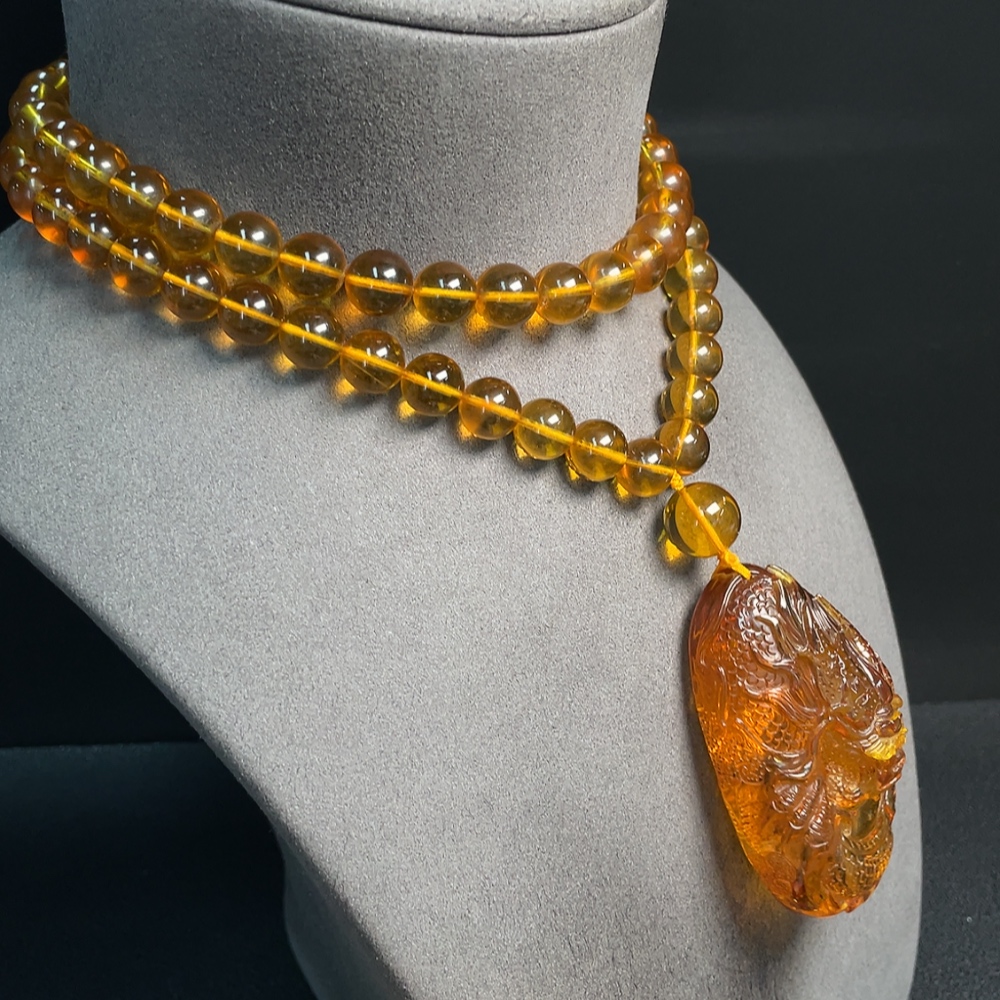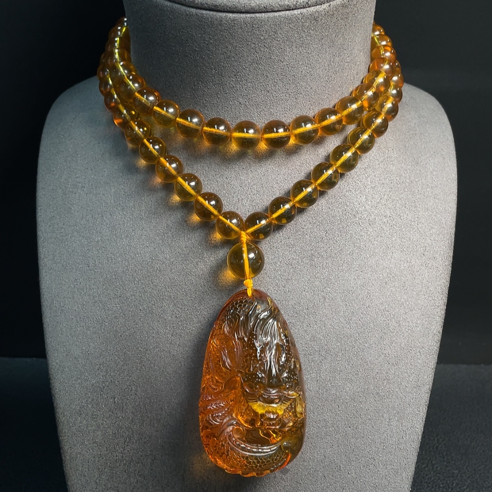 Amber Beeswax Pendant Total Weight Approx. 72.38g Including Chain