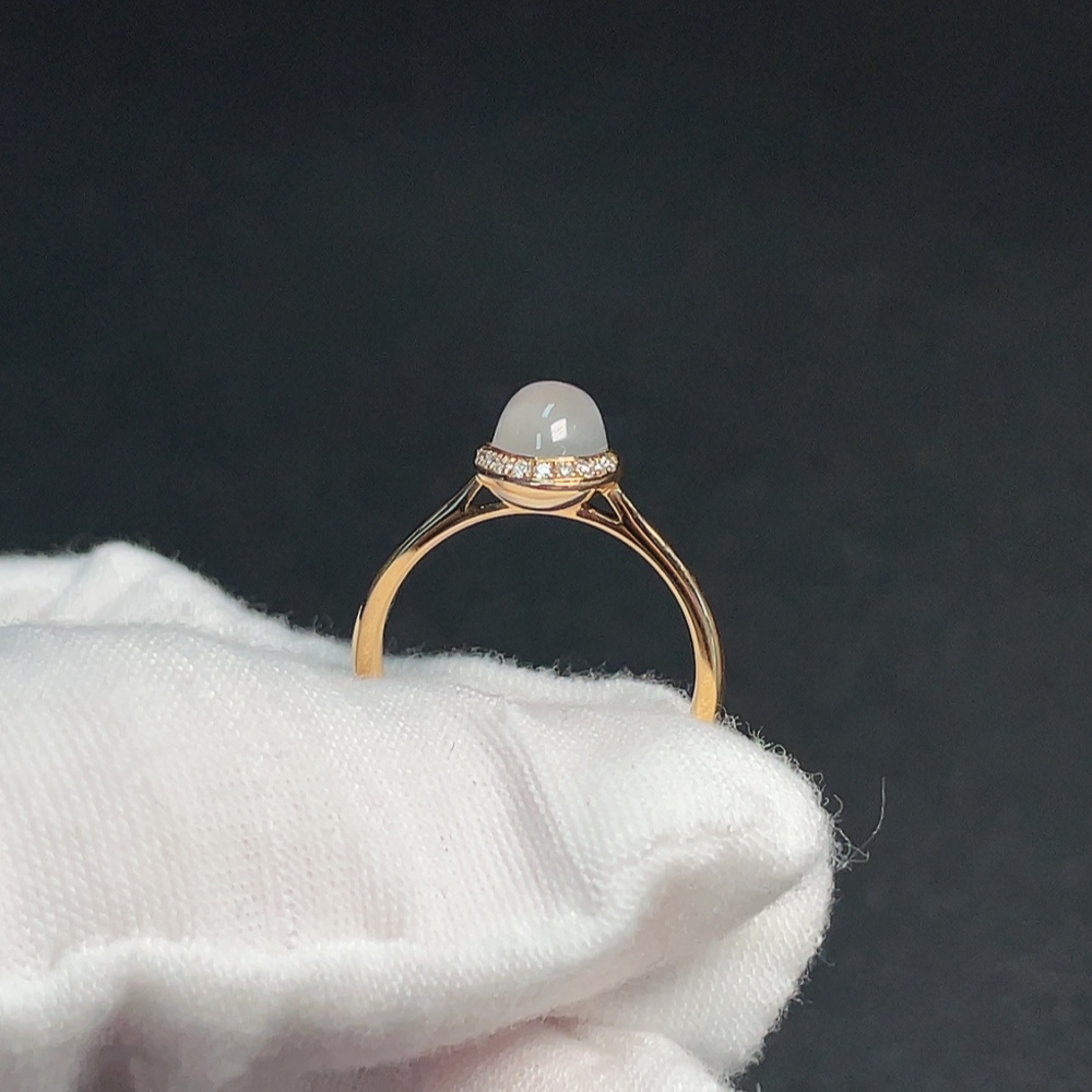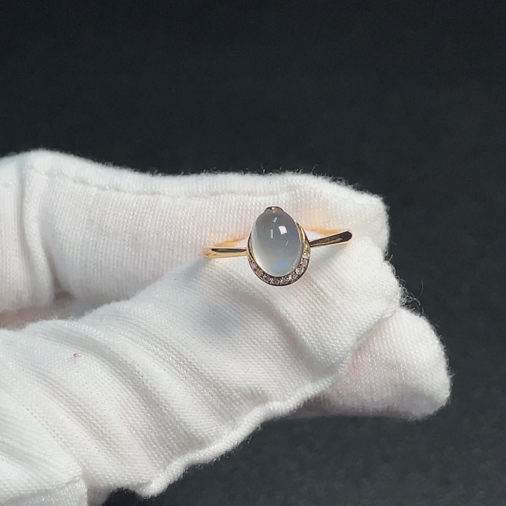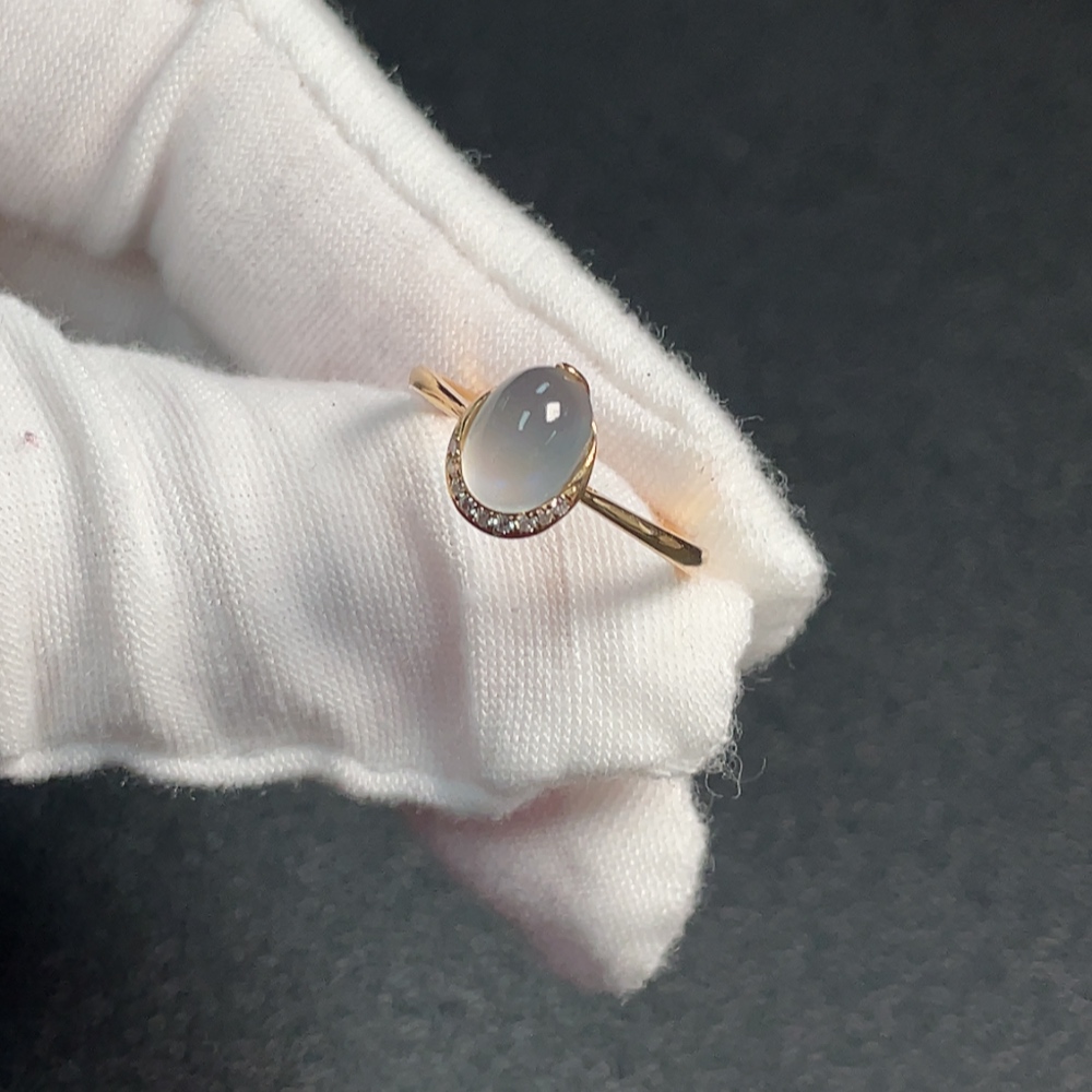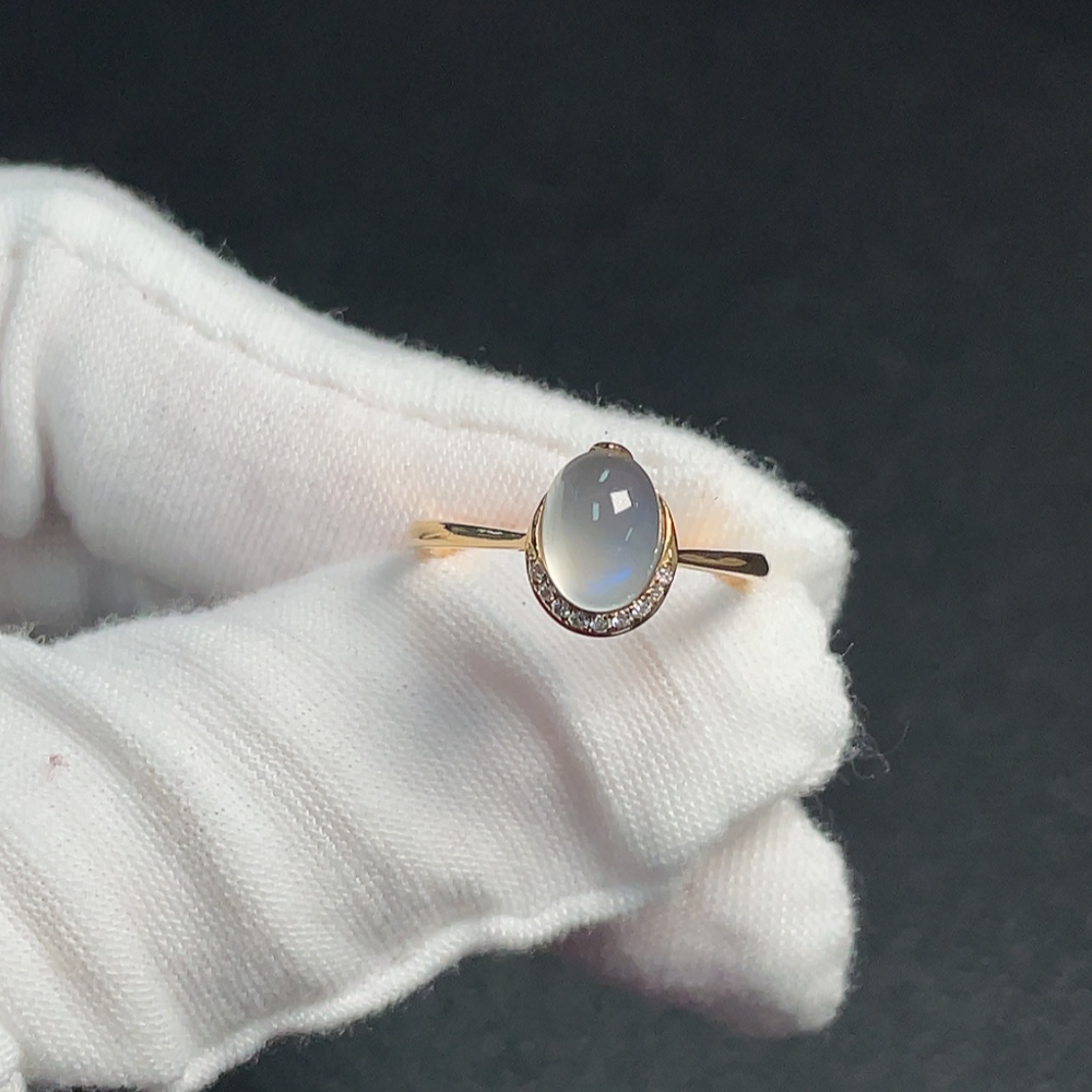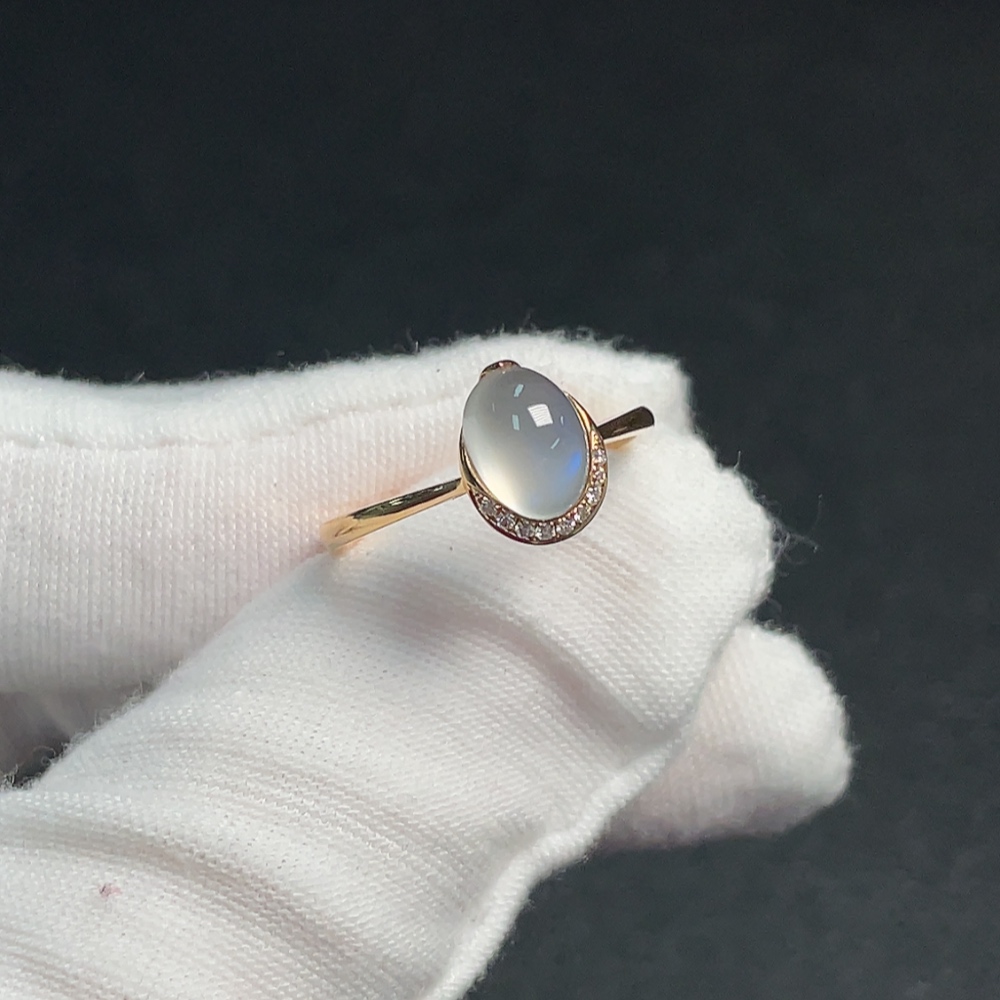18K Moonstone Ring with Visible Organic Matter, Non-Diamond, Total Weight Approx. 2.55g, Size 12