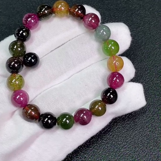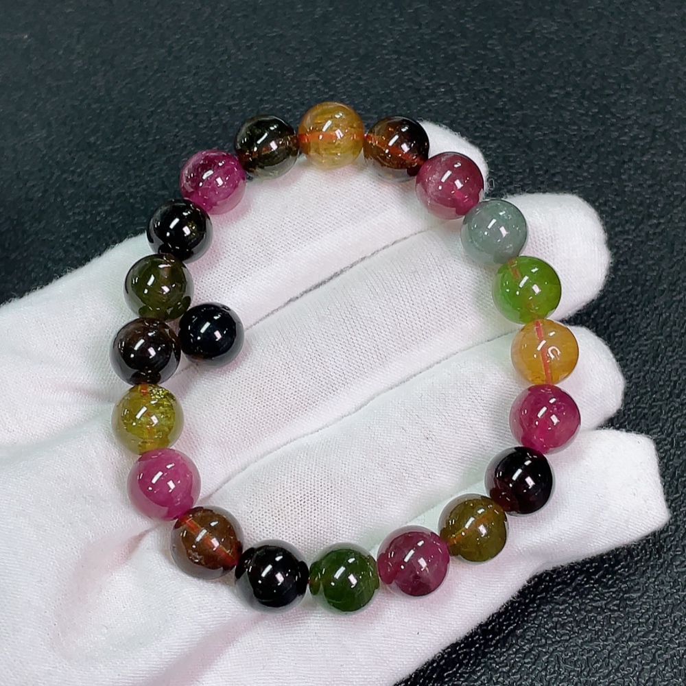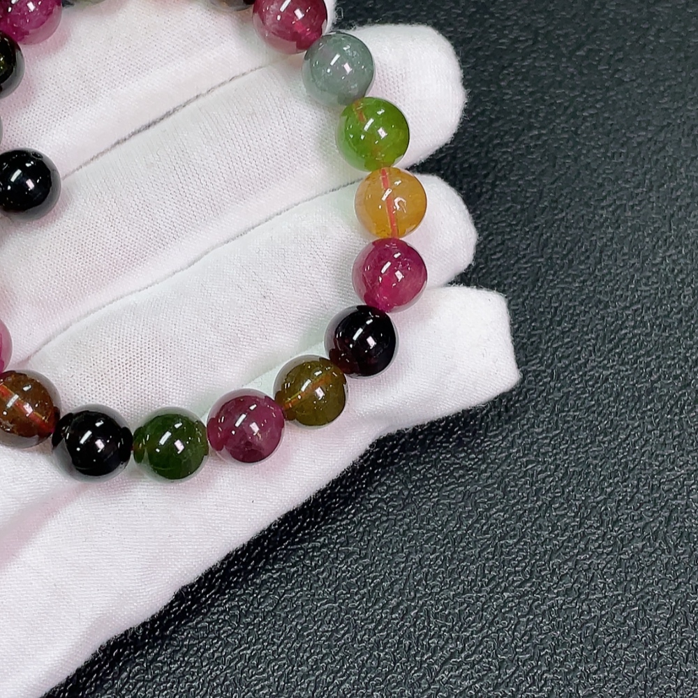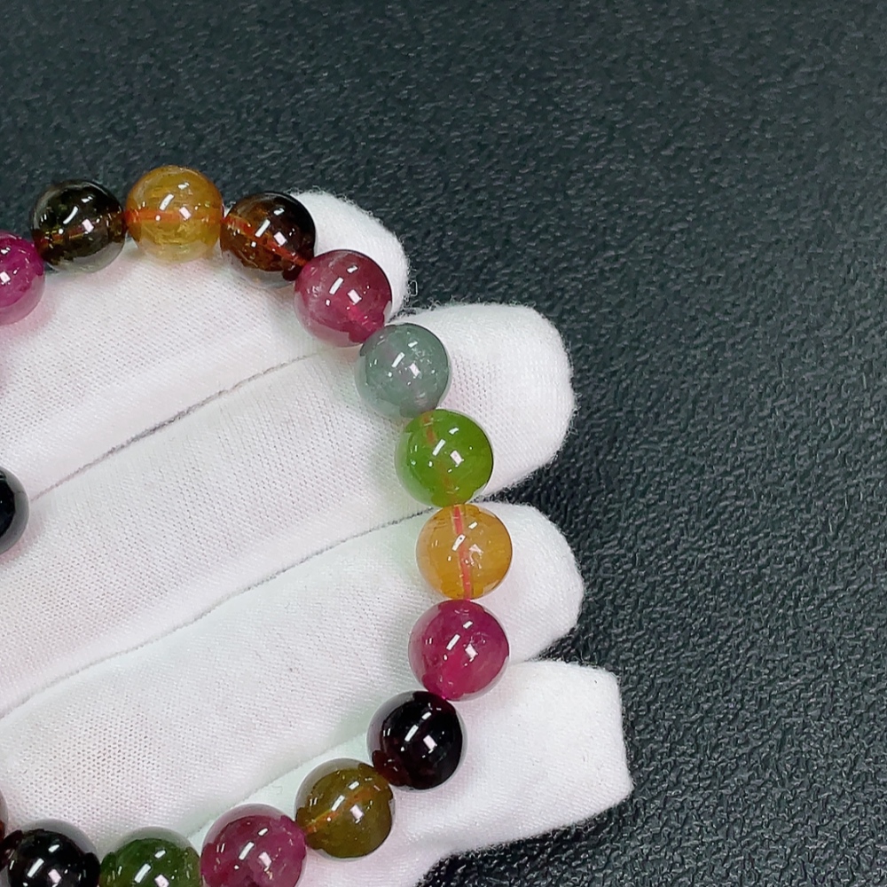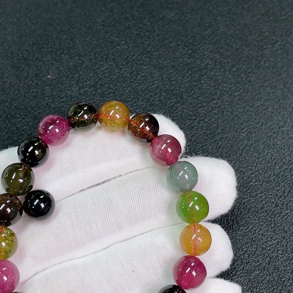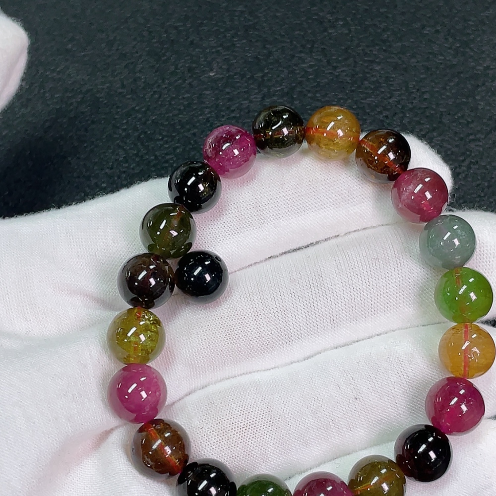 Tourmaline Bracelet + Single Bead with Visible Organic Matter, Total Weight Approx. 28.15g, Size About 9.6mm, Sell as a Lot