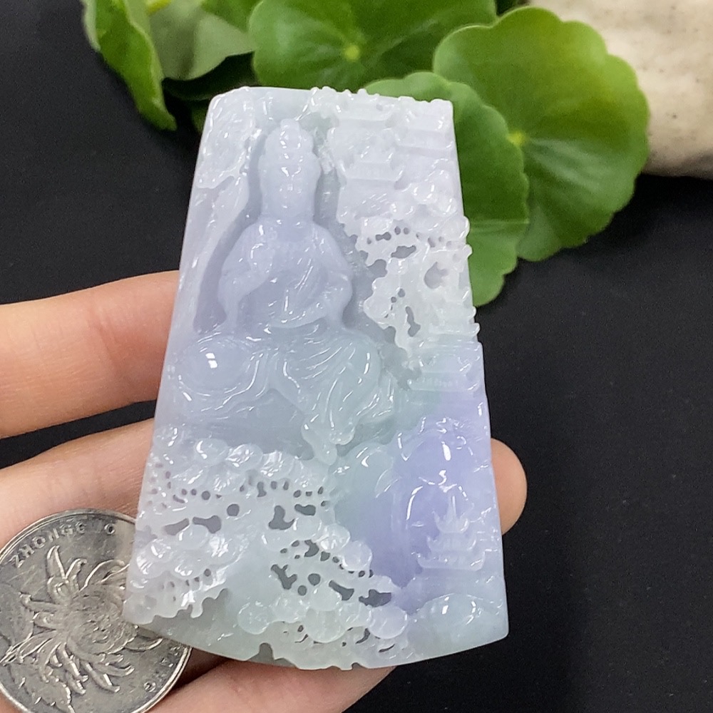 Jadeite Landscape Guanyin Pendant Total Weight Approx. 65.8g