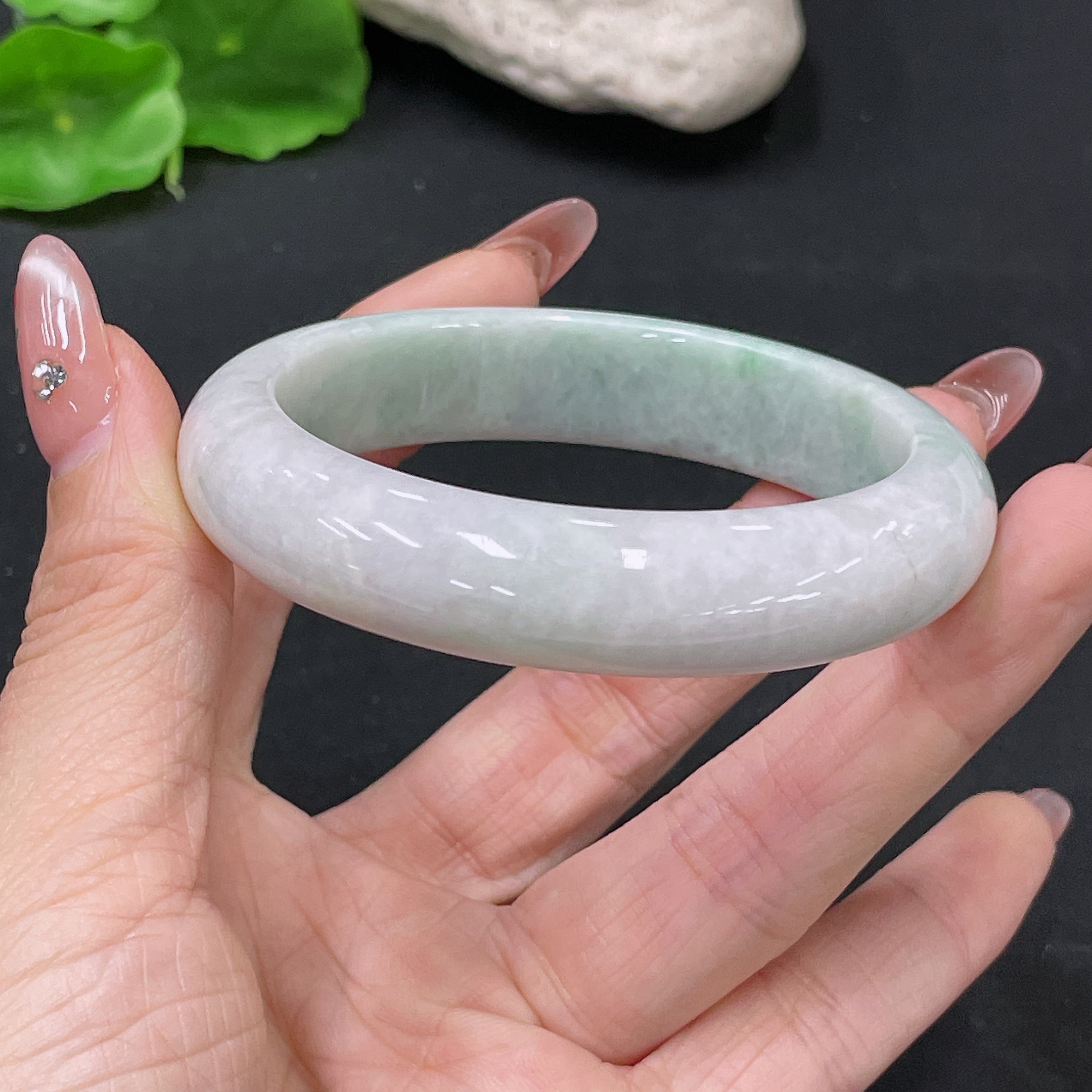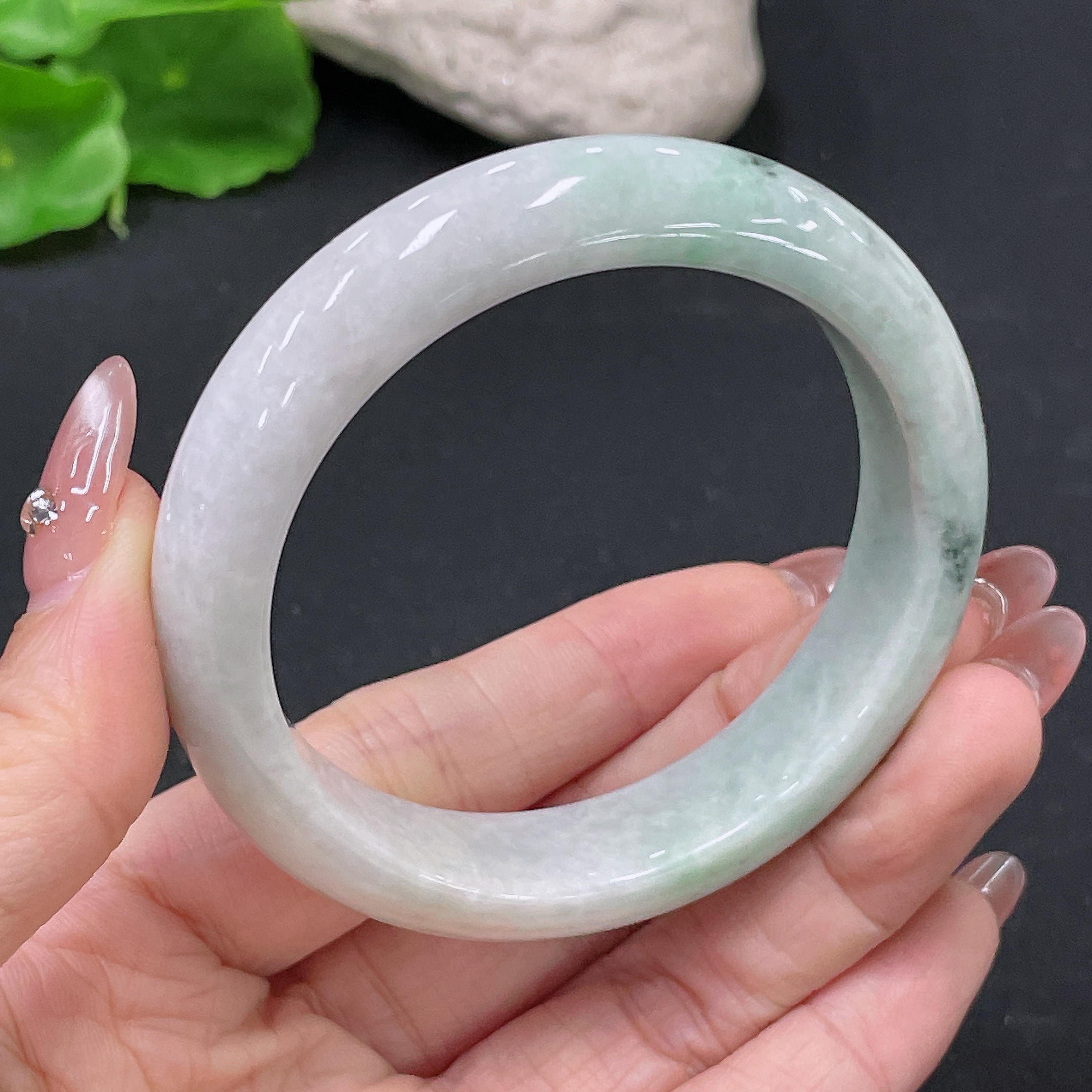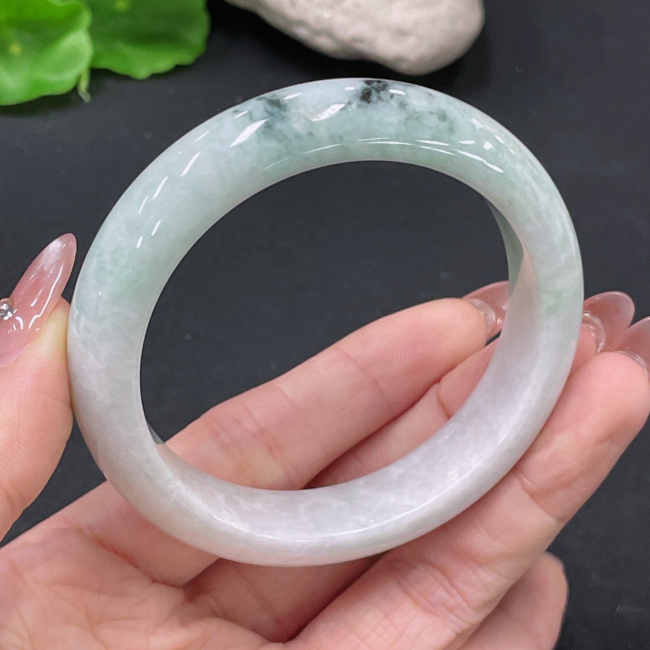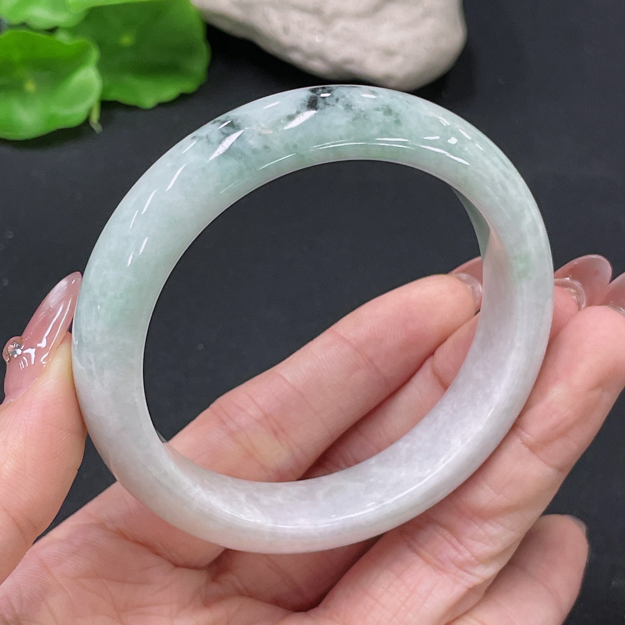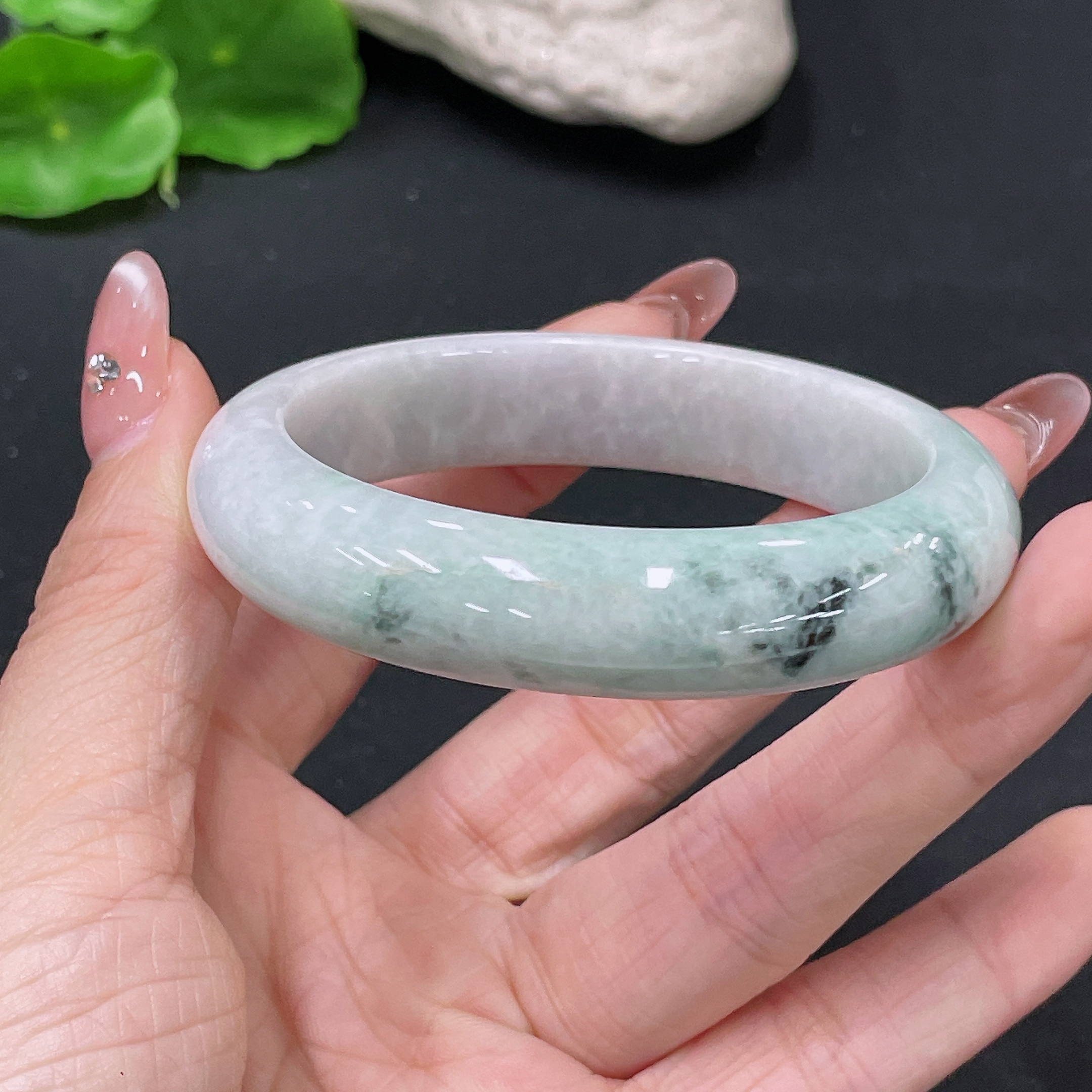 Jadeite Round Bangle with Other Mineral Components, Total Weight Approx. 58.96g, Size 55.2