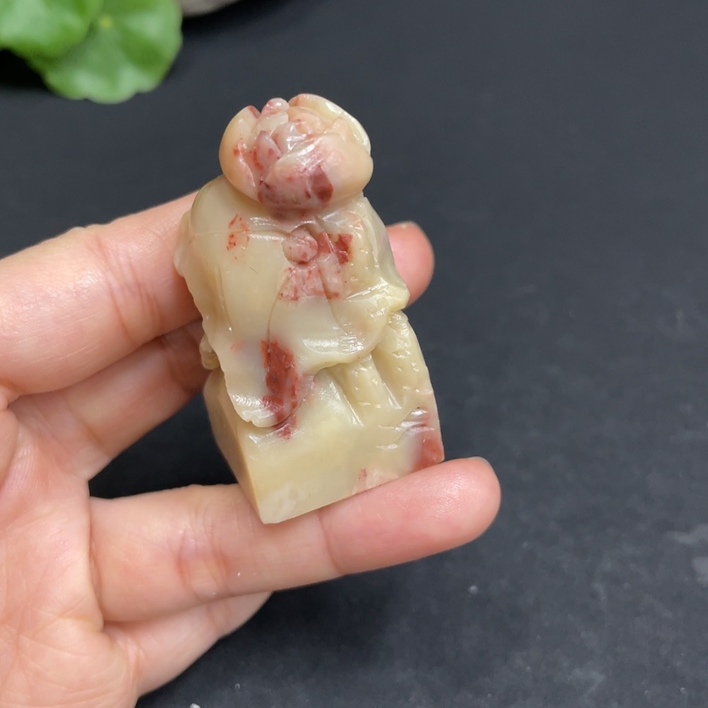 Shoushan Stone Seal 'Flowers Blooming and Wealth Flourishing' Total Weight Approx. 54.3g
