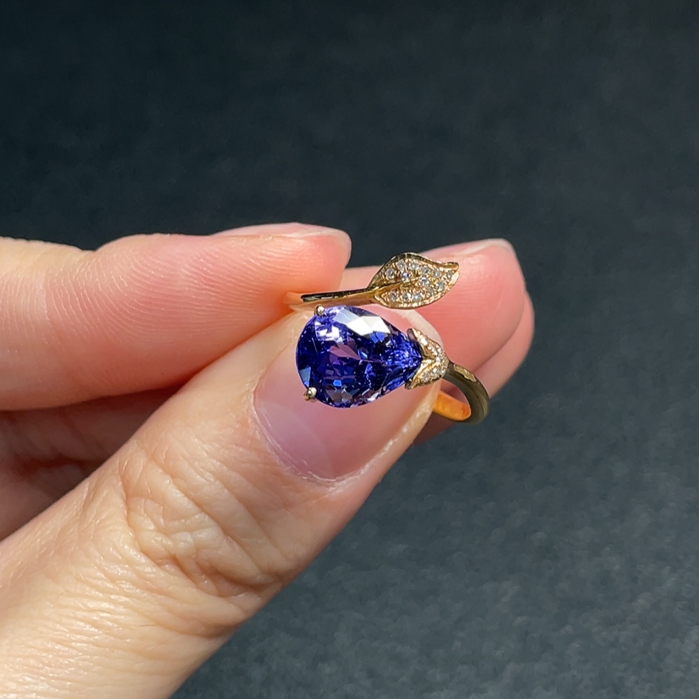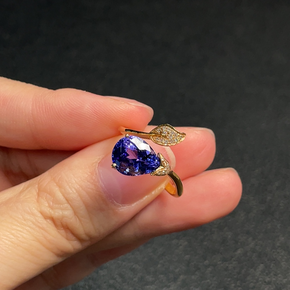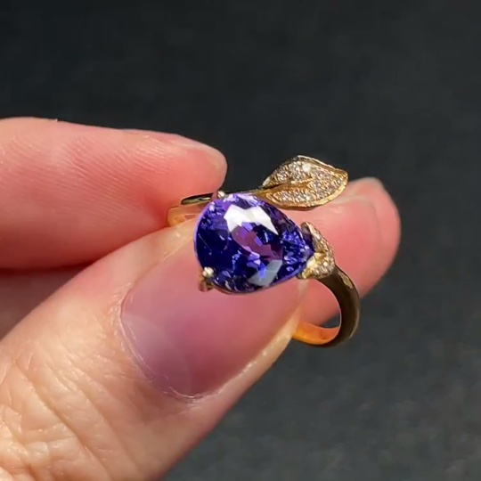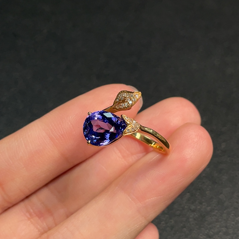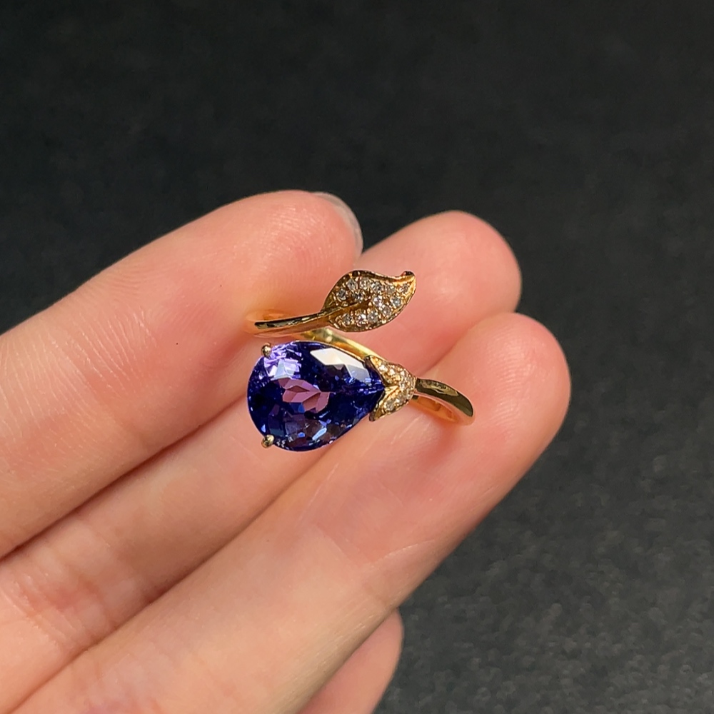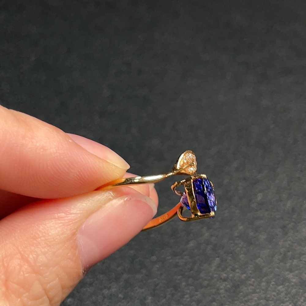 18K Gold Tanzanite Ring with Diamond Accents, Adjustable, Total Weight Approx. 3.03g