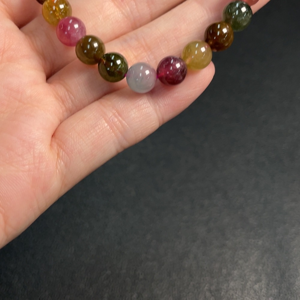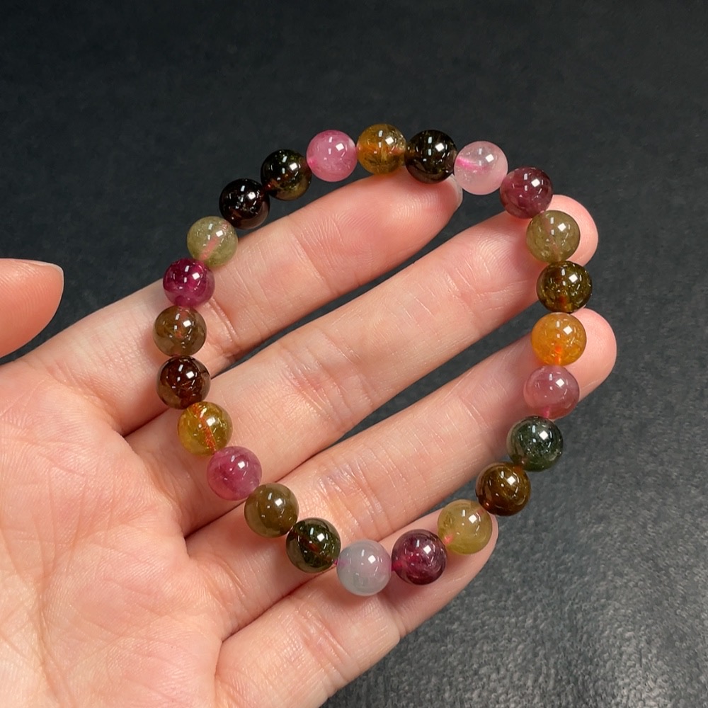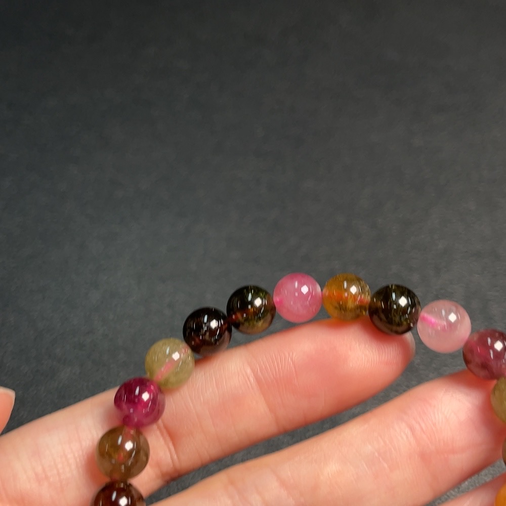 Tourmaline Bracelet Containing Other Mineral Components with Visible Organic Matter, Total Weight Approximately 16.7g, Size About 7.4mm