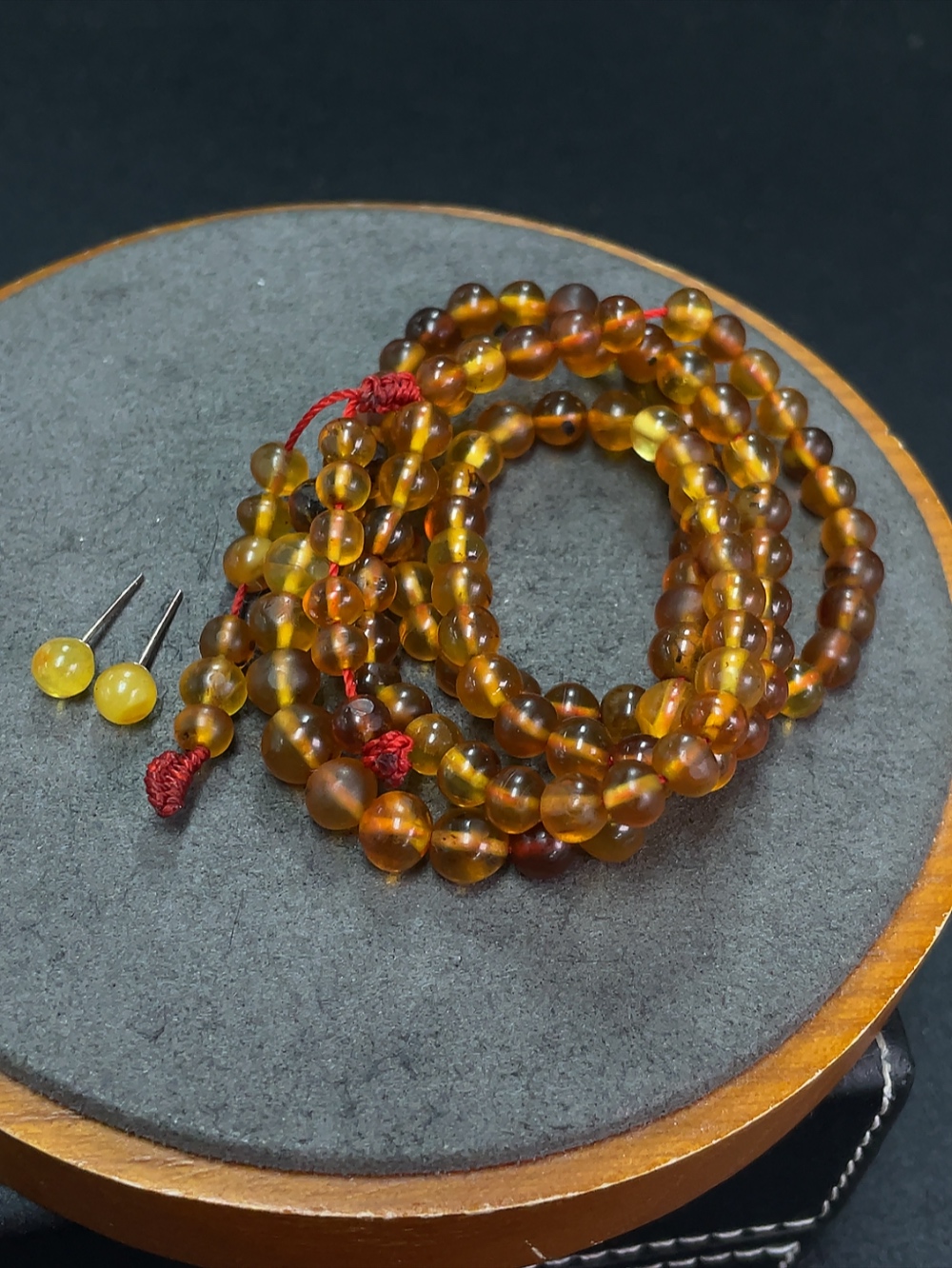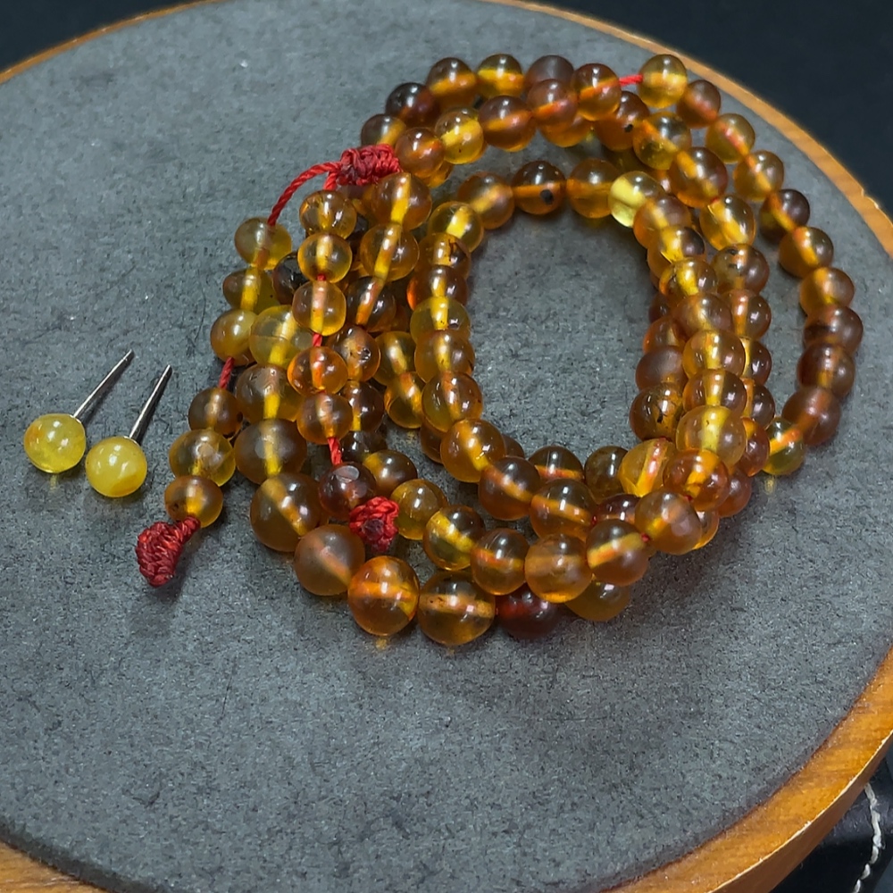 Amber Beeswax Bead Bracelet + Earrings Non-Gold Total Weight Approx. 12.38g Sell as a Lot