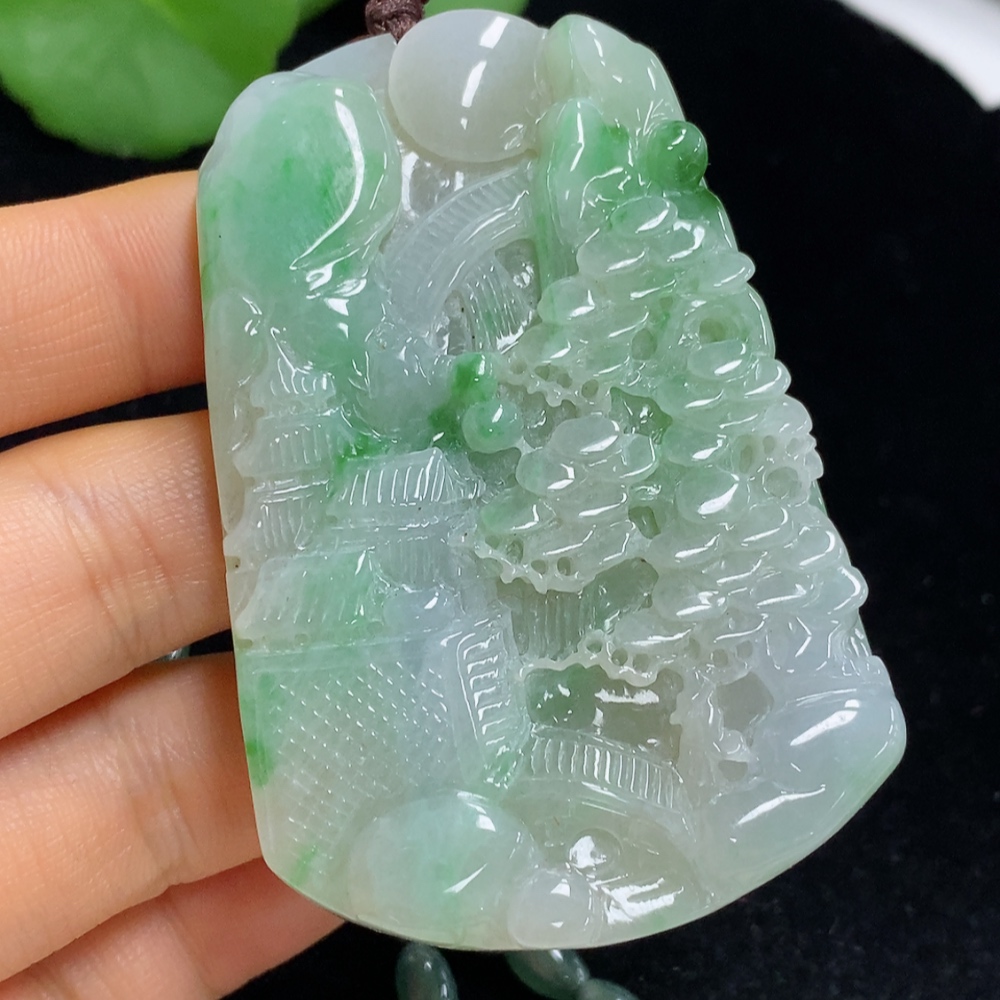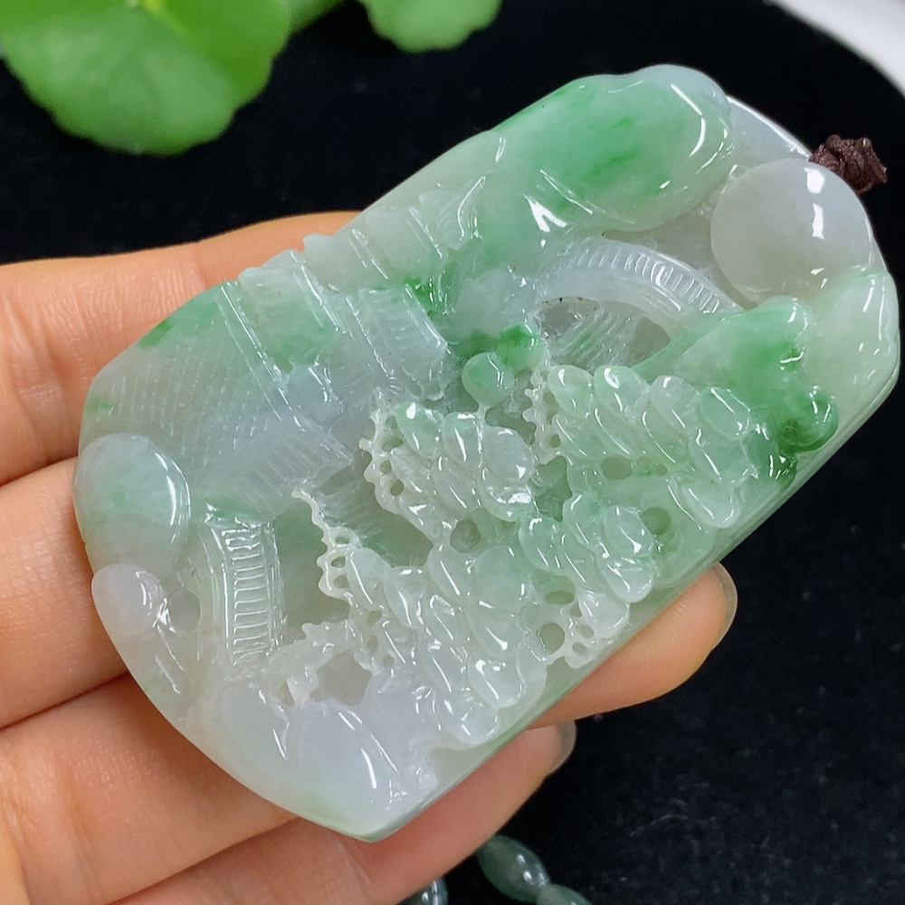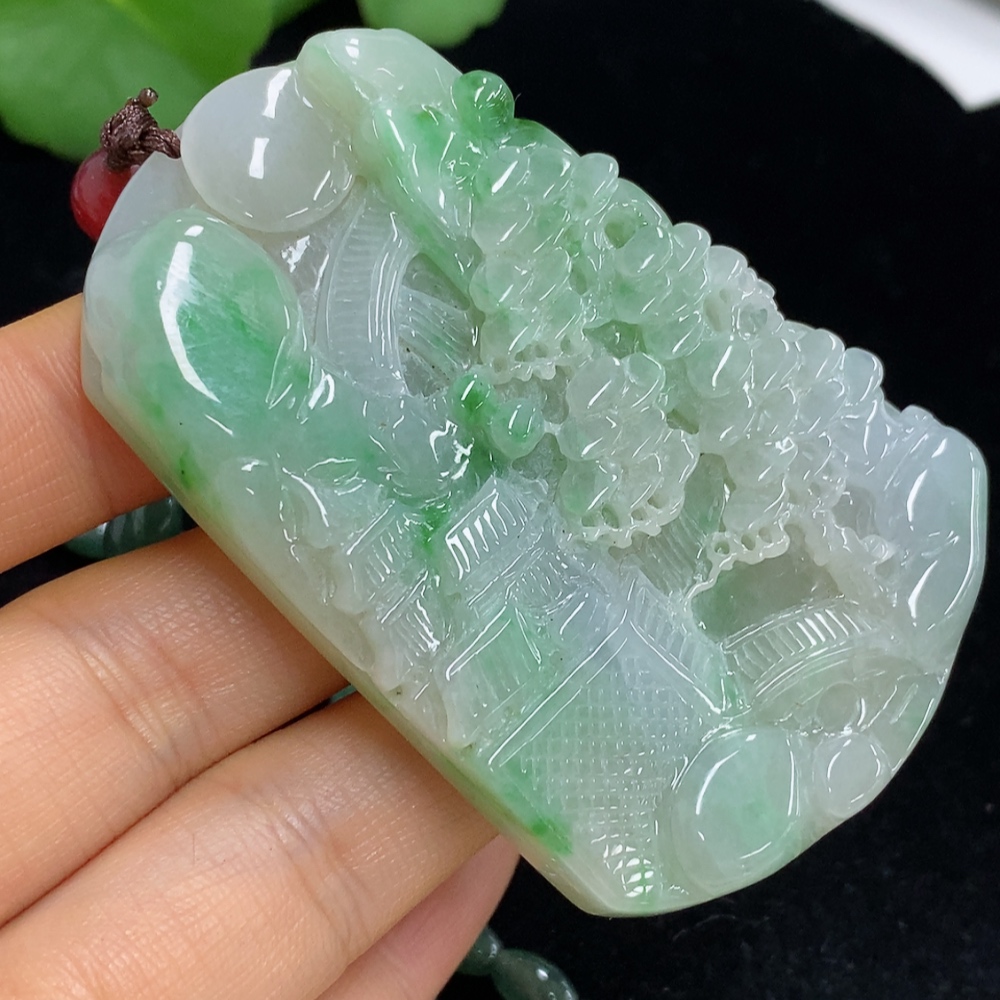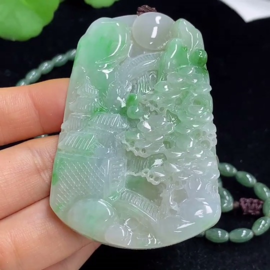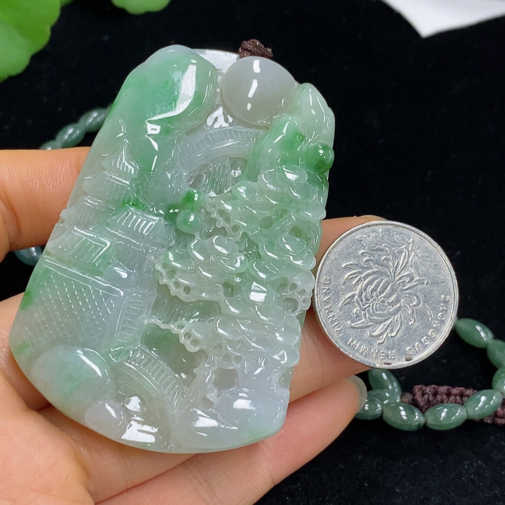 Jadeite Landscape Pendant Total Weight Approx. 91.57g (Including Cord Weight) With Non-Grade A Beads
