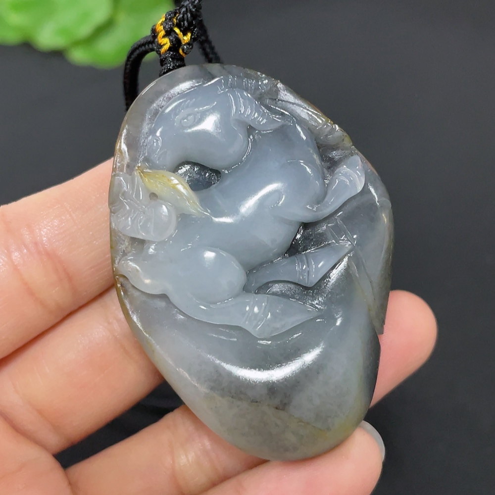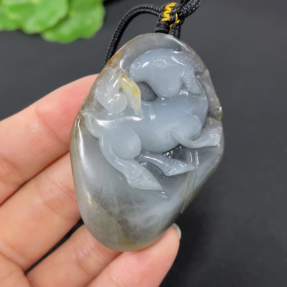 Hetian Jade Pendant Sheep Total Weight Approx. (Including Rope) 45.9g Undetermined Skin Color Origin