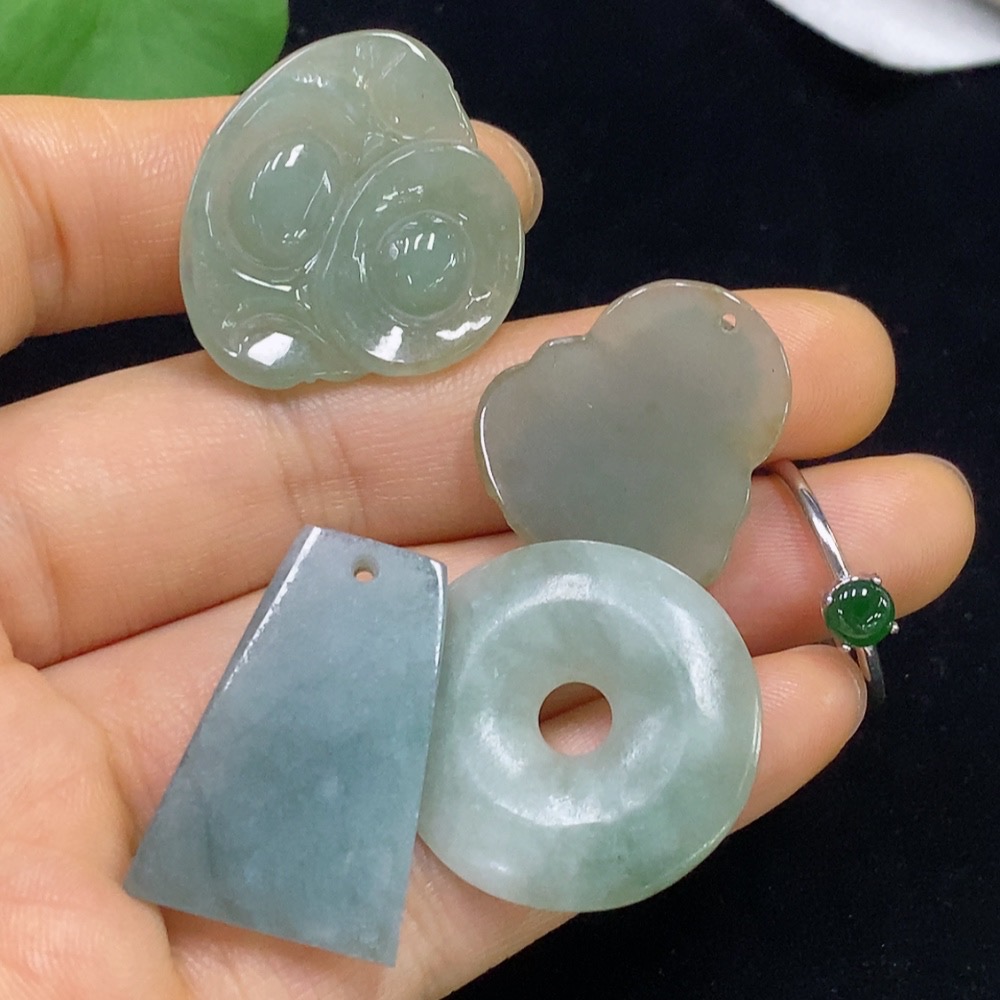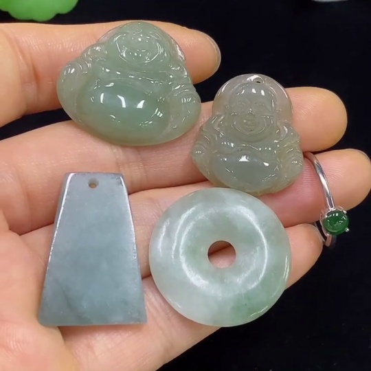 Jadeite Pendant/Mounted Ring Non-Gold Adjustable with Other Mineral Components