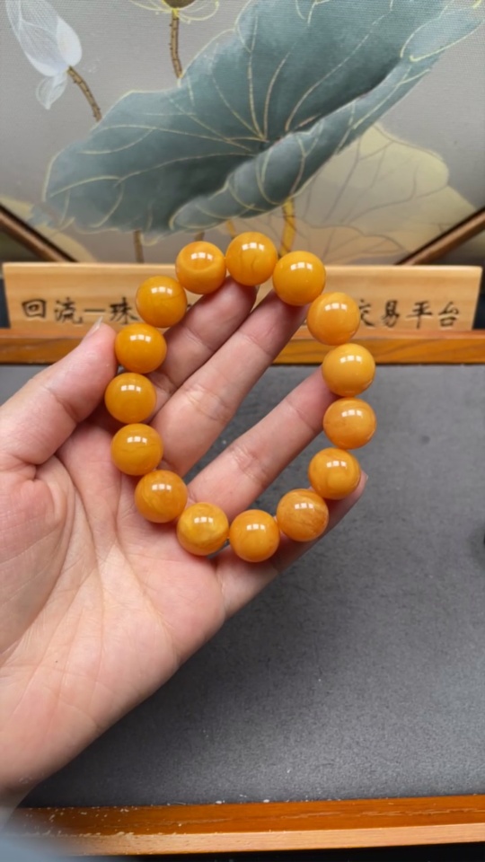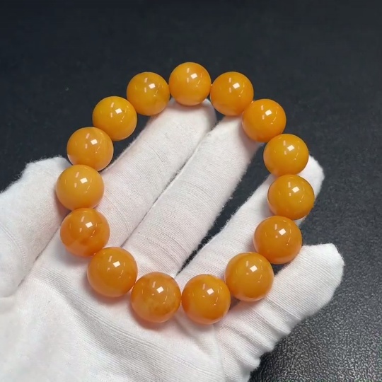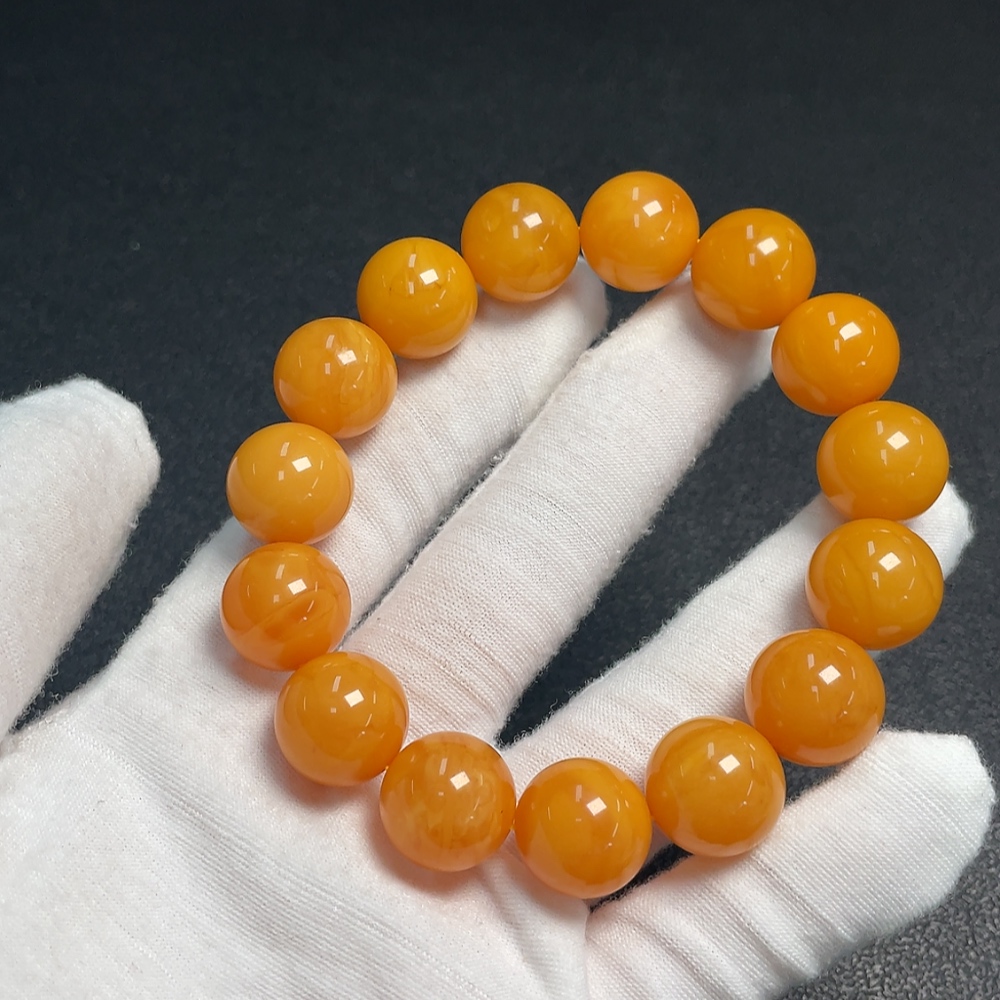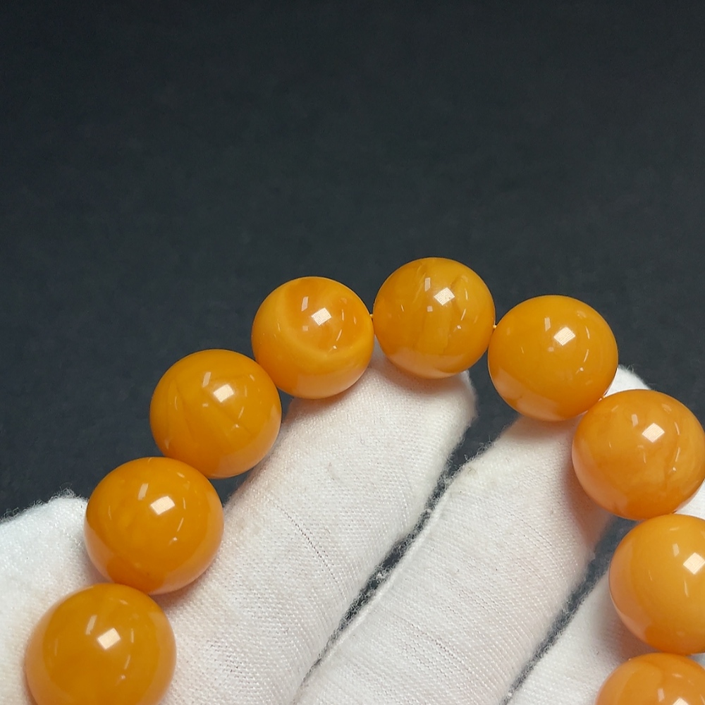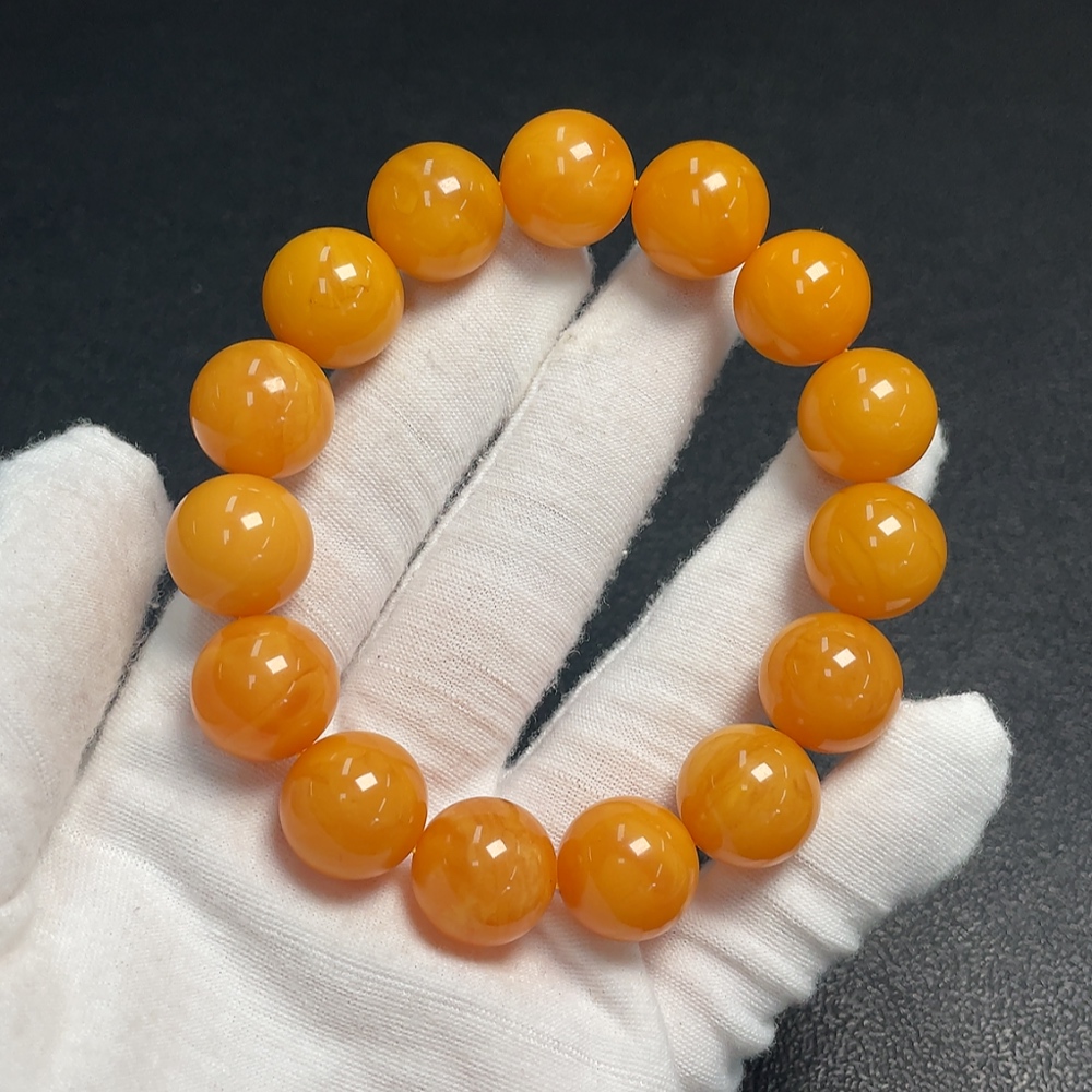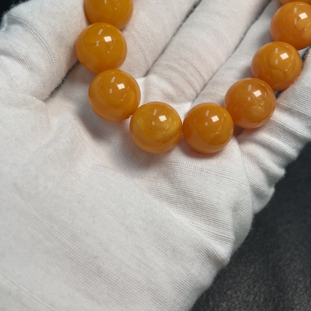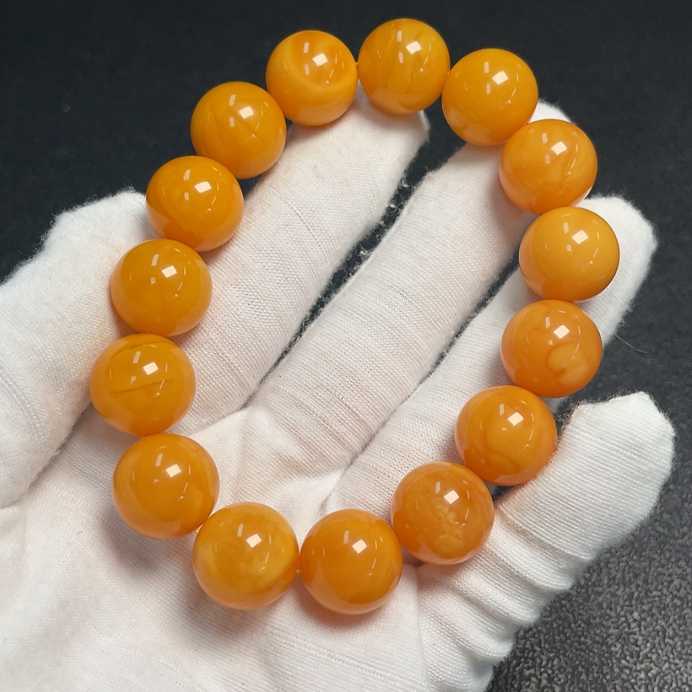 Amber Beeswax Bracelet, color origin undetermined, partial repairs visible, total weight approximately 26.70g, size about 14.4mm