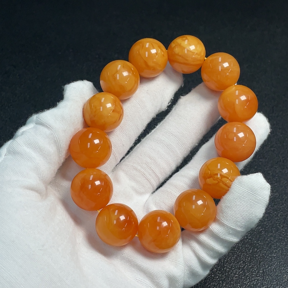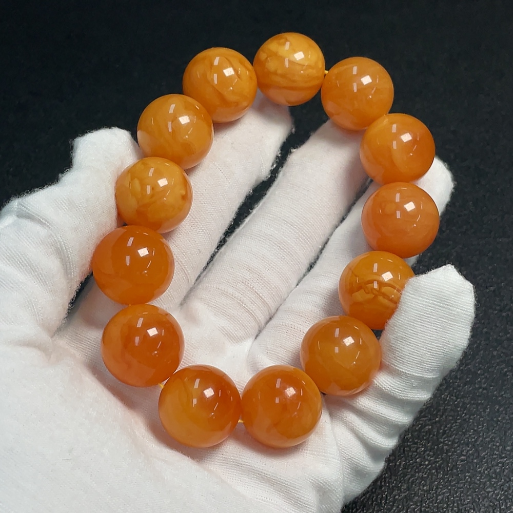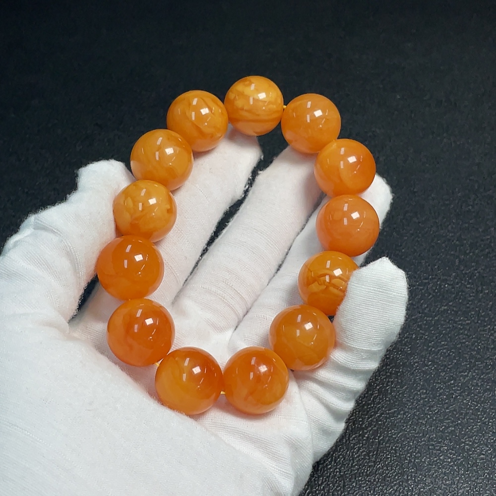 Amber Beeswax Bracelet, Color Origin Undetermined, Total Weight Approximately 39.58g, Size About 17.3mm