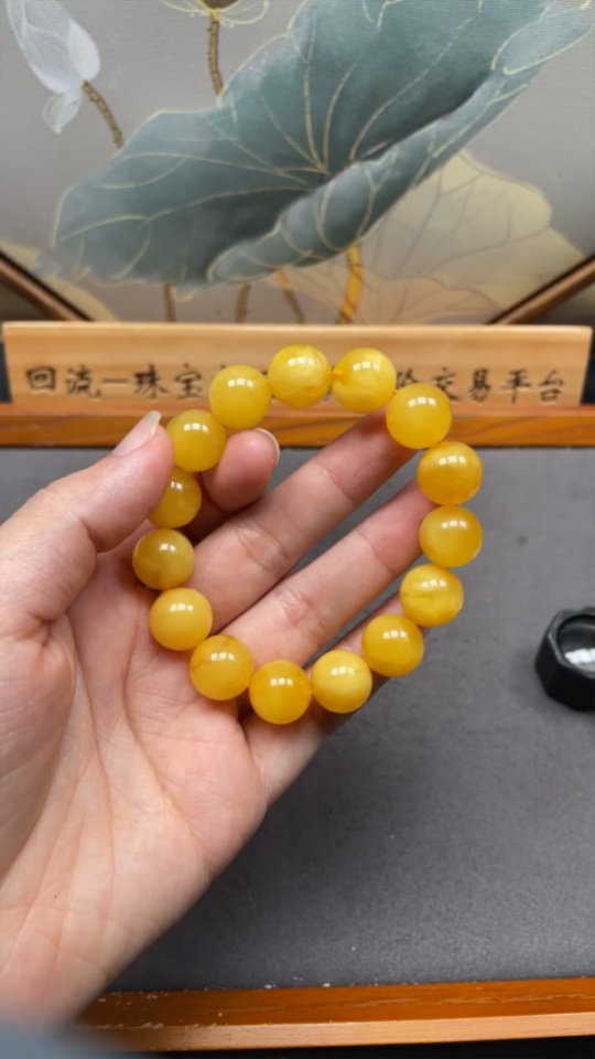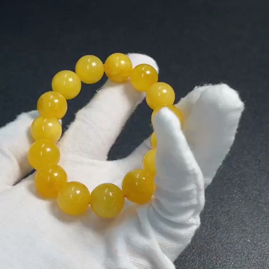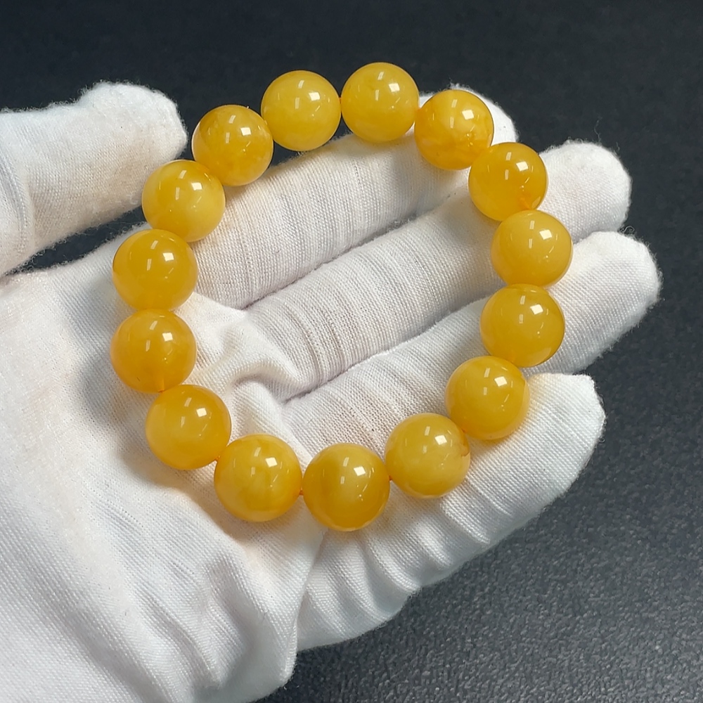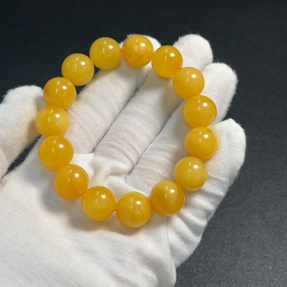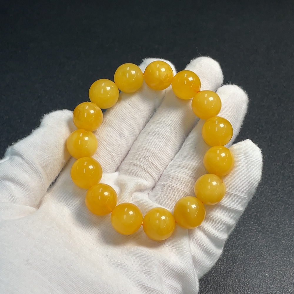 Amber Beeswax Bracelet with Partial Visible Repairs, Total Weight Approximately 19.82g, Size Around 13.3mm