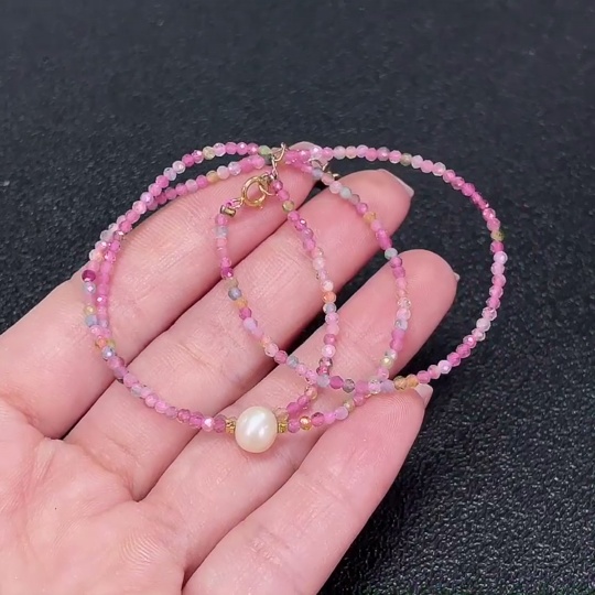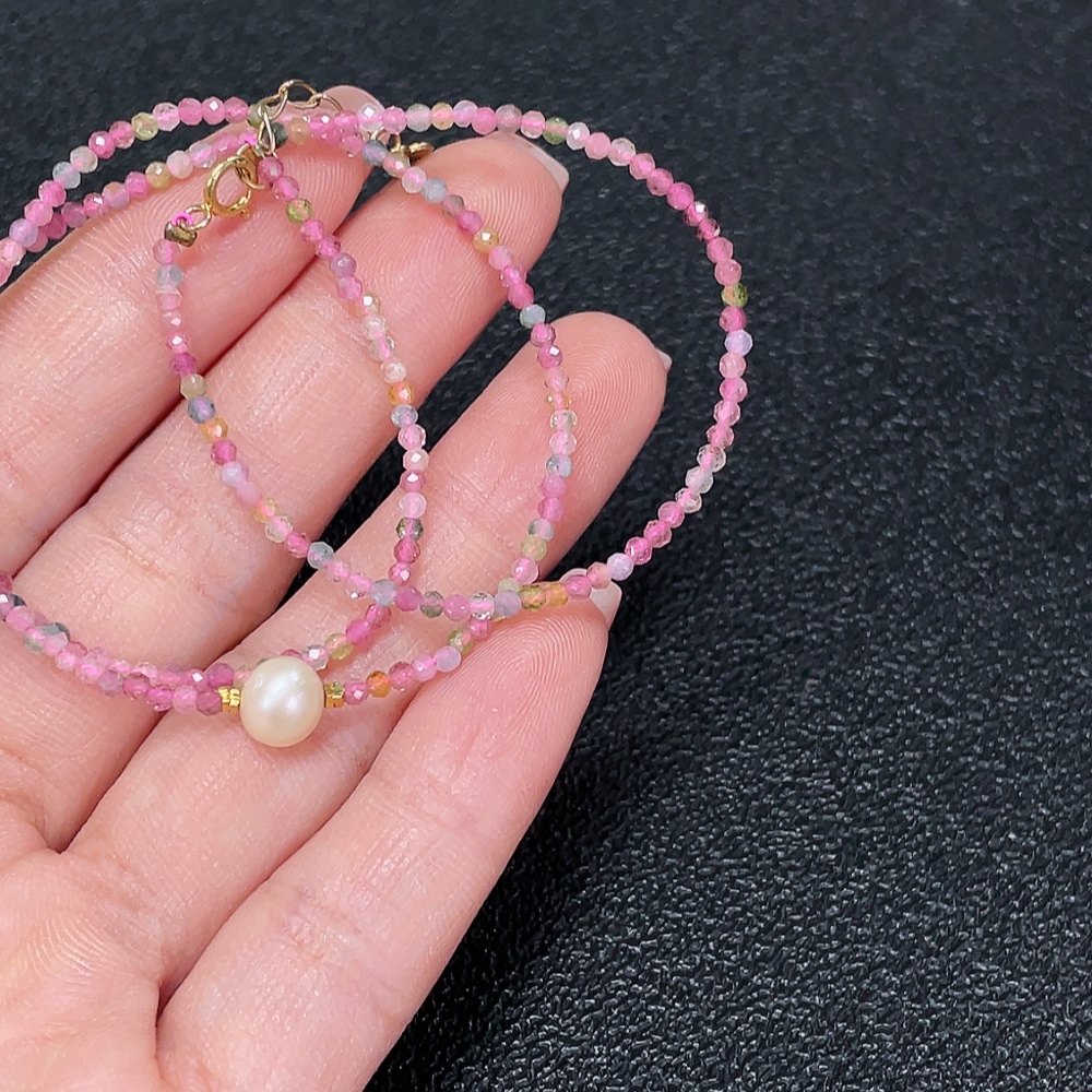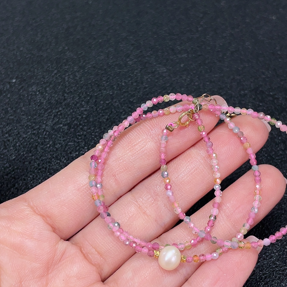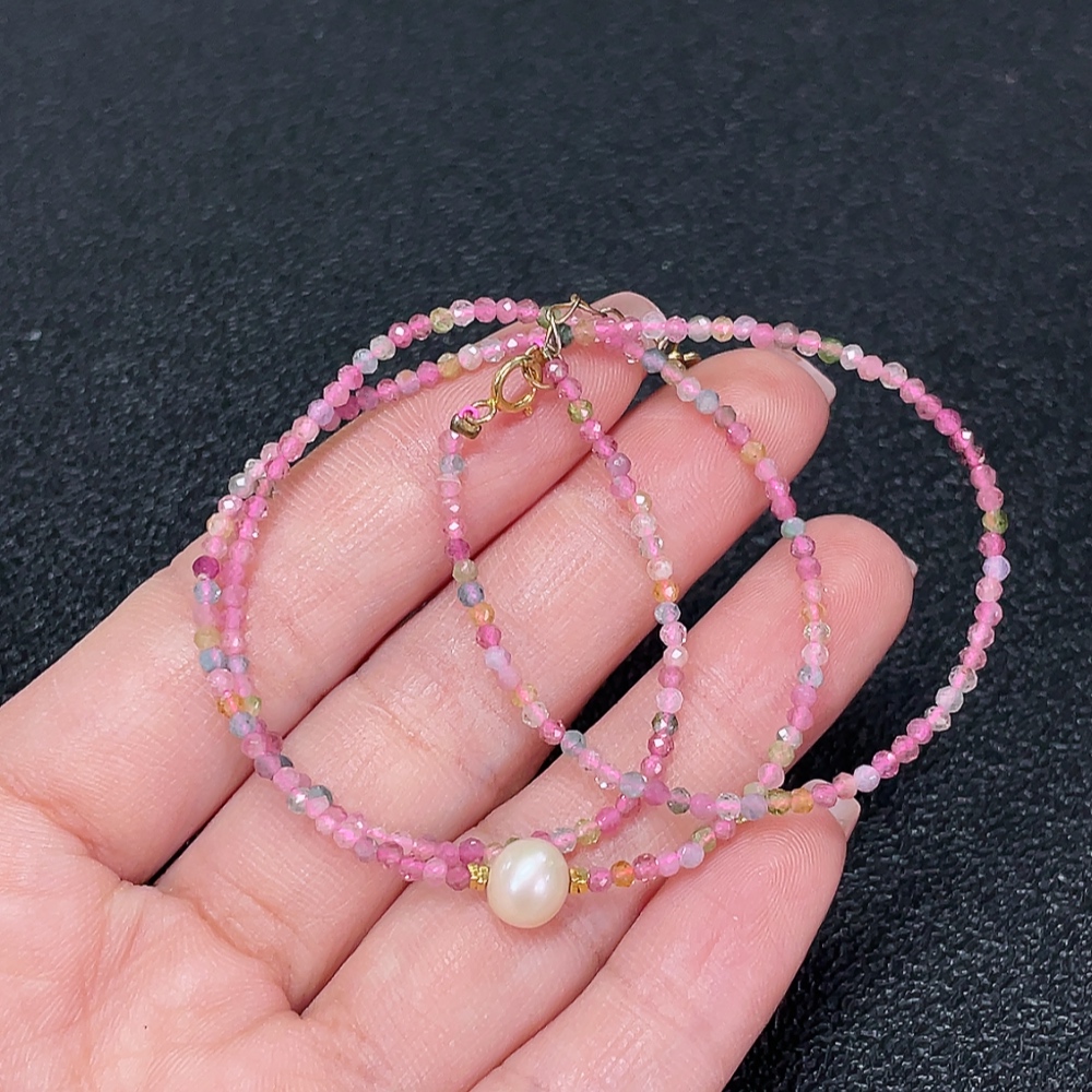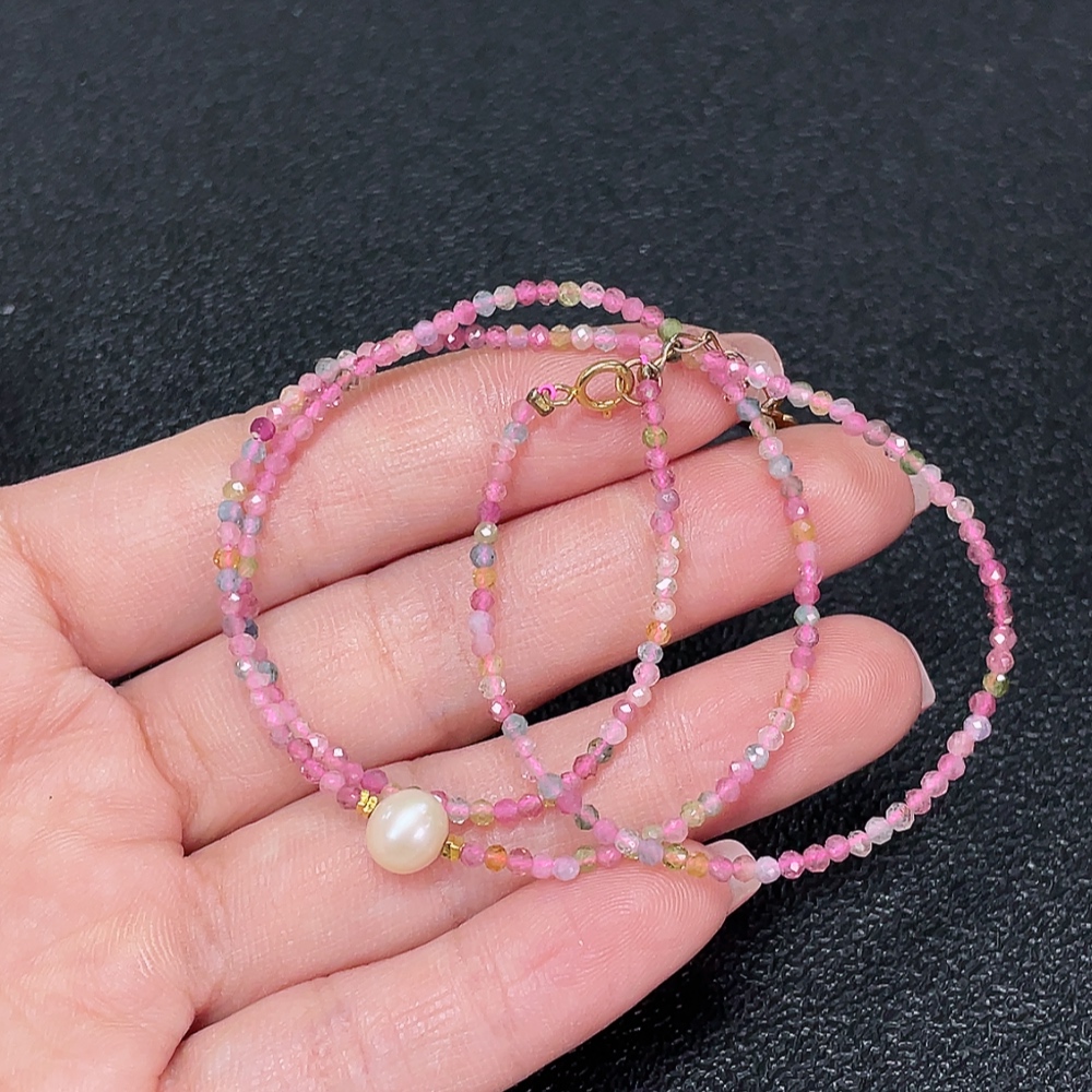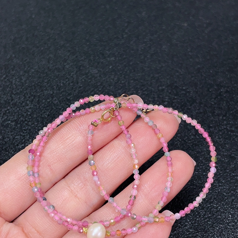 Tourmaline Bead Strand Non-Gold with Pearl Containing Other Mineral Components Visible Organic Matter Total Weight Approx. 3.06g Size About 2.1mm