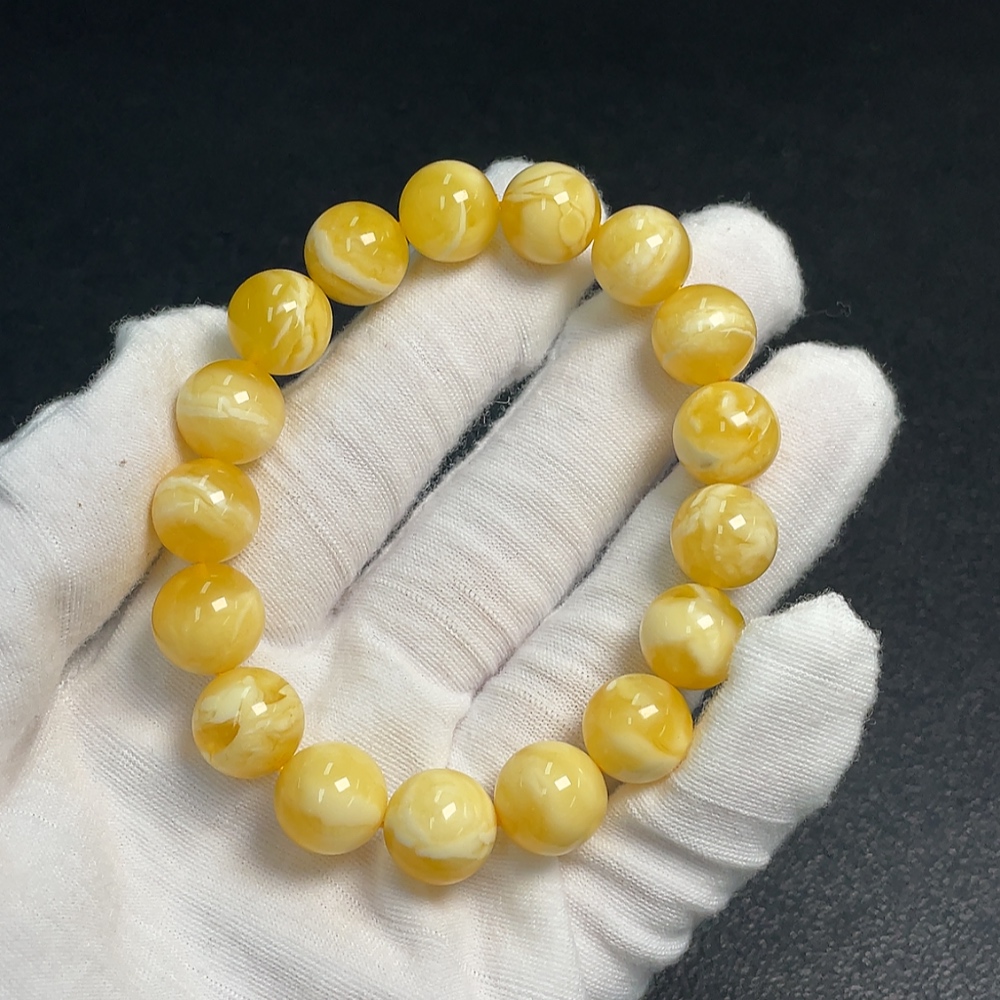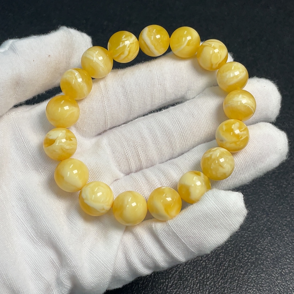 Amber Beeswax Bracelet, Total Weight Approx. 15.25g, Size About 11.4mm