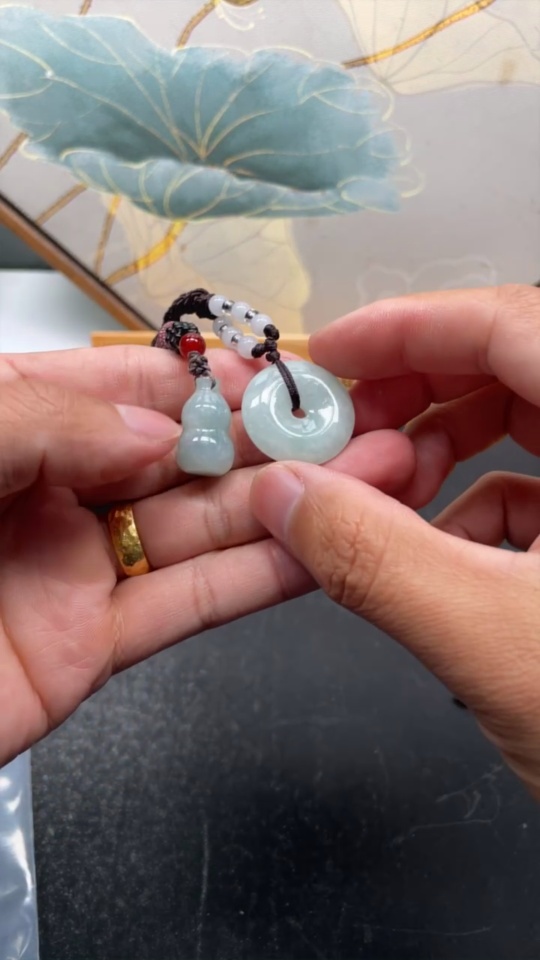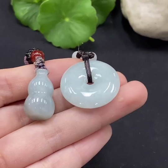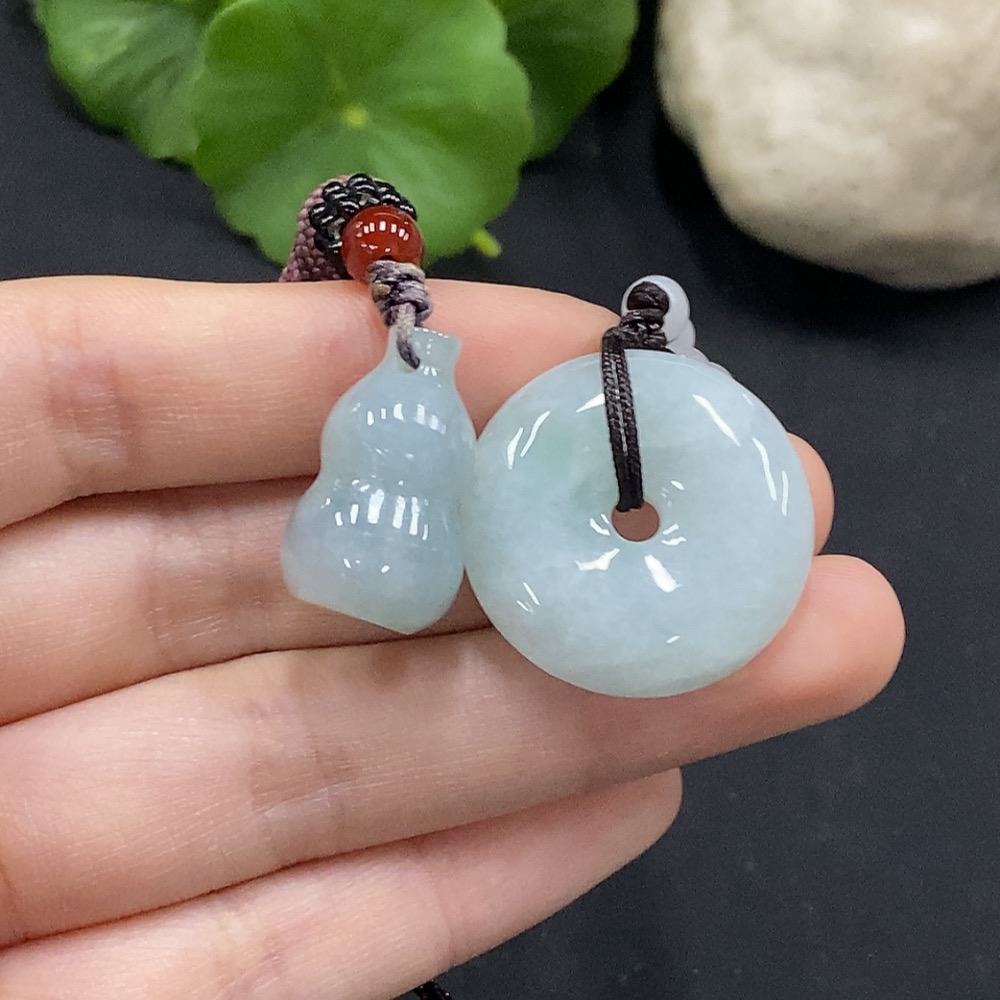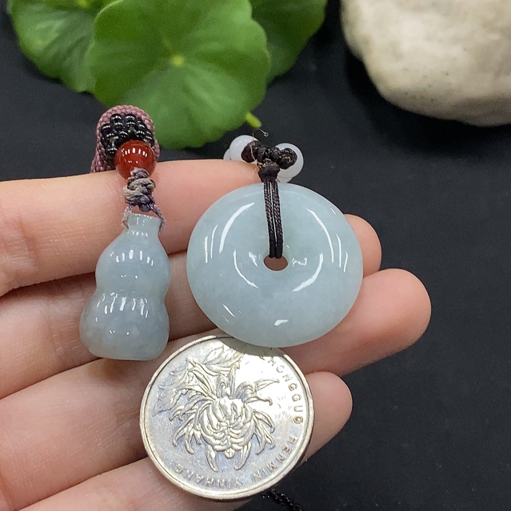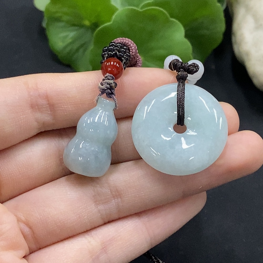 Jadeite Gourd/Ping An Kou Pendant with Non-Grade A Beads