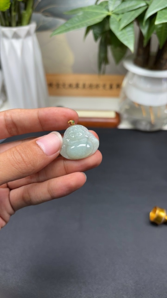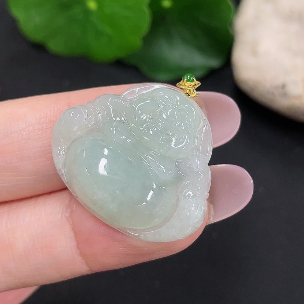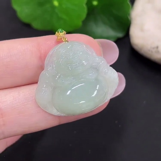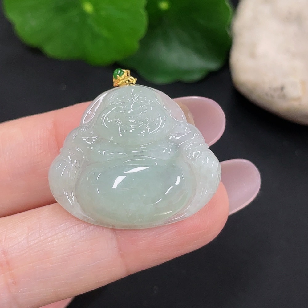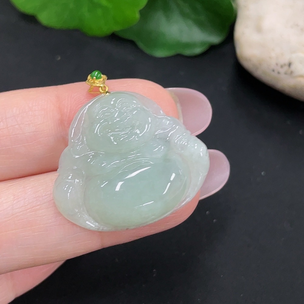 Jadeite Buddha Pendant, 18K Gold, Total Weight Approx. 6.1g