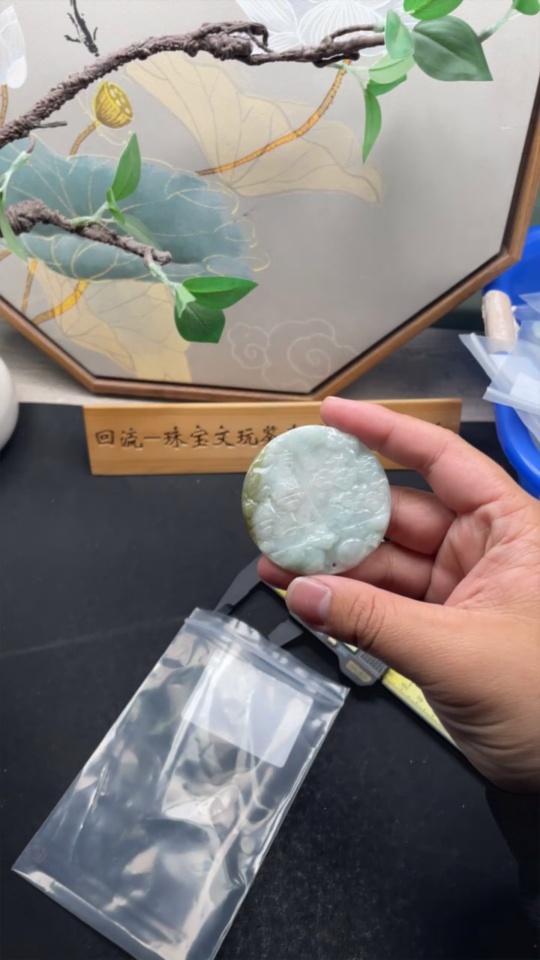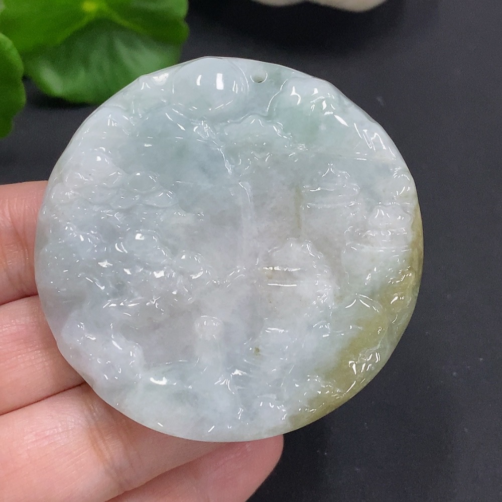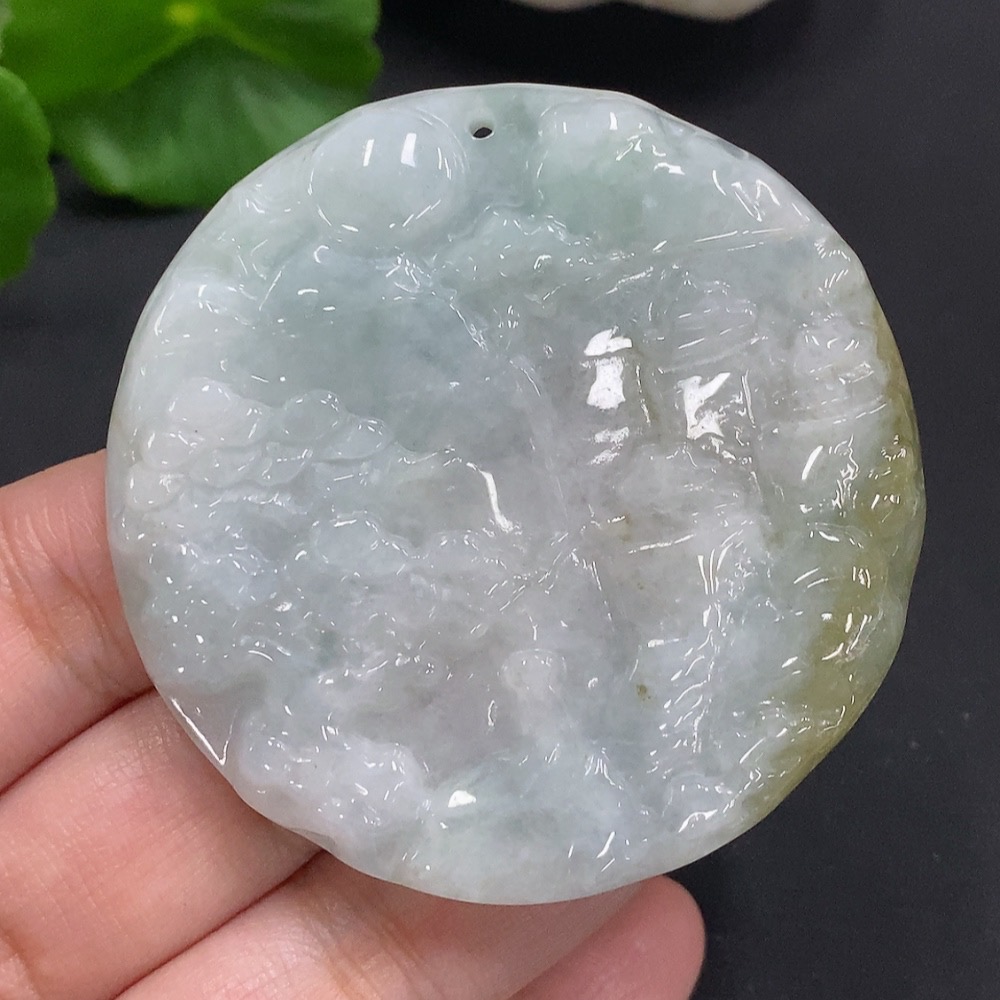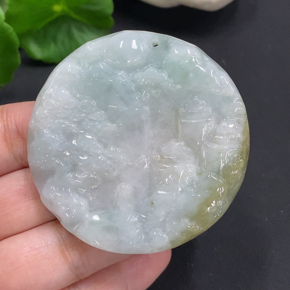 Jadeite Landscape Pendant, Total Weight Approximately 43.8 Grams