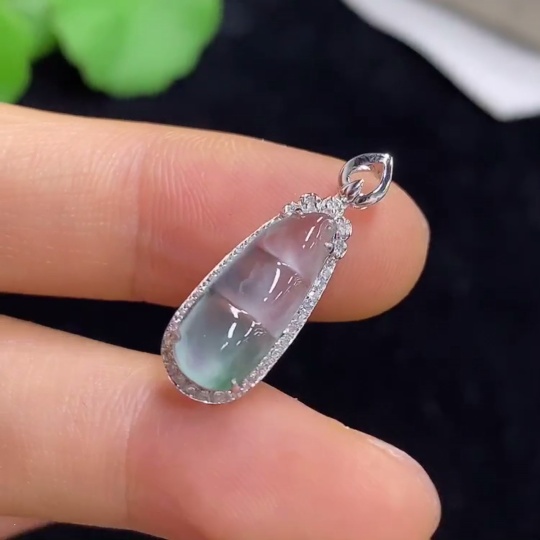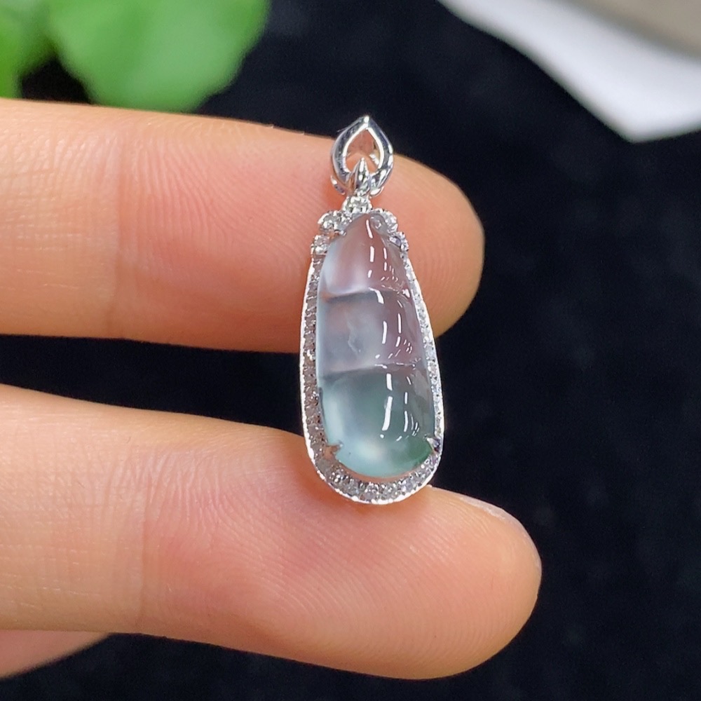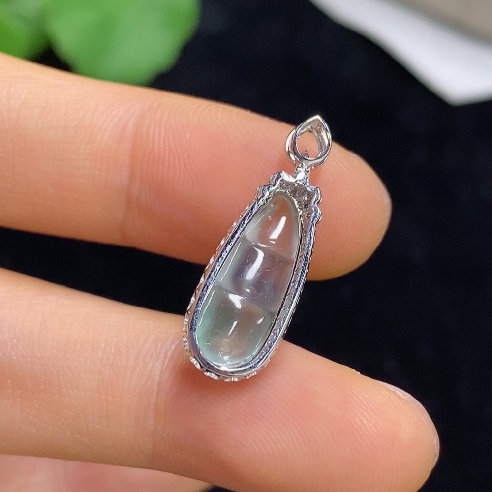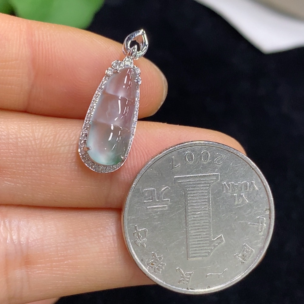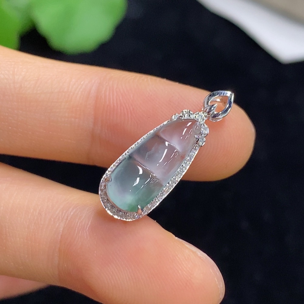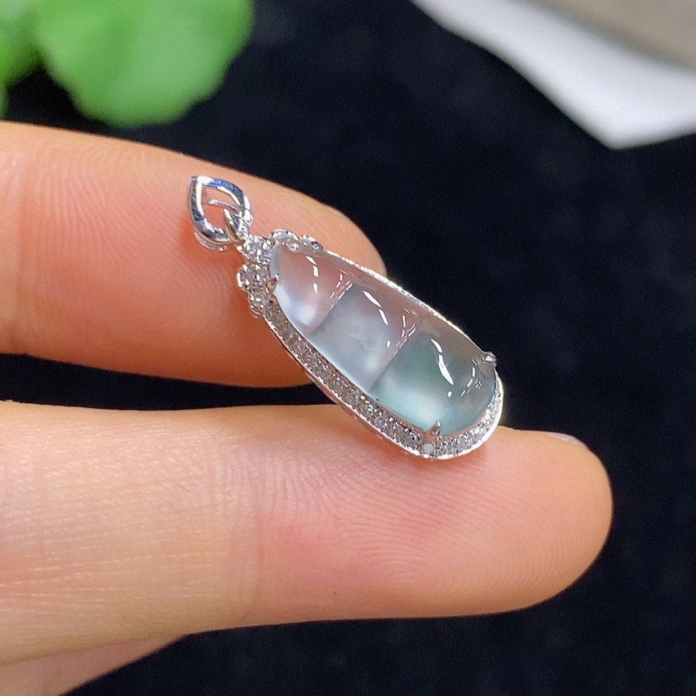Jadeite Bean Pendant with 18K Gold and Diamond Accents, Total Weight Approximately 1.62g
