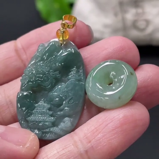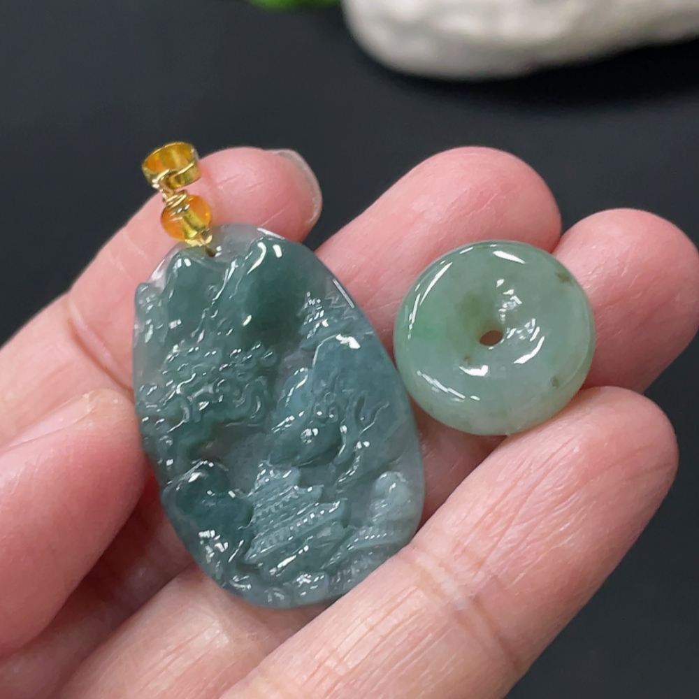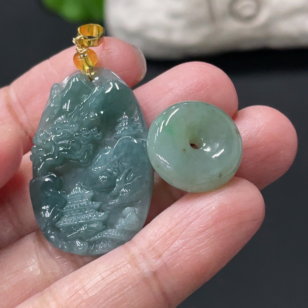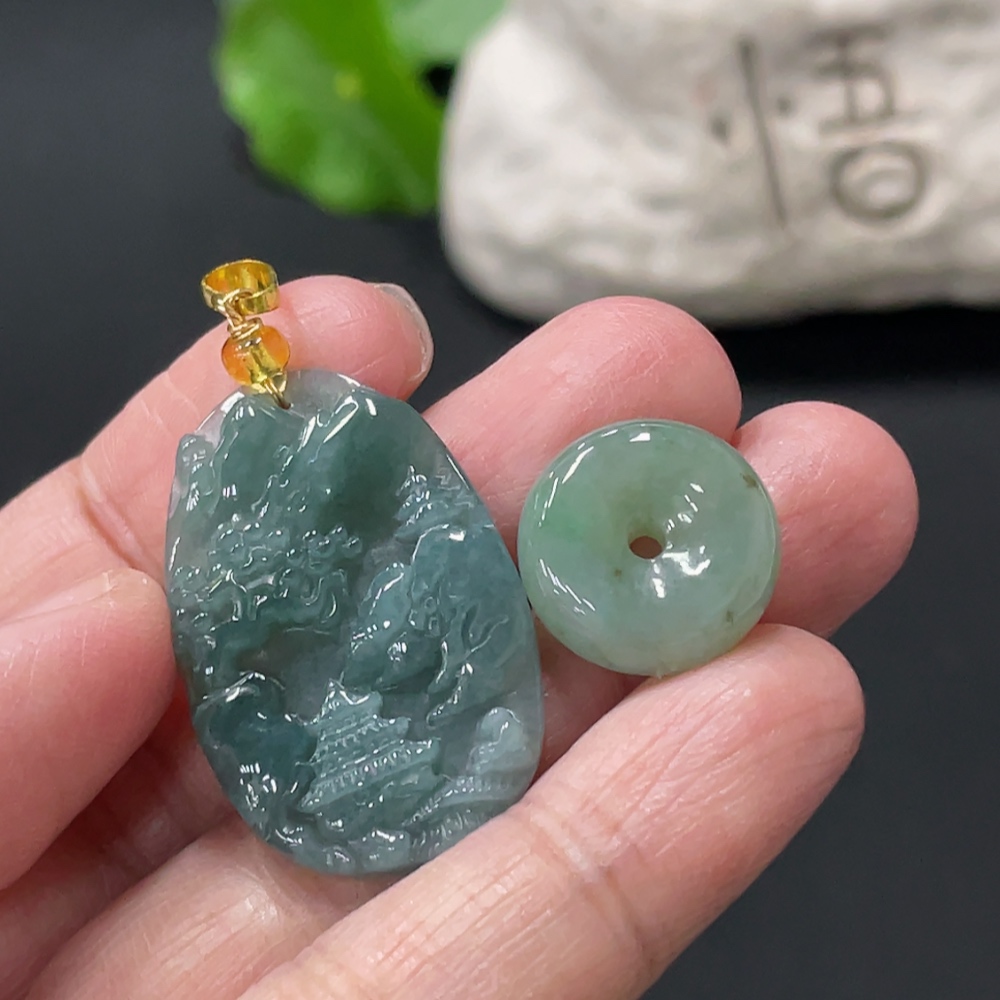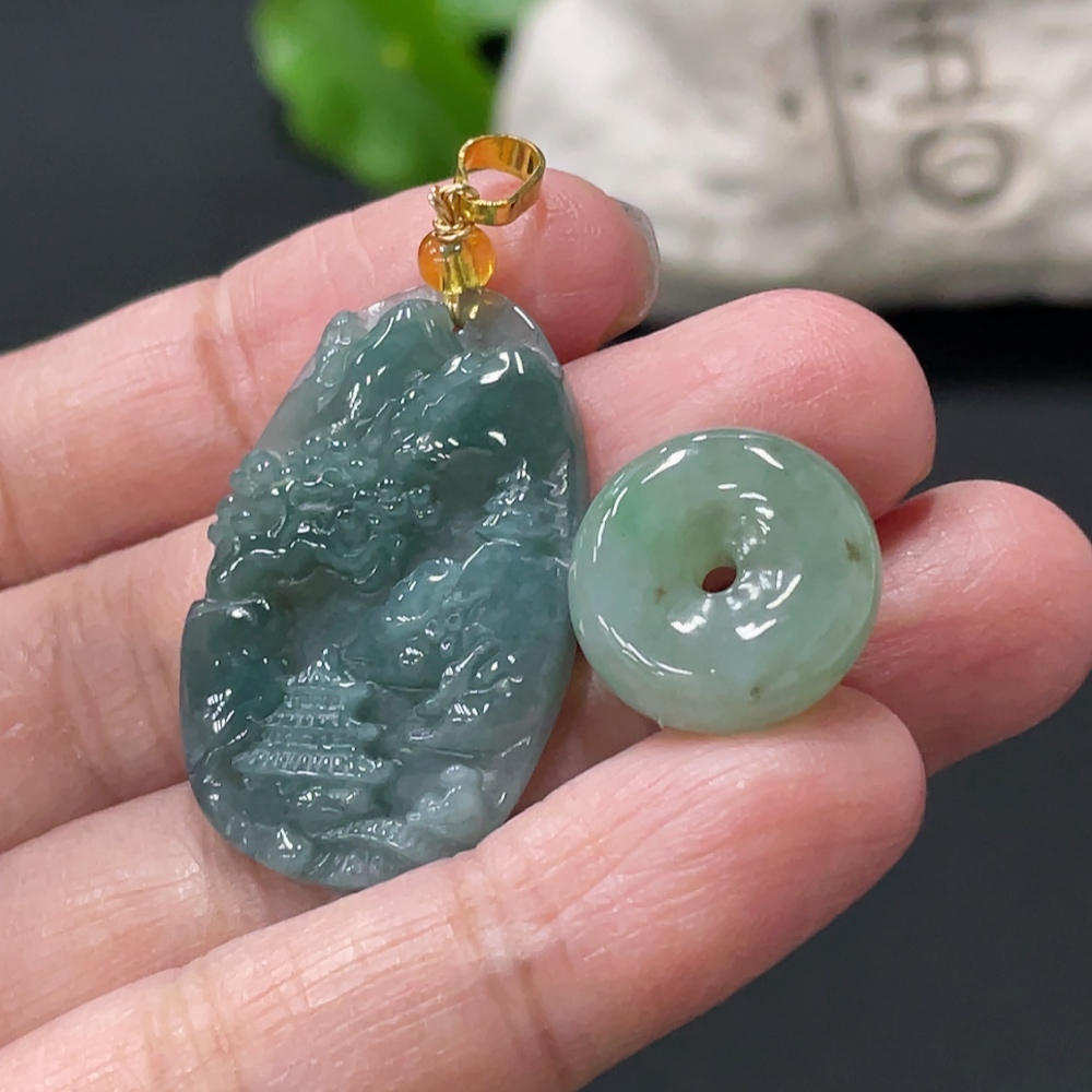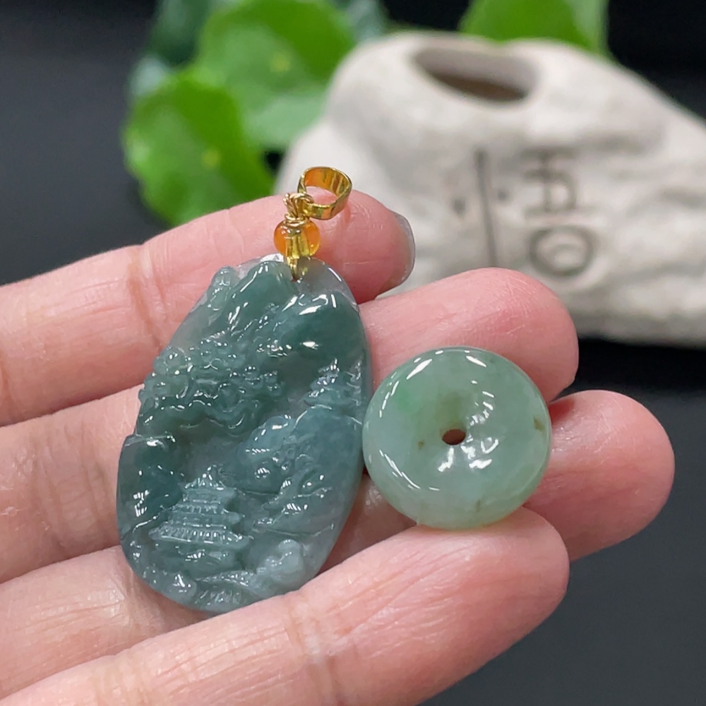 Jadeite Pendant Landscape Peace Knot Total Weight Approx. 7.77g Knot Non-Gold