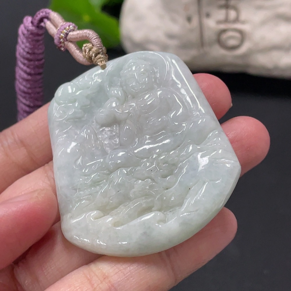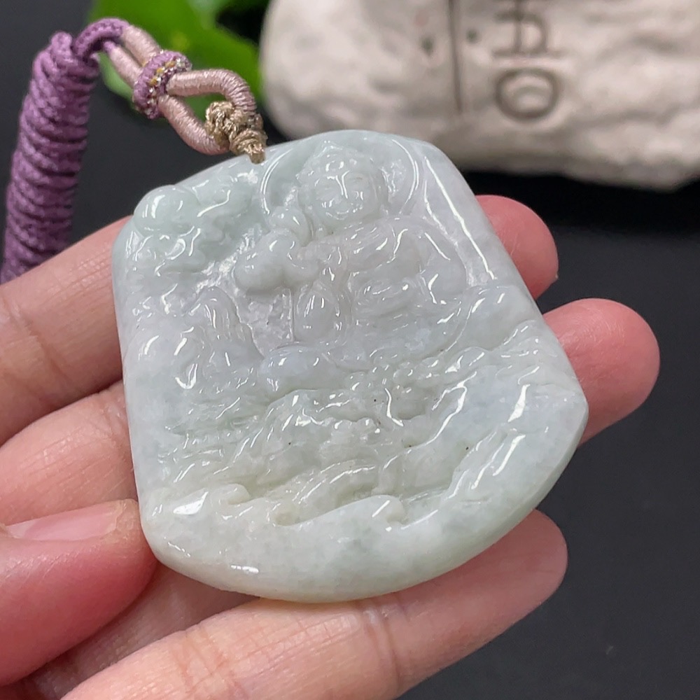 Jadeite Guanyin Pendant, Total Weight Approx. 30.55g