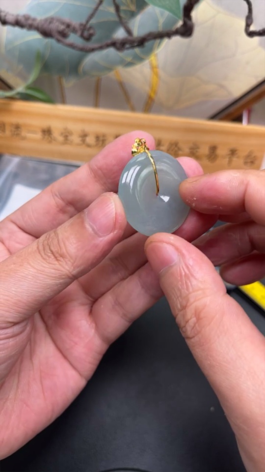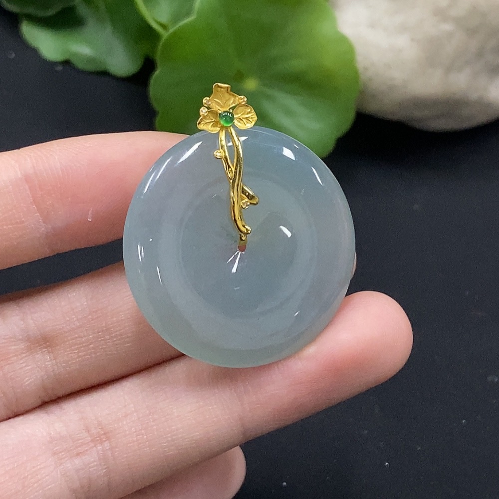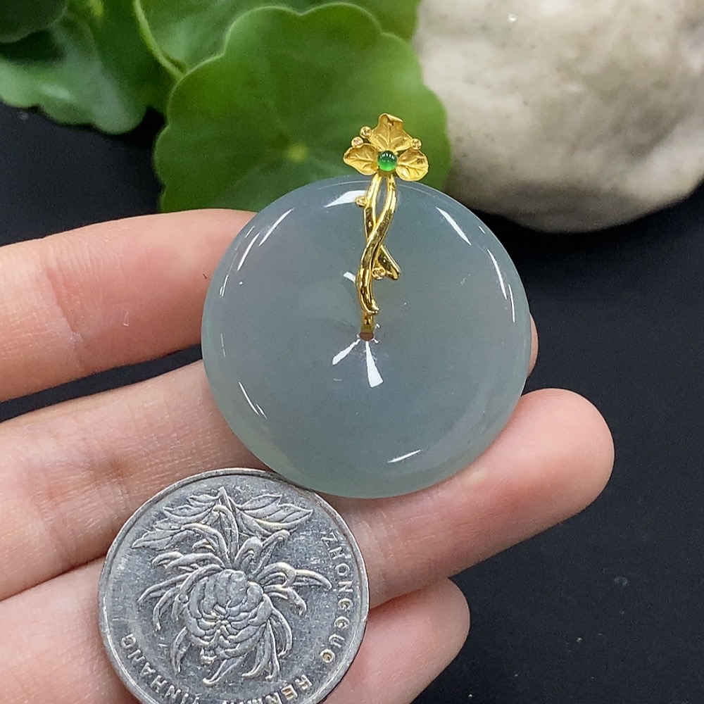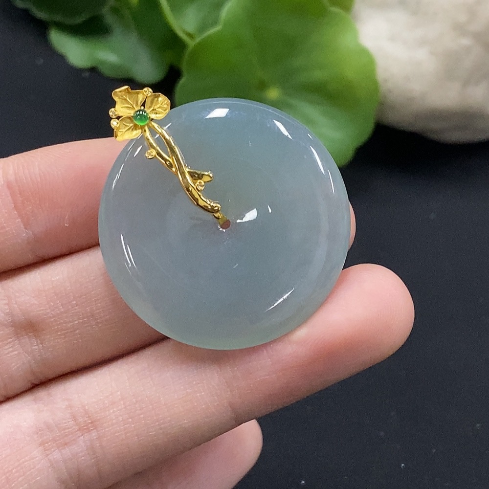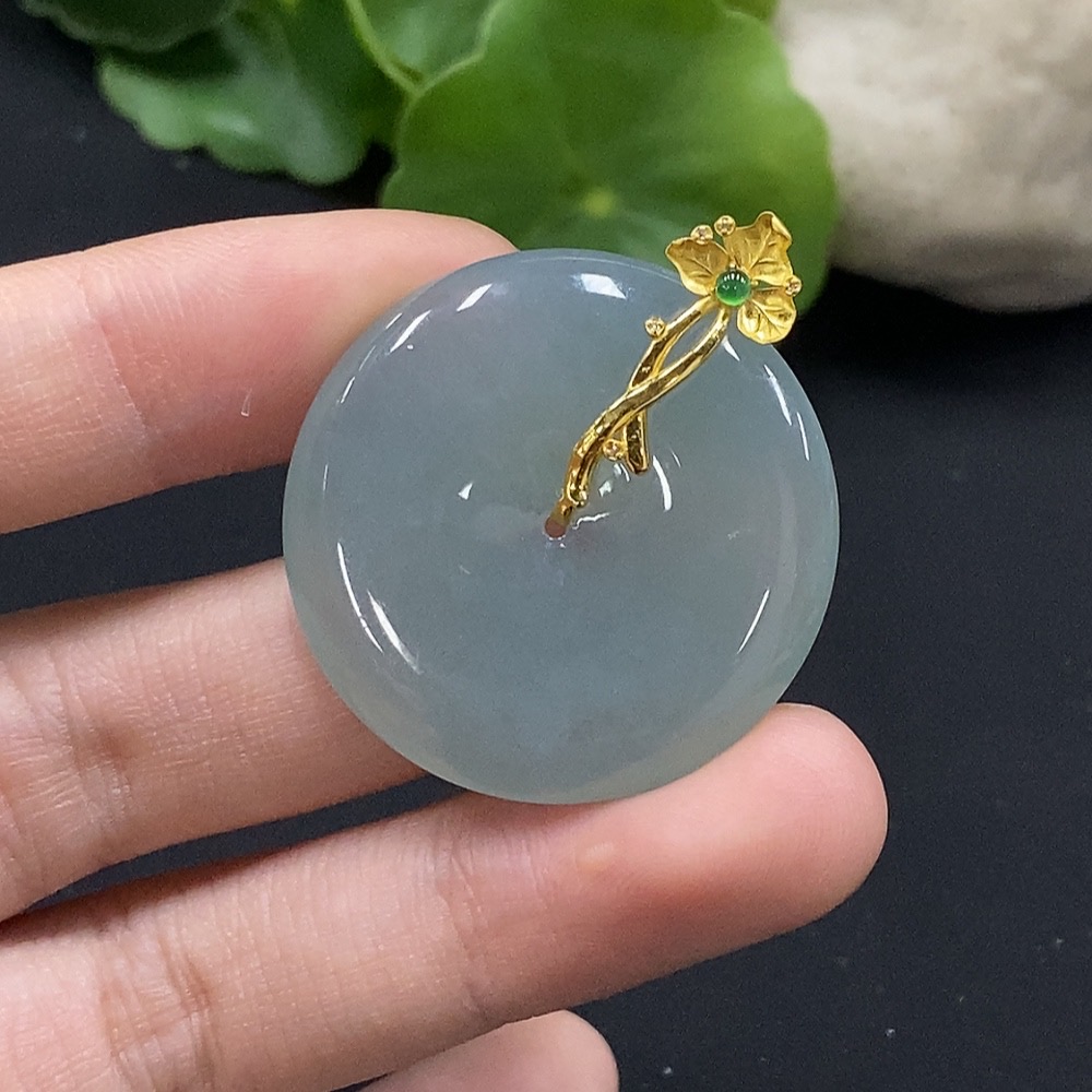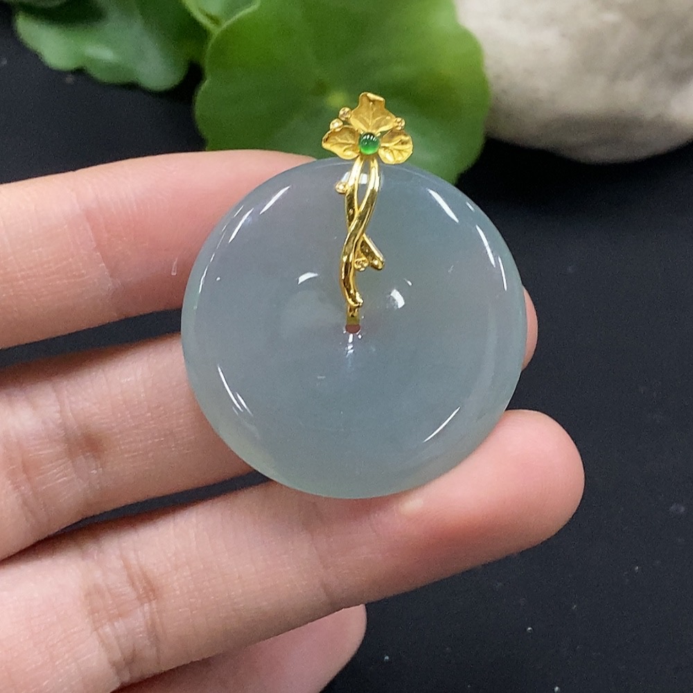 Jadeite Safety Buckle Pendant with 18K Gold and Diamond Accents, Total Weight Approximately 11.4g