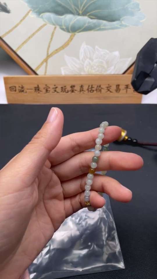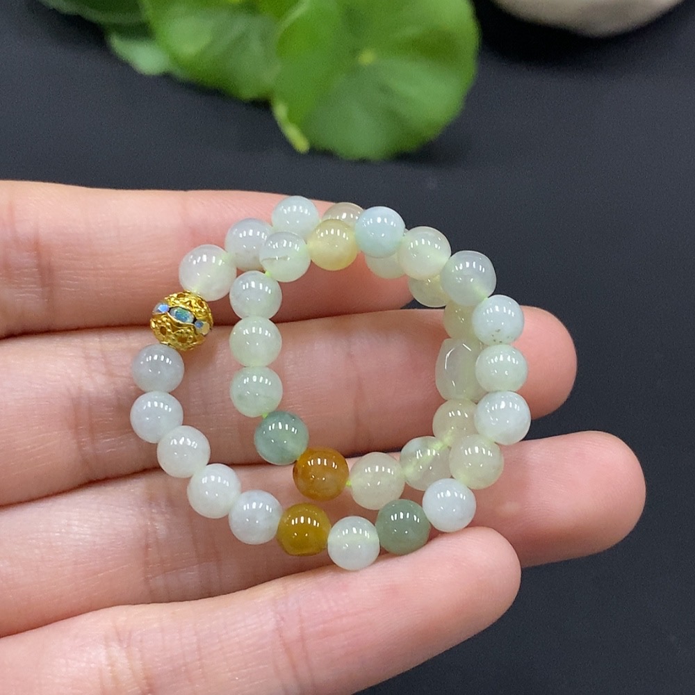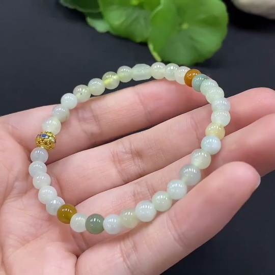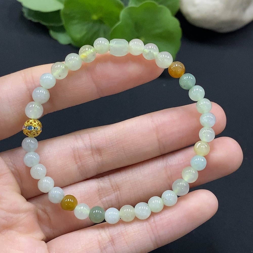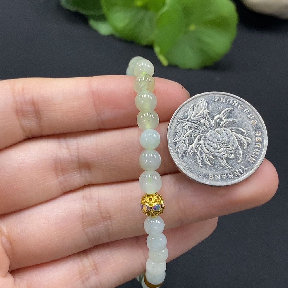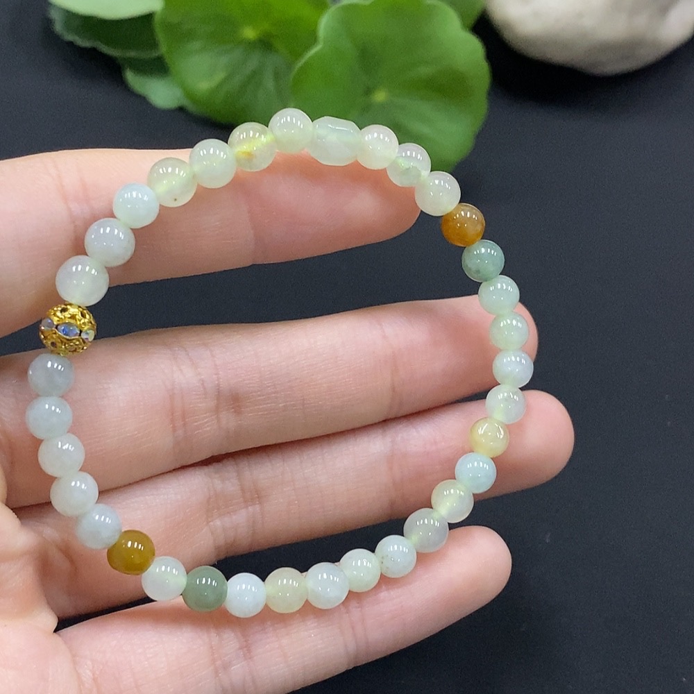 Jadeite Bracelet Approx. 5mm Beads Non-Gold Setting Yellow Beads Non-Grade A Total Weight Approx. 8.5g