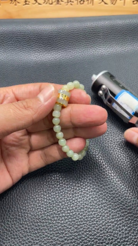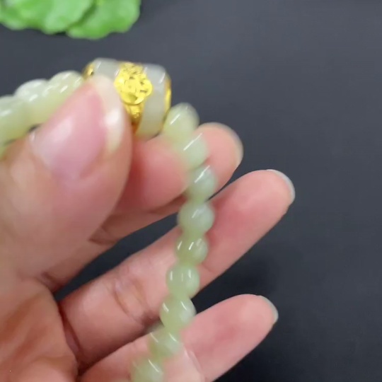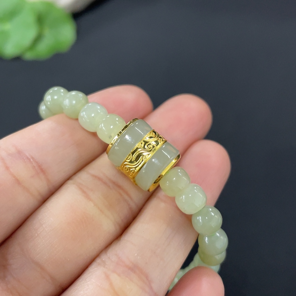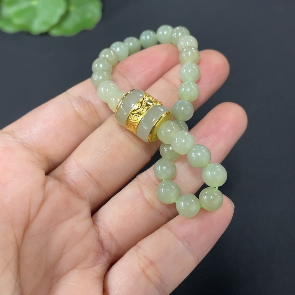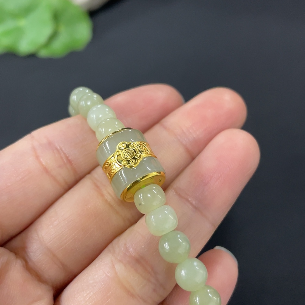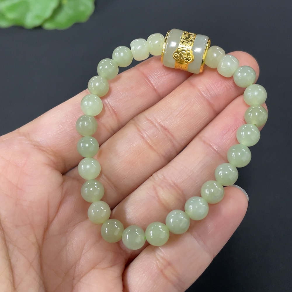 Hetian Jade Bracelet 6mm approx. Gold Content 86% Total Weight approx. 10.6g