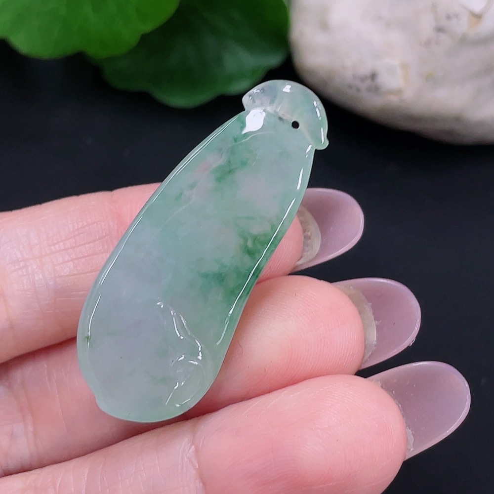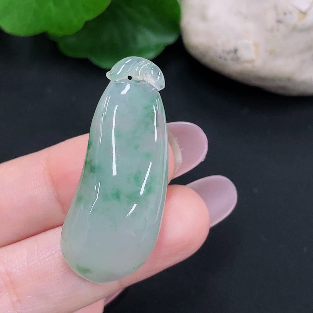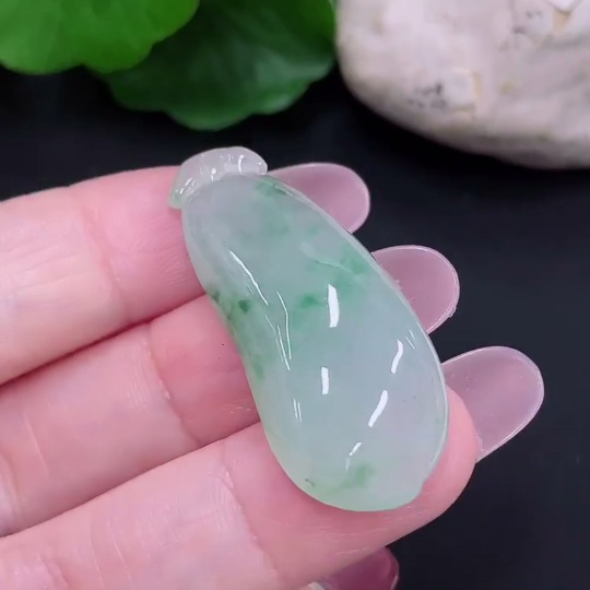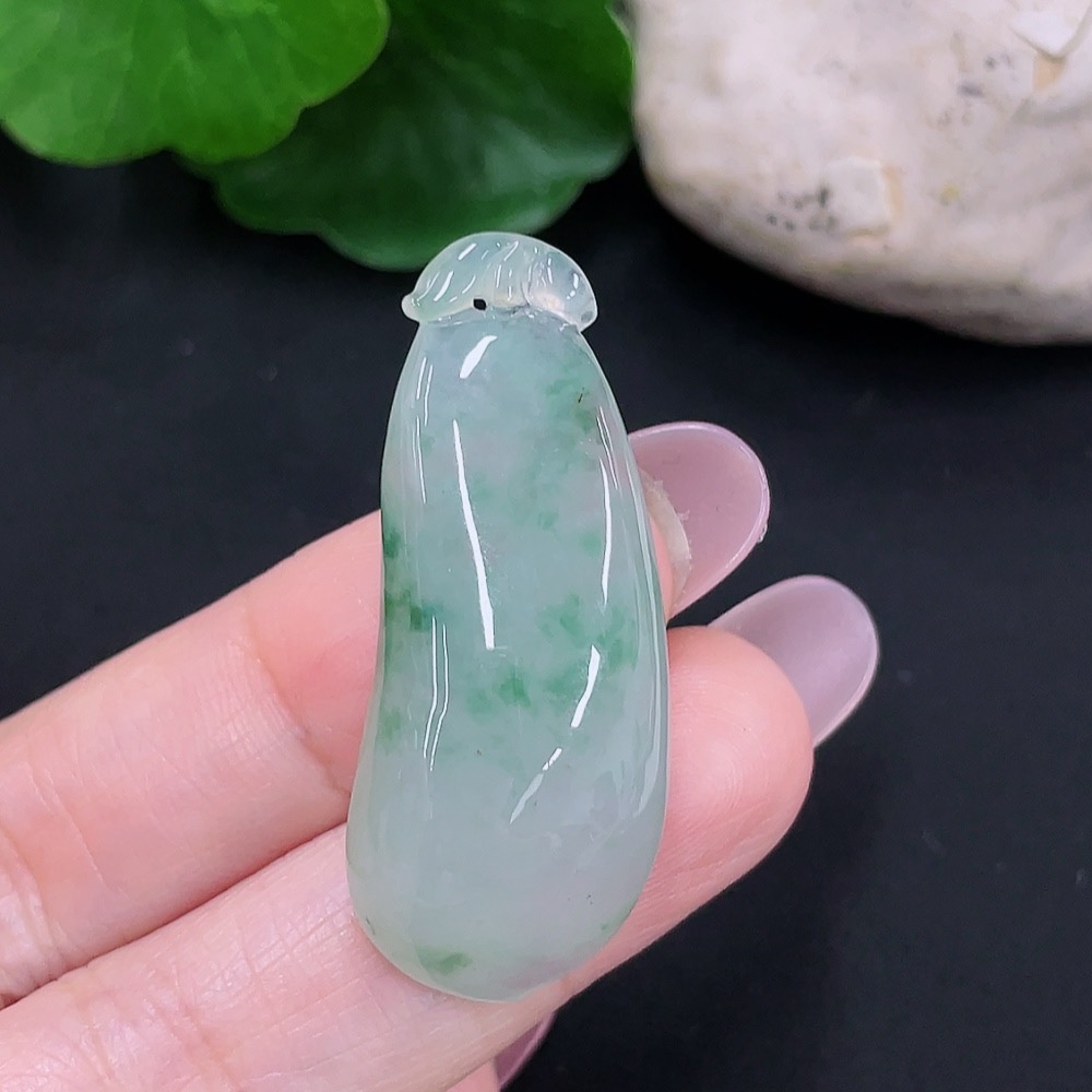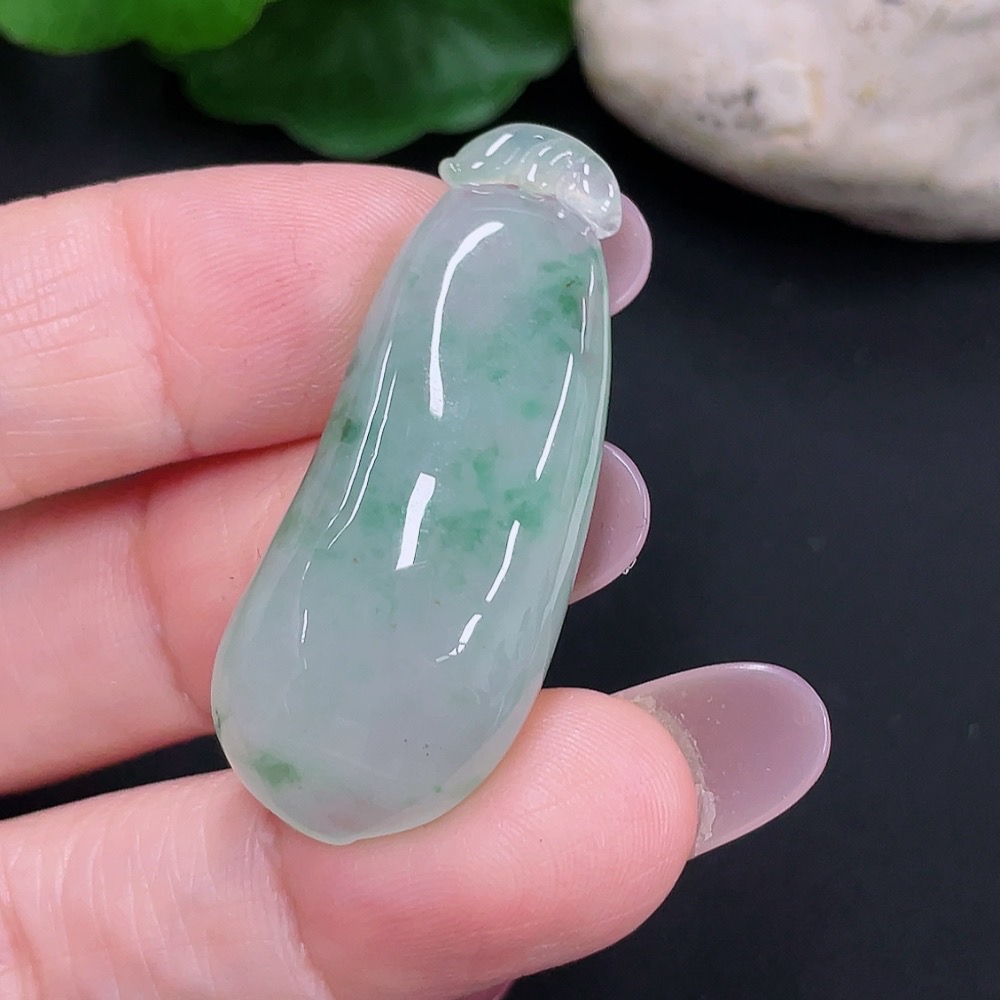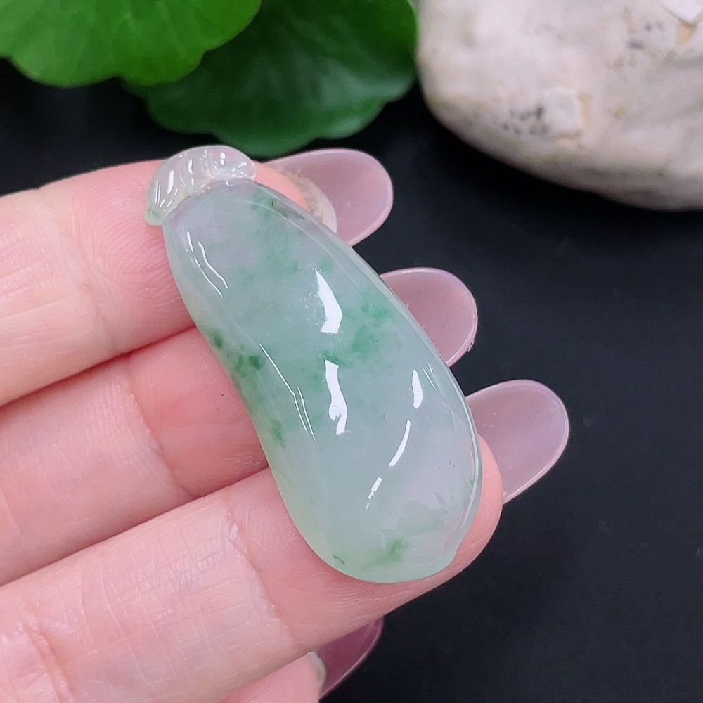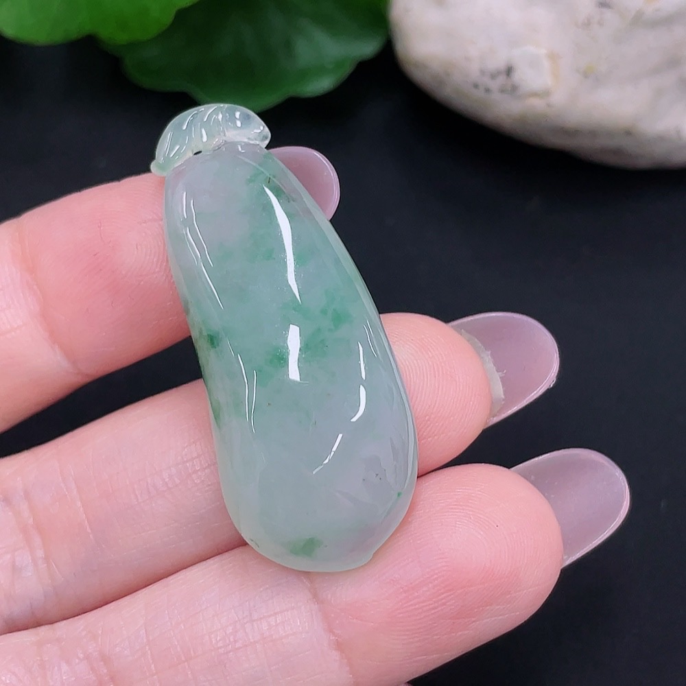 Jadeite Auspicious Gourd Pendant, Total Weight Approximately 9.5g