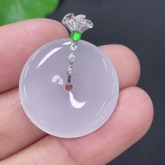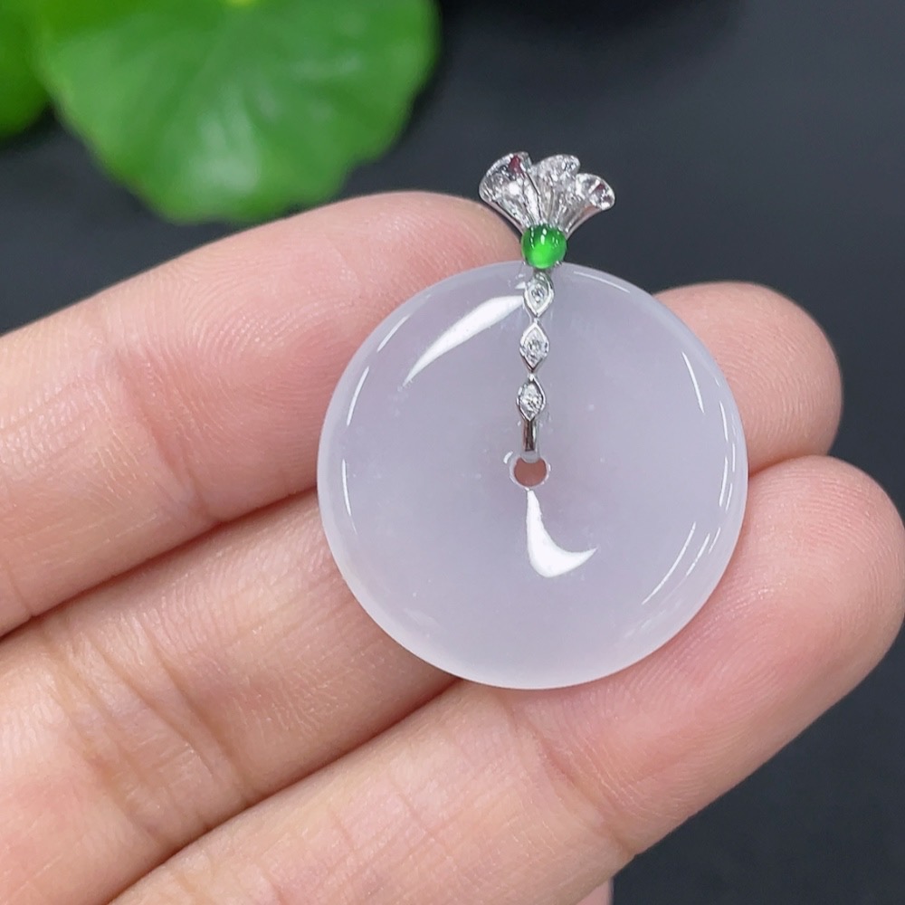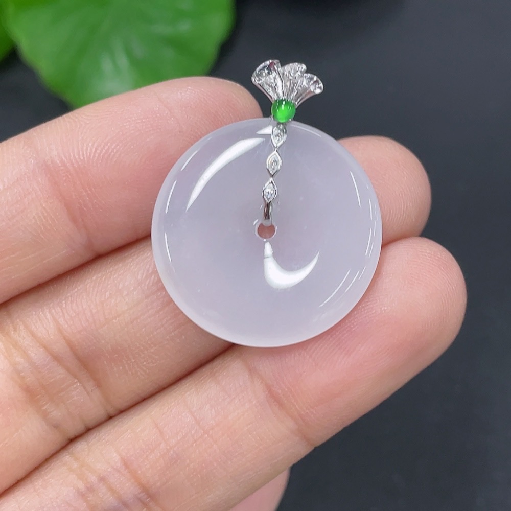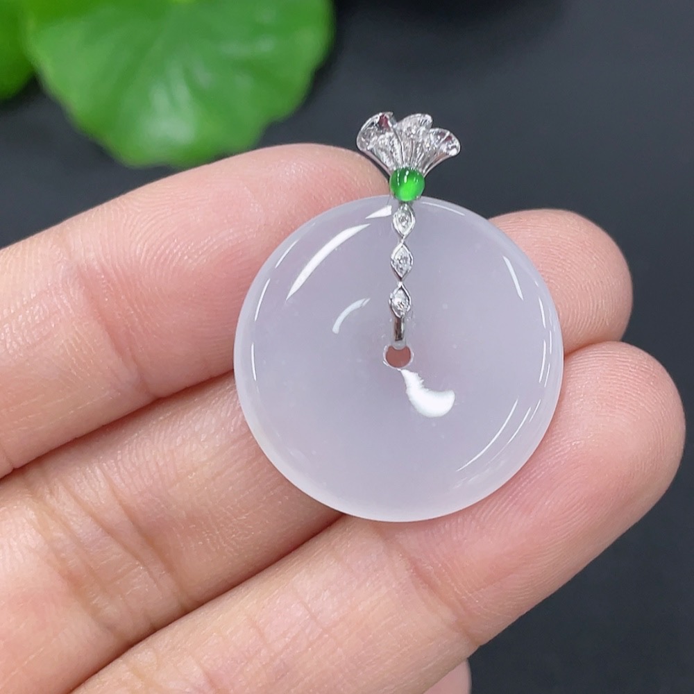 Jadeite Safety Buckle Pendant 18k Total Weight Approx. 3.58g with Diamond Accents
