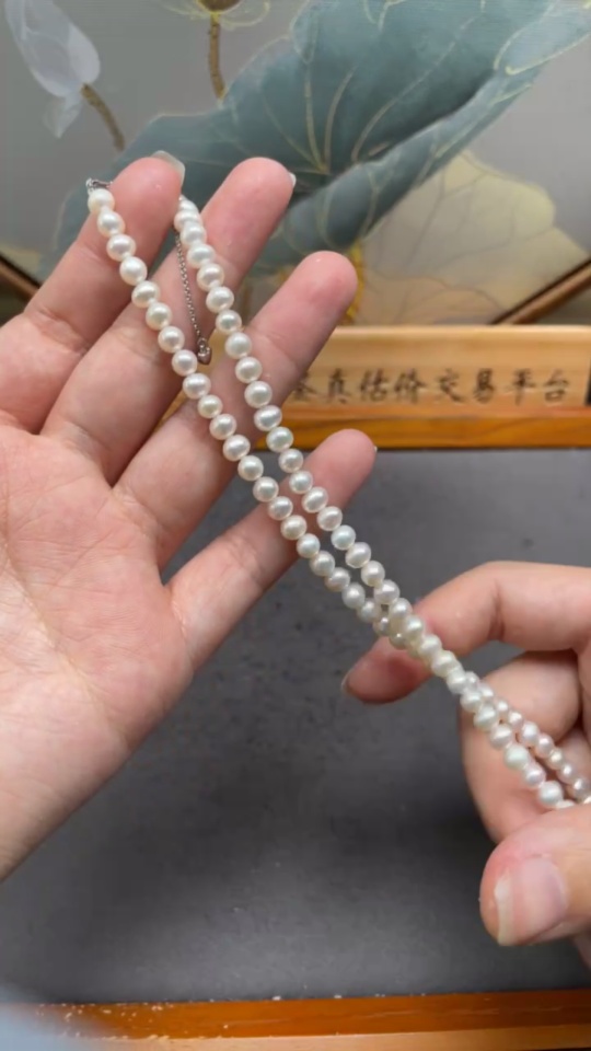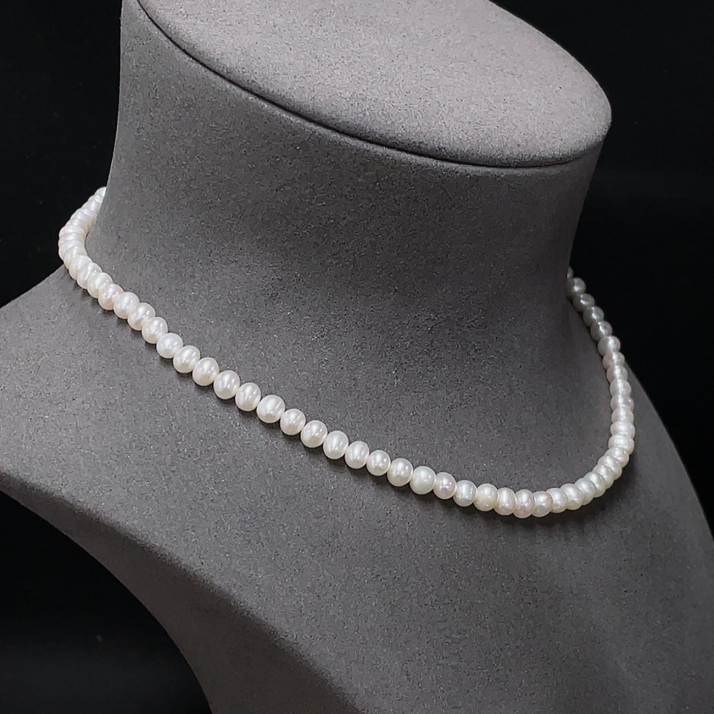 Pearl bead necklace non-gold total weight approx. 16.12g size about 5.5mm