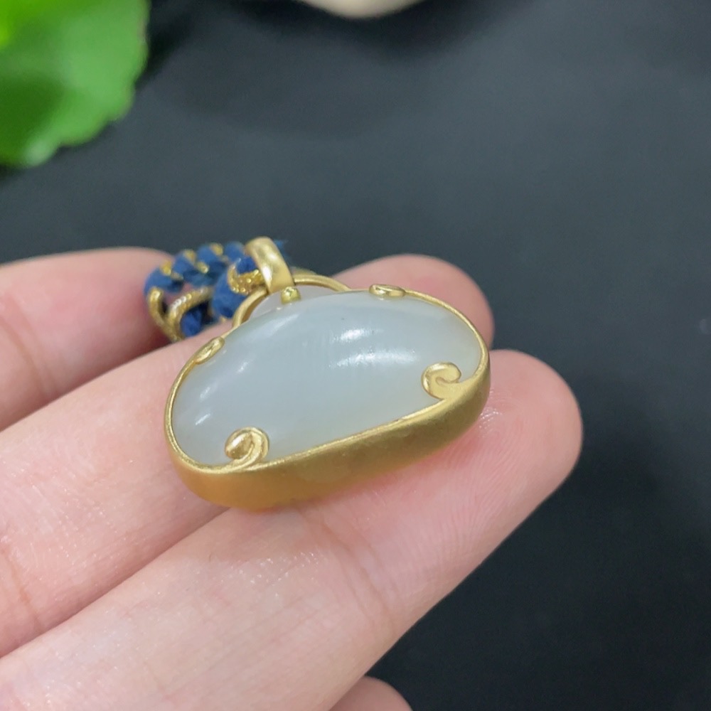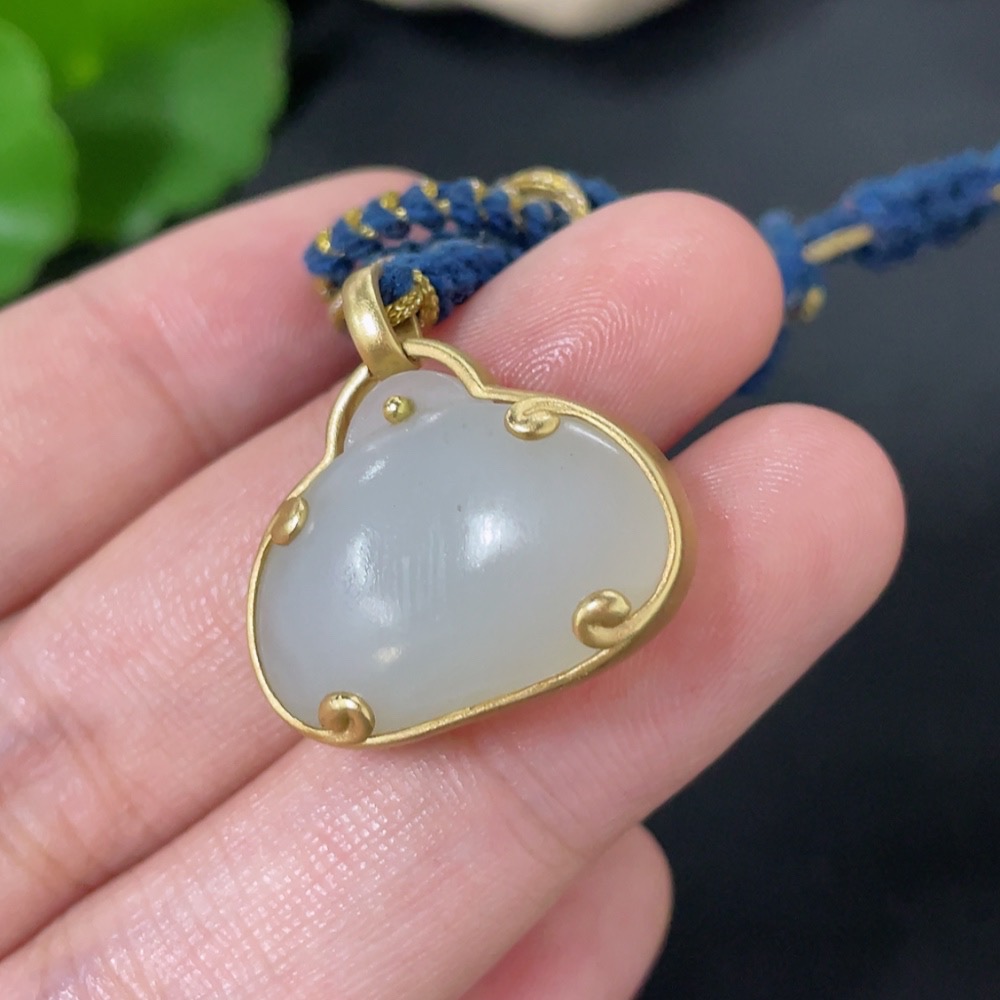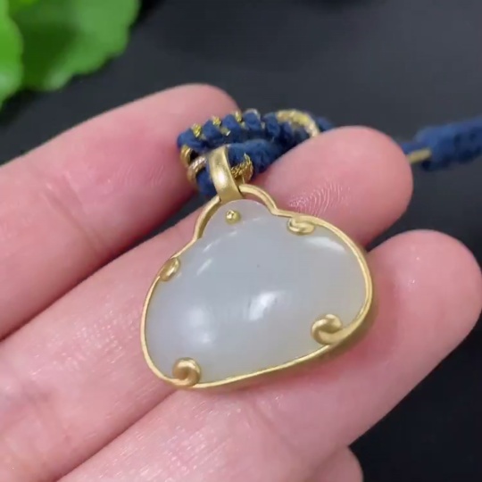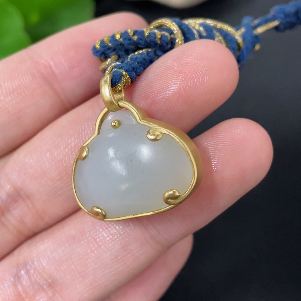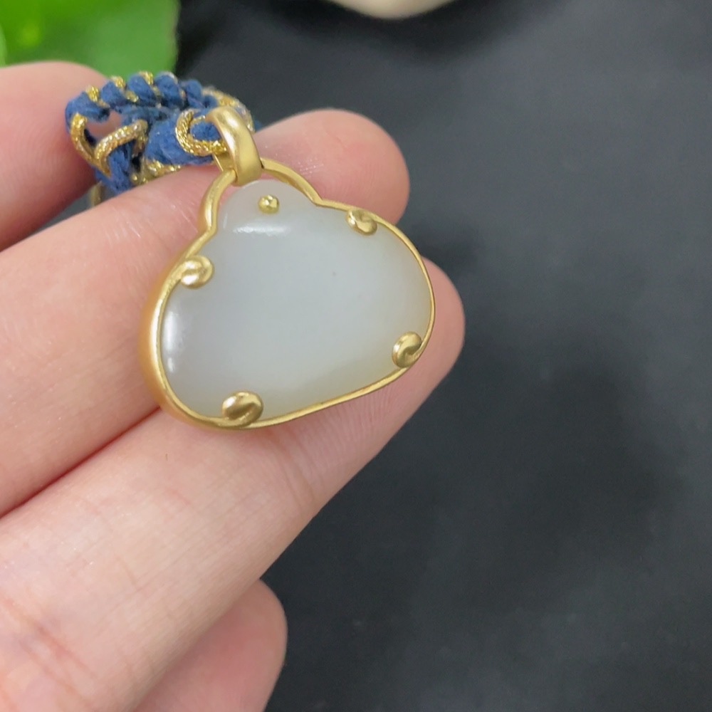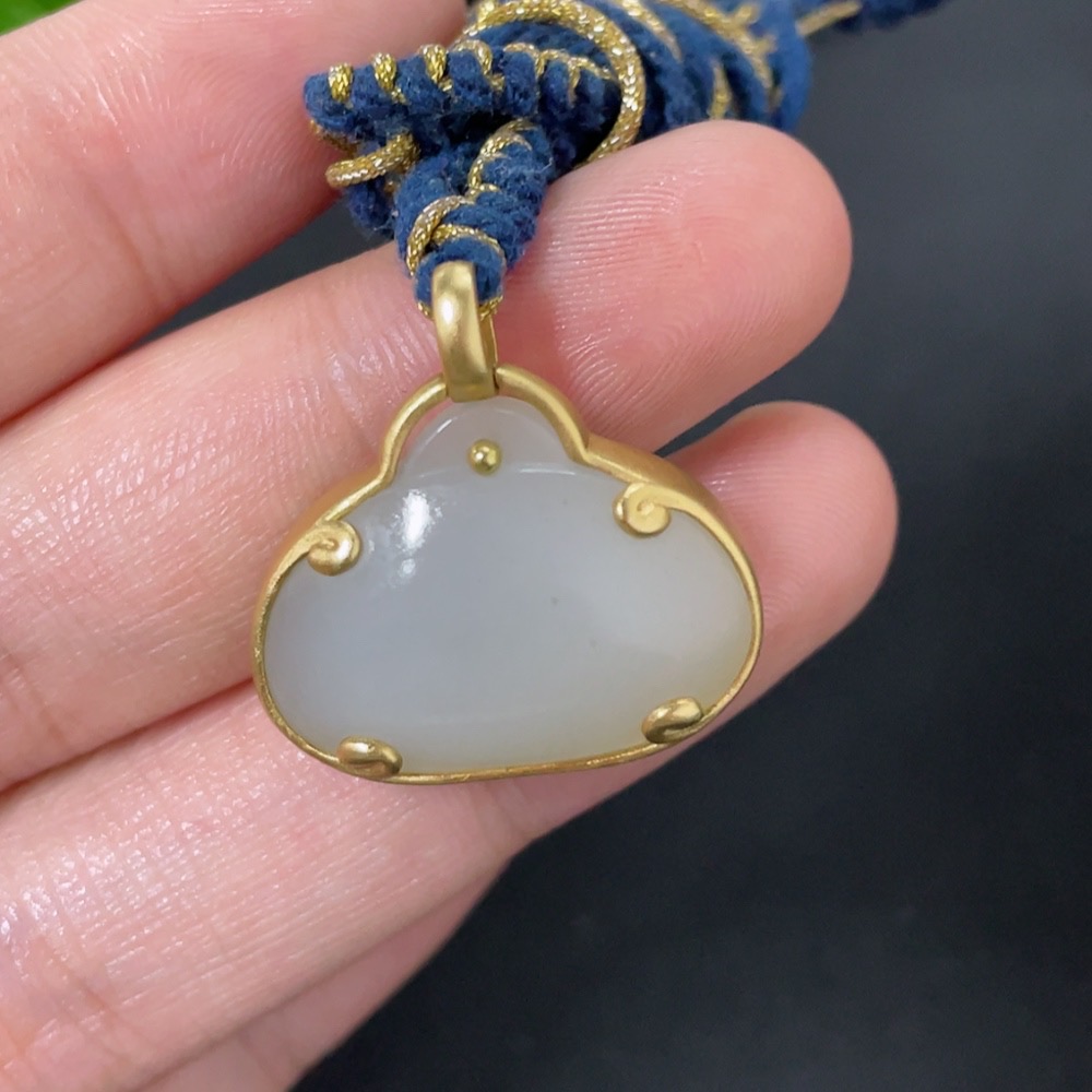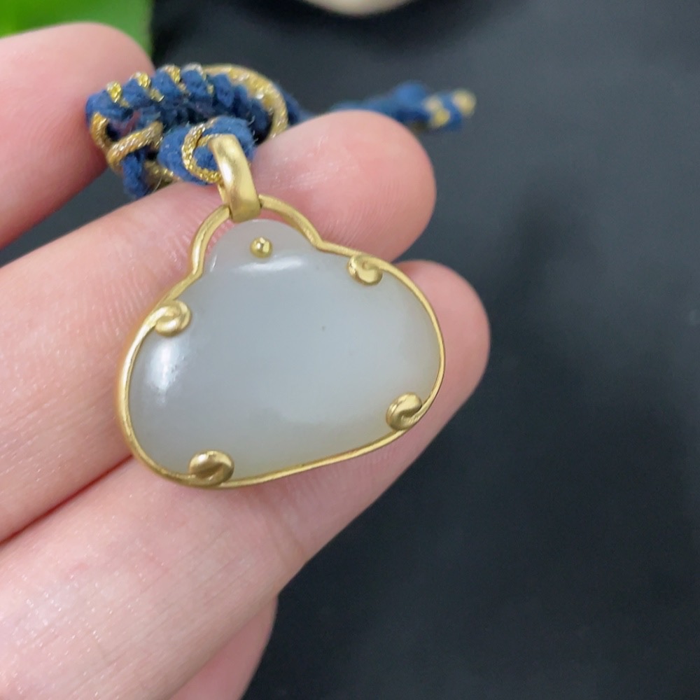 Hetian Jade Inlaid Pendant, 18k Gold, Total Weight (Including Rope) Approx. 9.1g