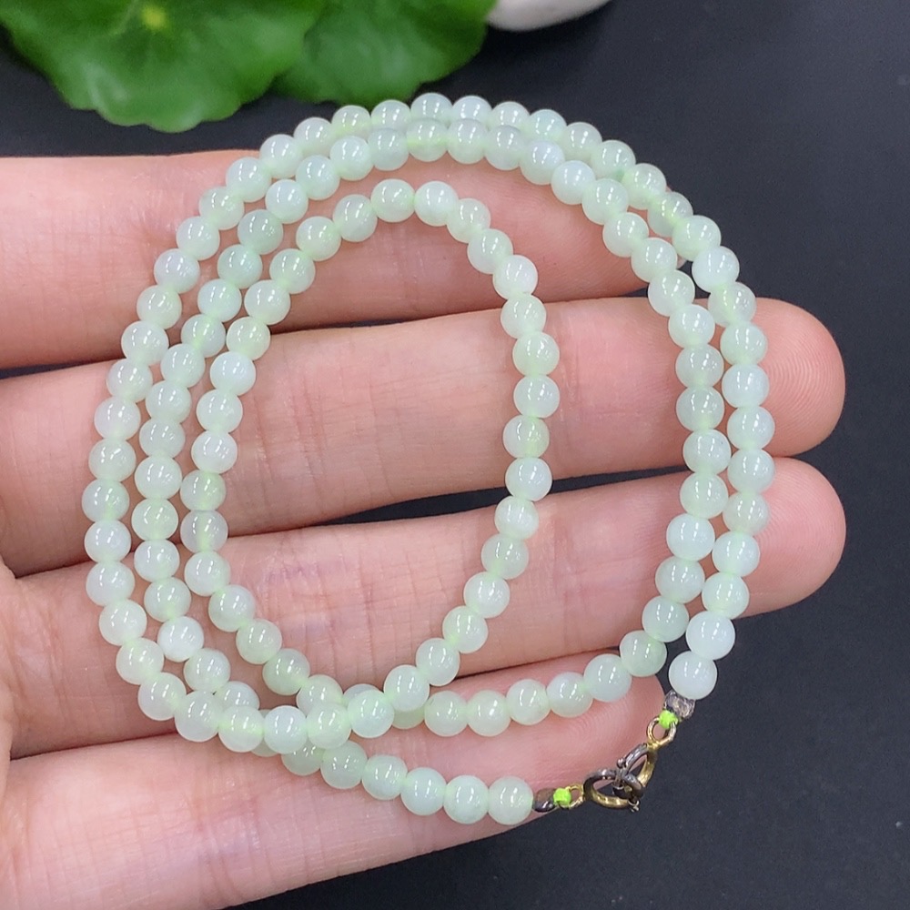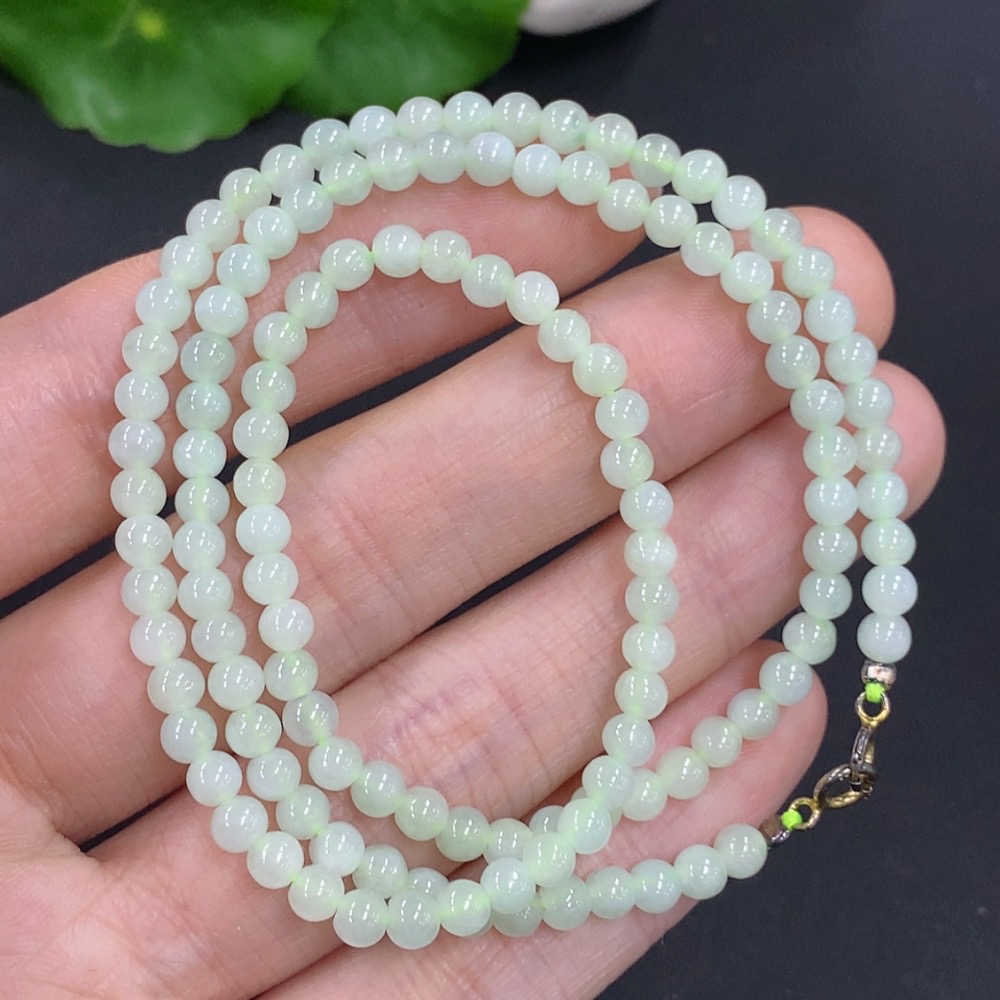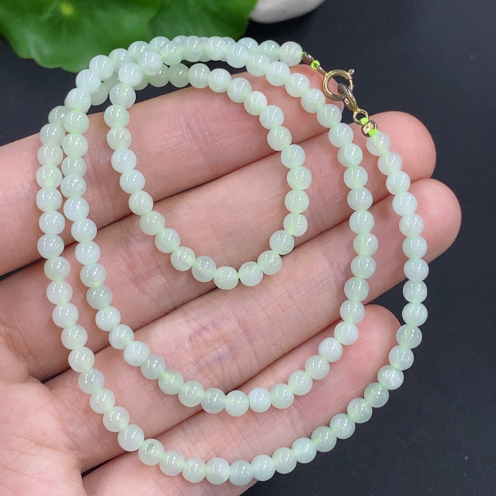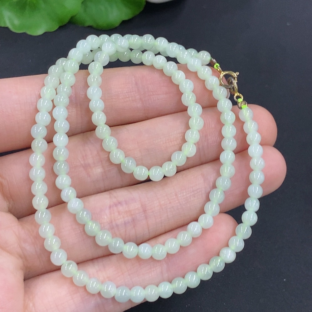 Jadeite Bead Necklace Non-Gold Total Weight Approx. 11.5g Size About 3.7mm