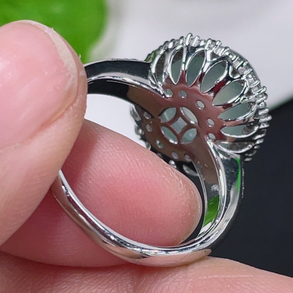 Jadeite Inlaid Ring 18k with Diamond Accents Size 14 Total Weight Approx. 5.27g