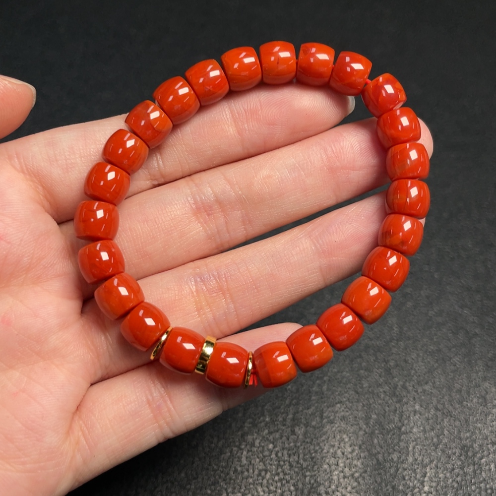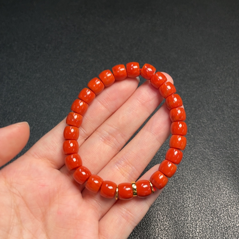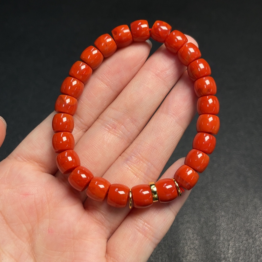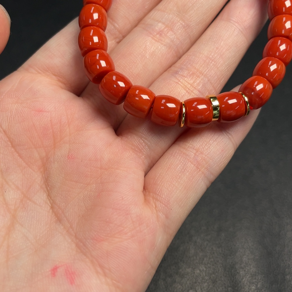 Red Agate Bracelet with Visible Organic Matter, Total Weight Approx. 19.59g, Size About 7.8mm, Non-Gold