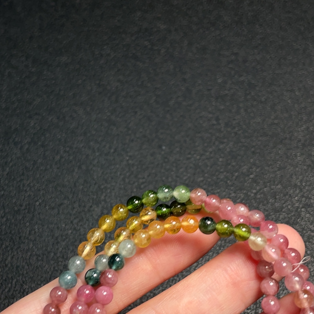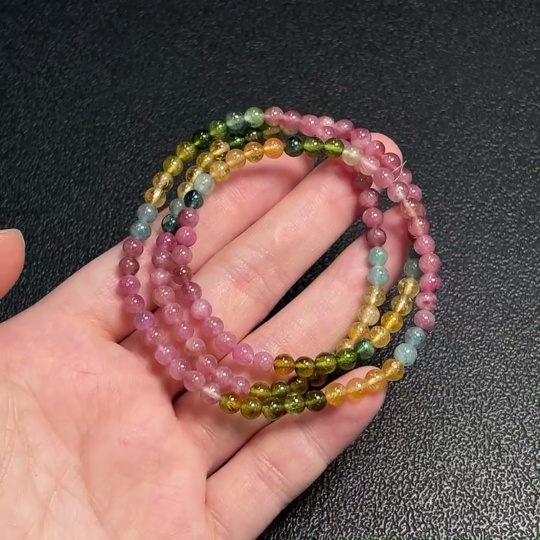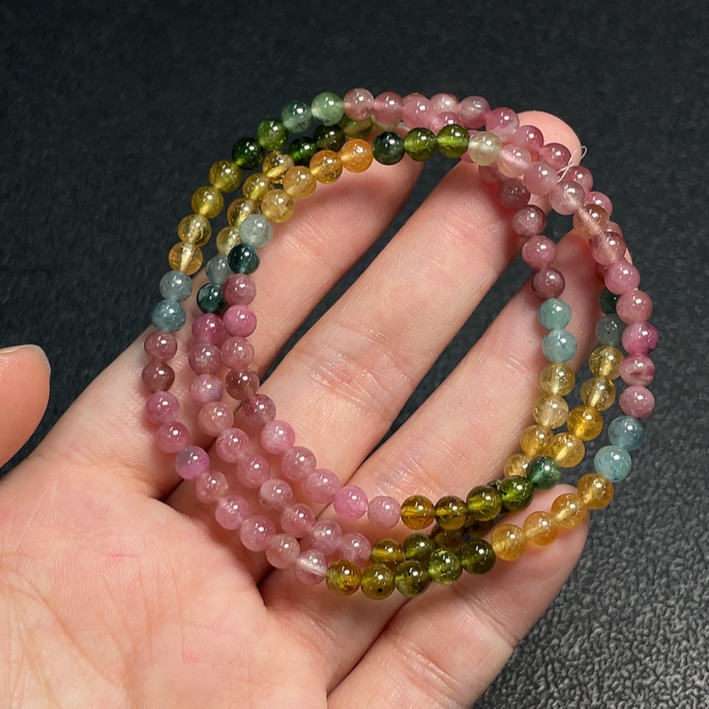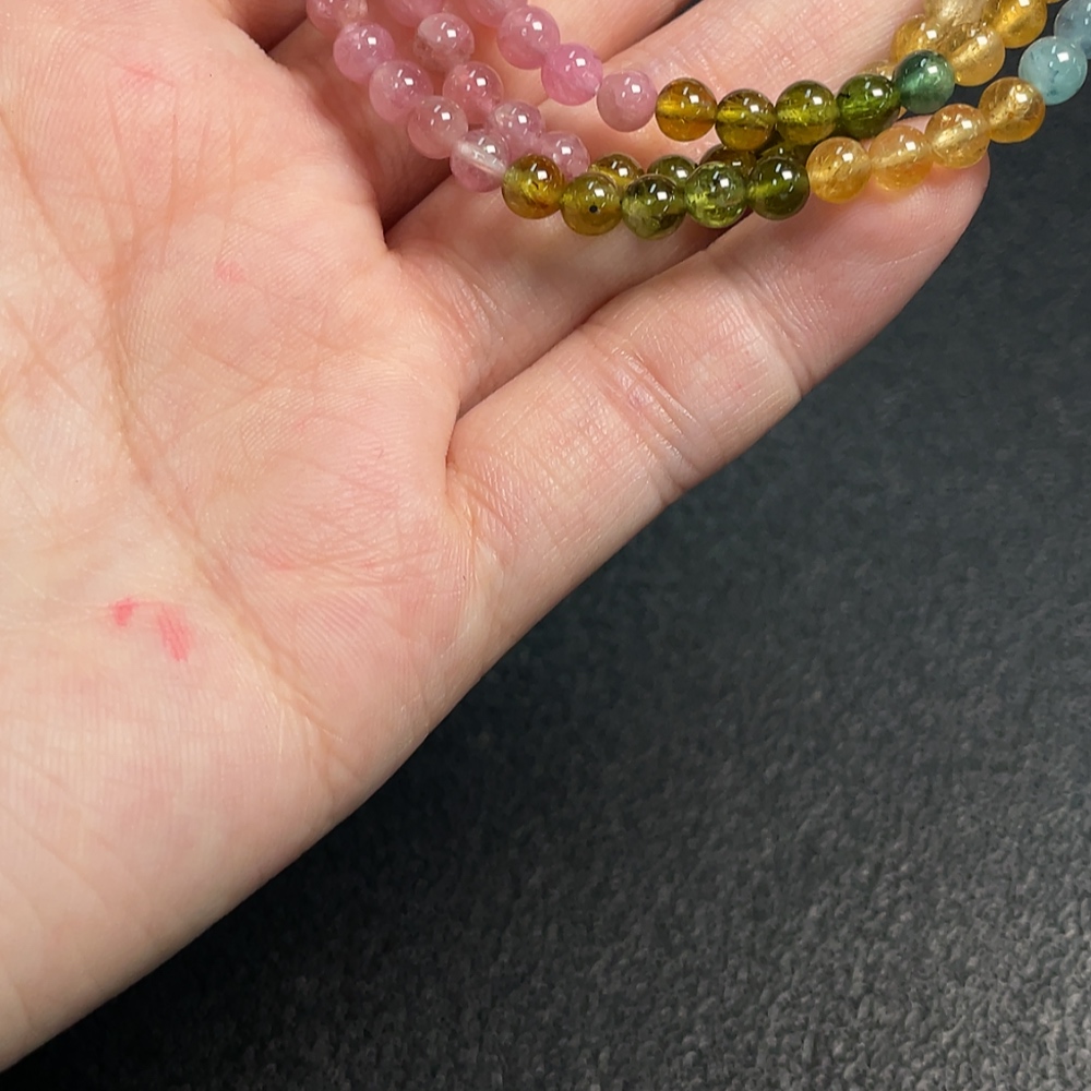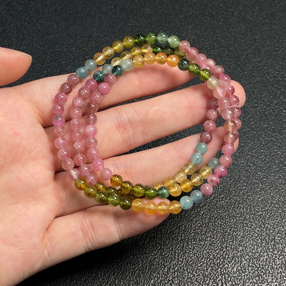 Tourmaline bead bracelet with visible organic inclusions, total weight approximately 17.30g, bead size about 4.5mm