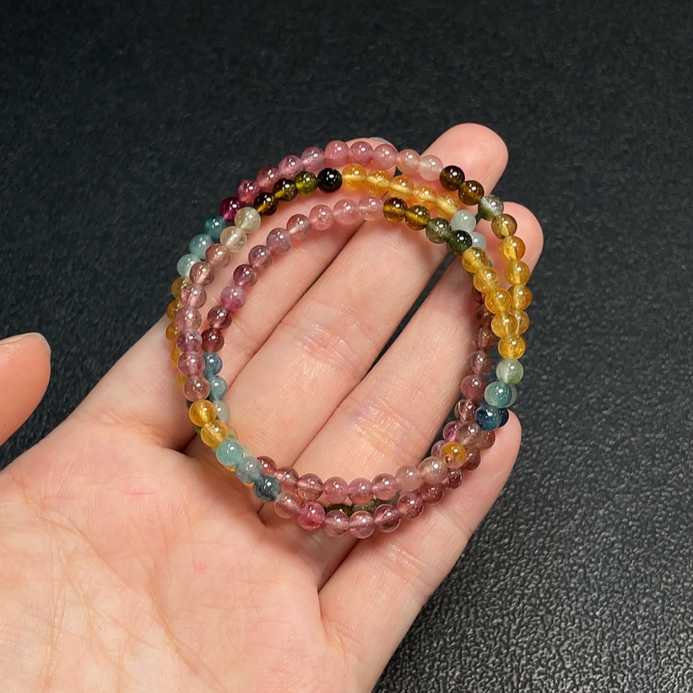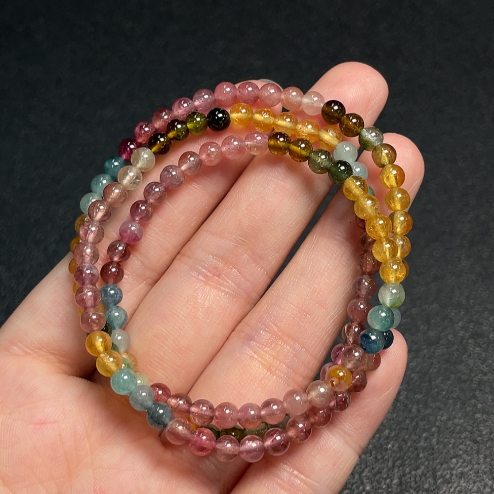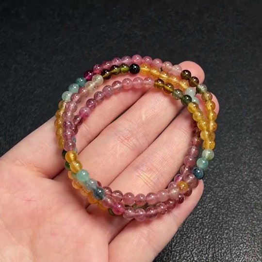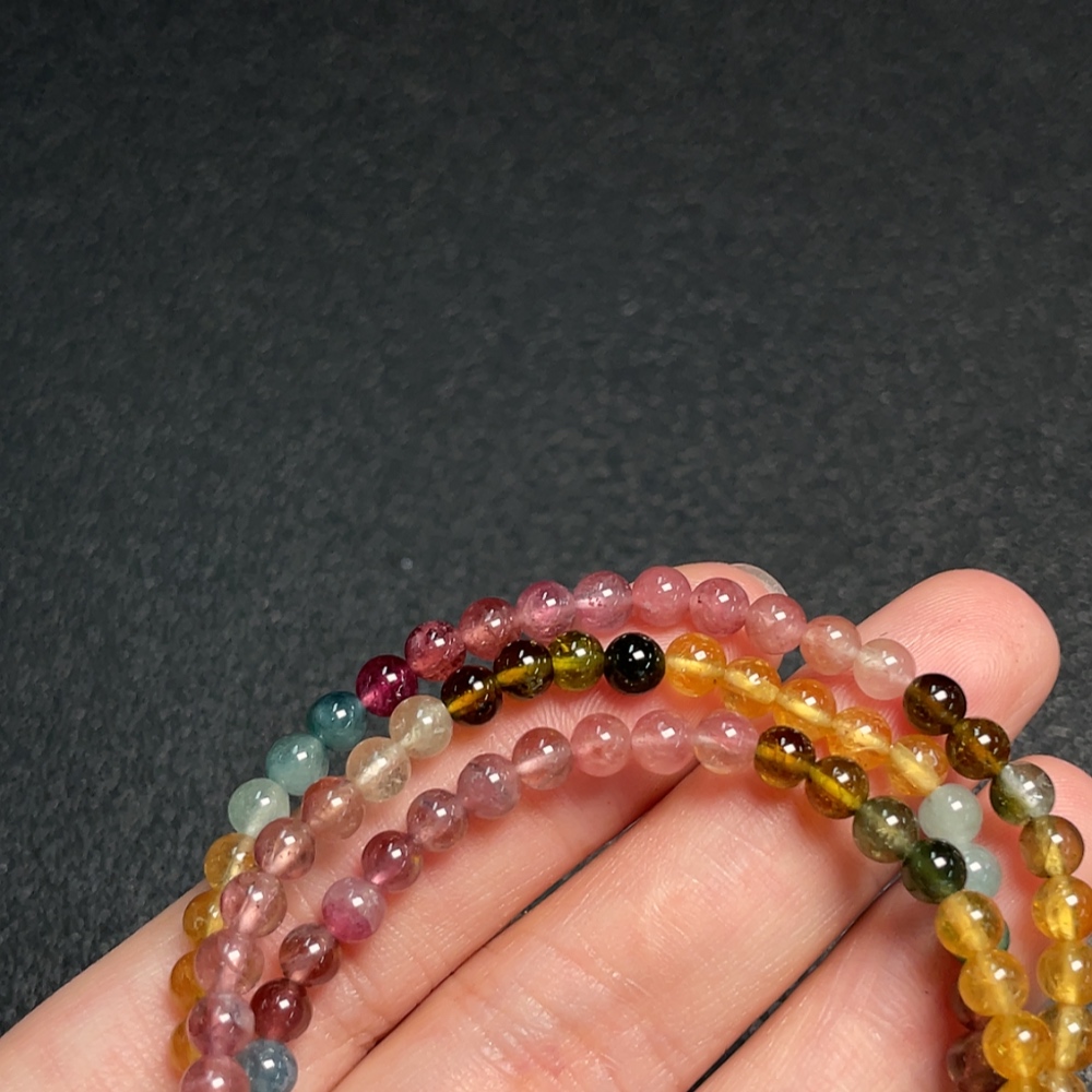 Tourmaline Bead Necklace with Visible Organic Matter, Total Weight Approx. 14.72g, Size About 4.2mm