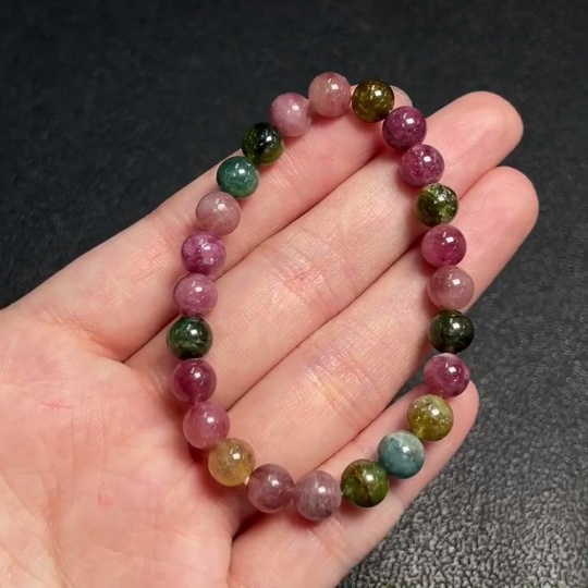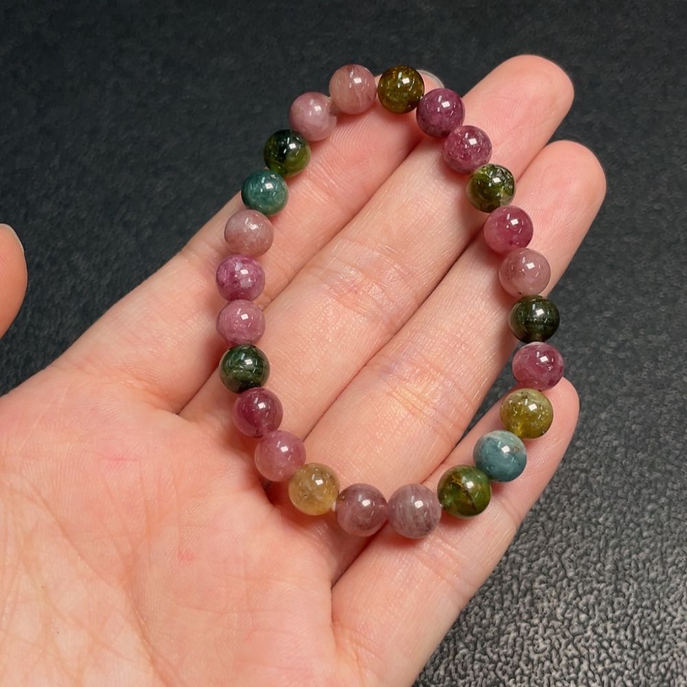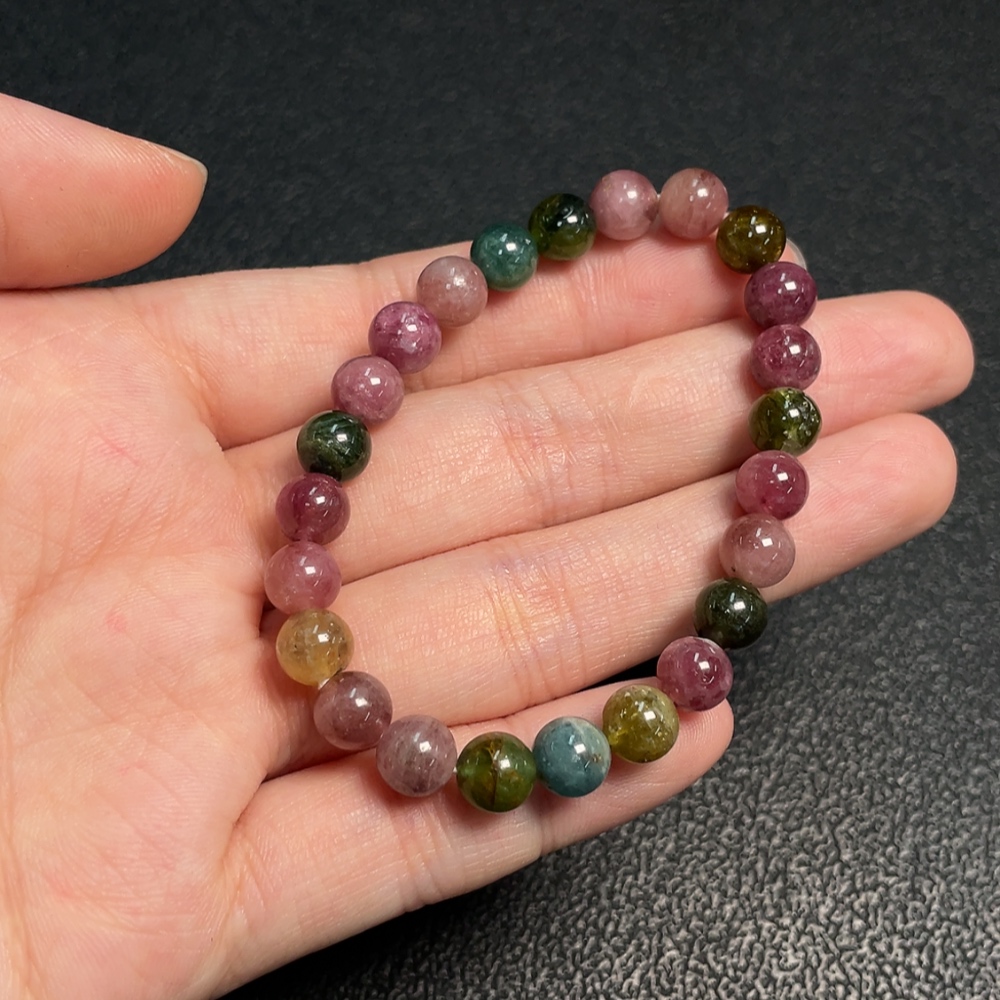 Tourmaline bracelet with visible organic matter, total weight approx. 11.43g, size about 6.8mm