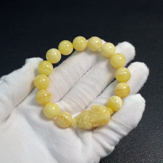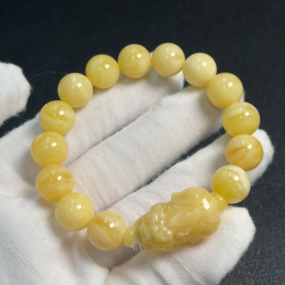 Amber and Beeswax Bracelet, Total Weight Approx. 14g, Size 11.1-14.2mm