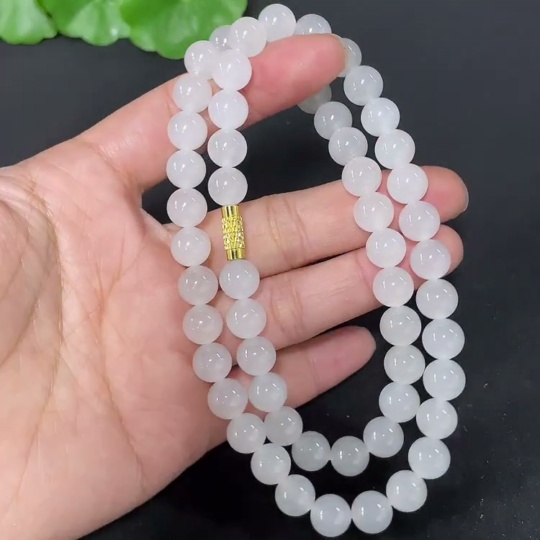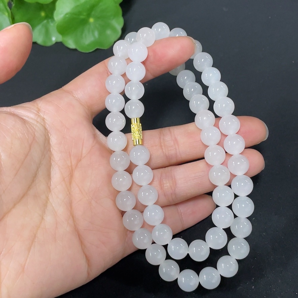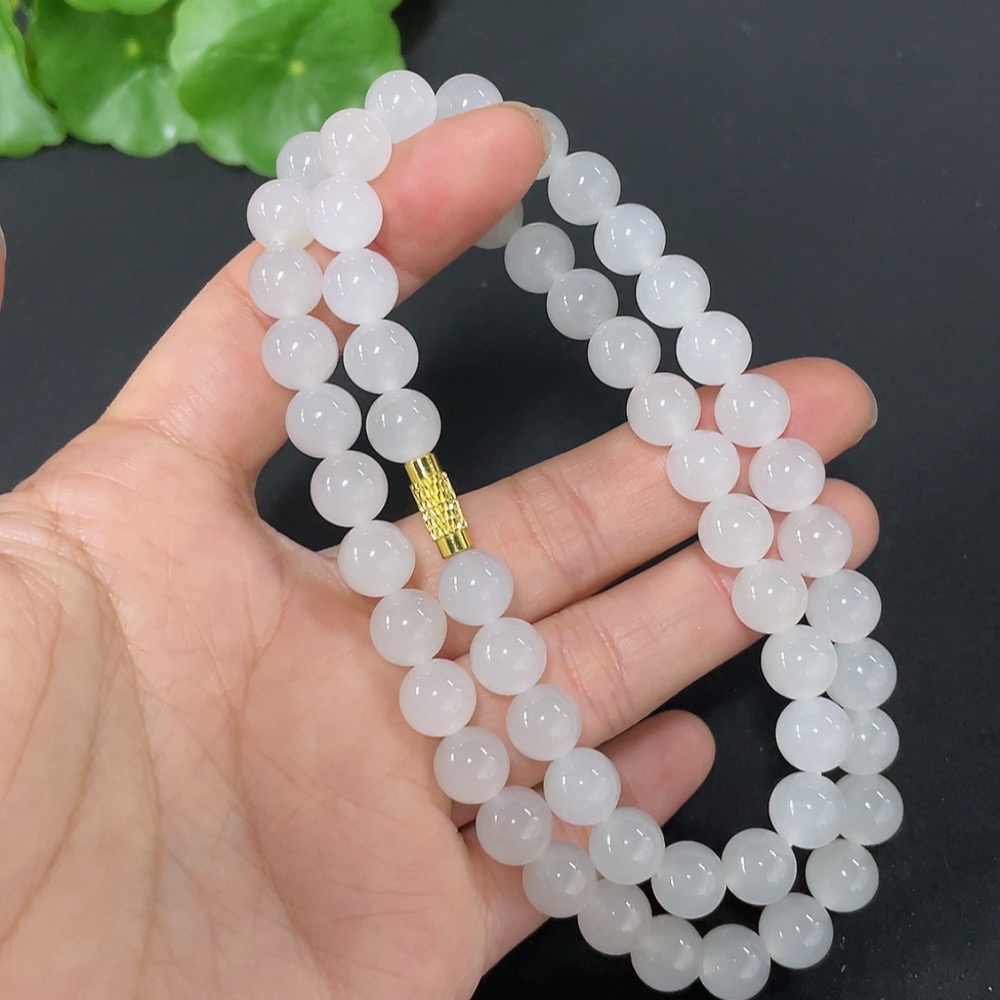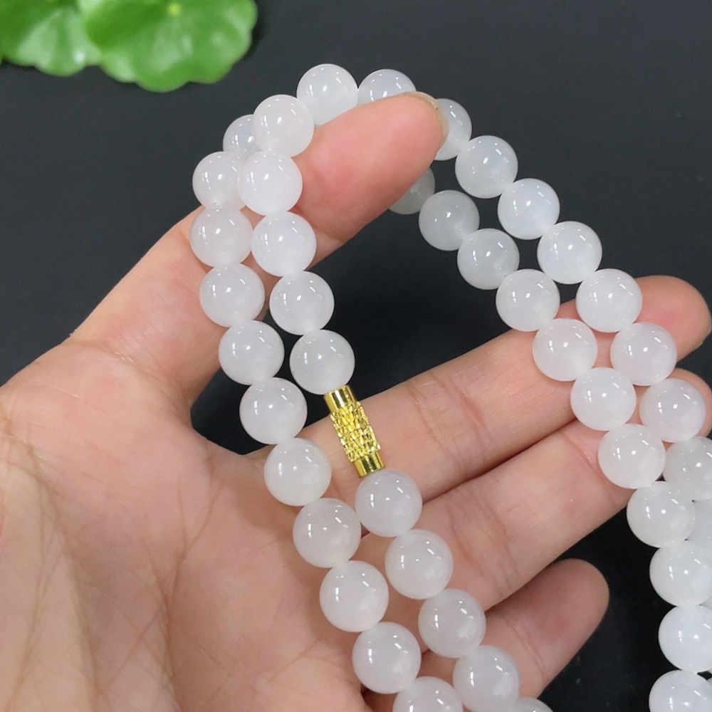 Hetian Jade Bead Necklace, Approx. 7.8mm, Non-Gold, Total Weight Approx. 46.9g