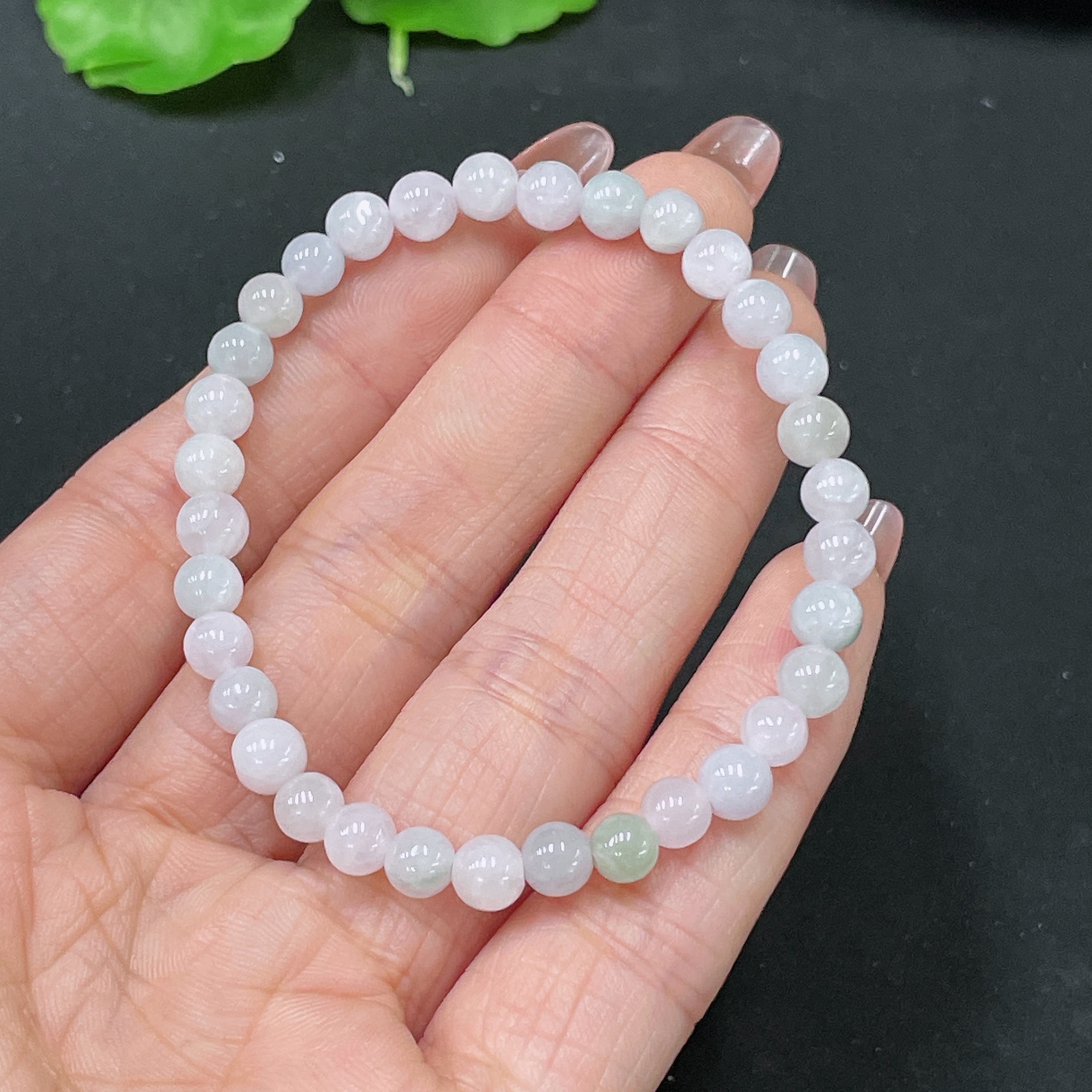 Jadeite bracelet, total weight approx. 9.57g, with non-A beads, impurities, approx. 5.4mm in diameter