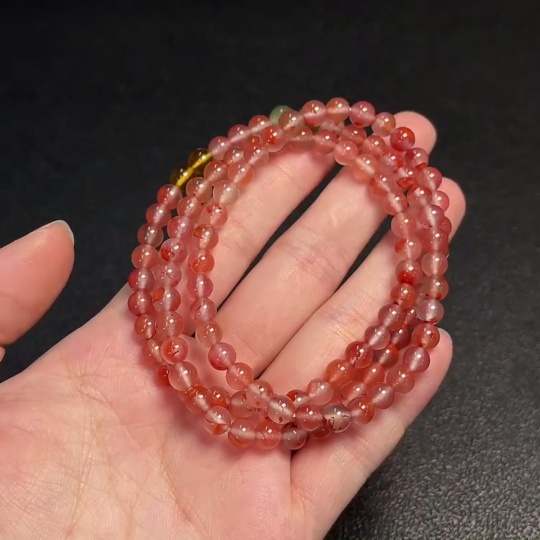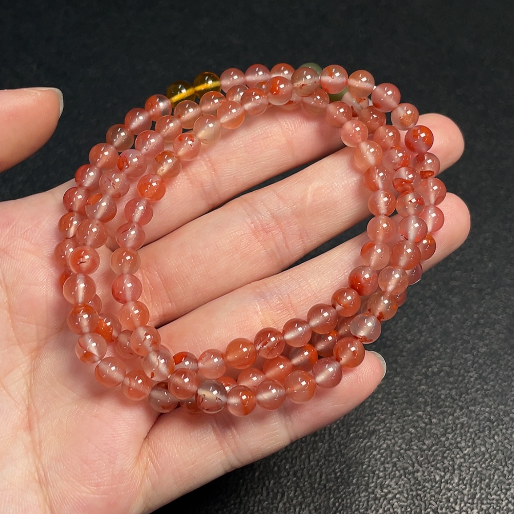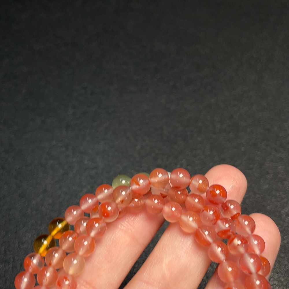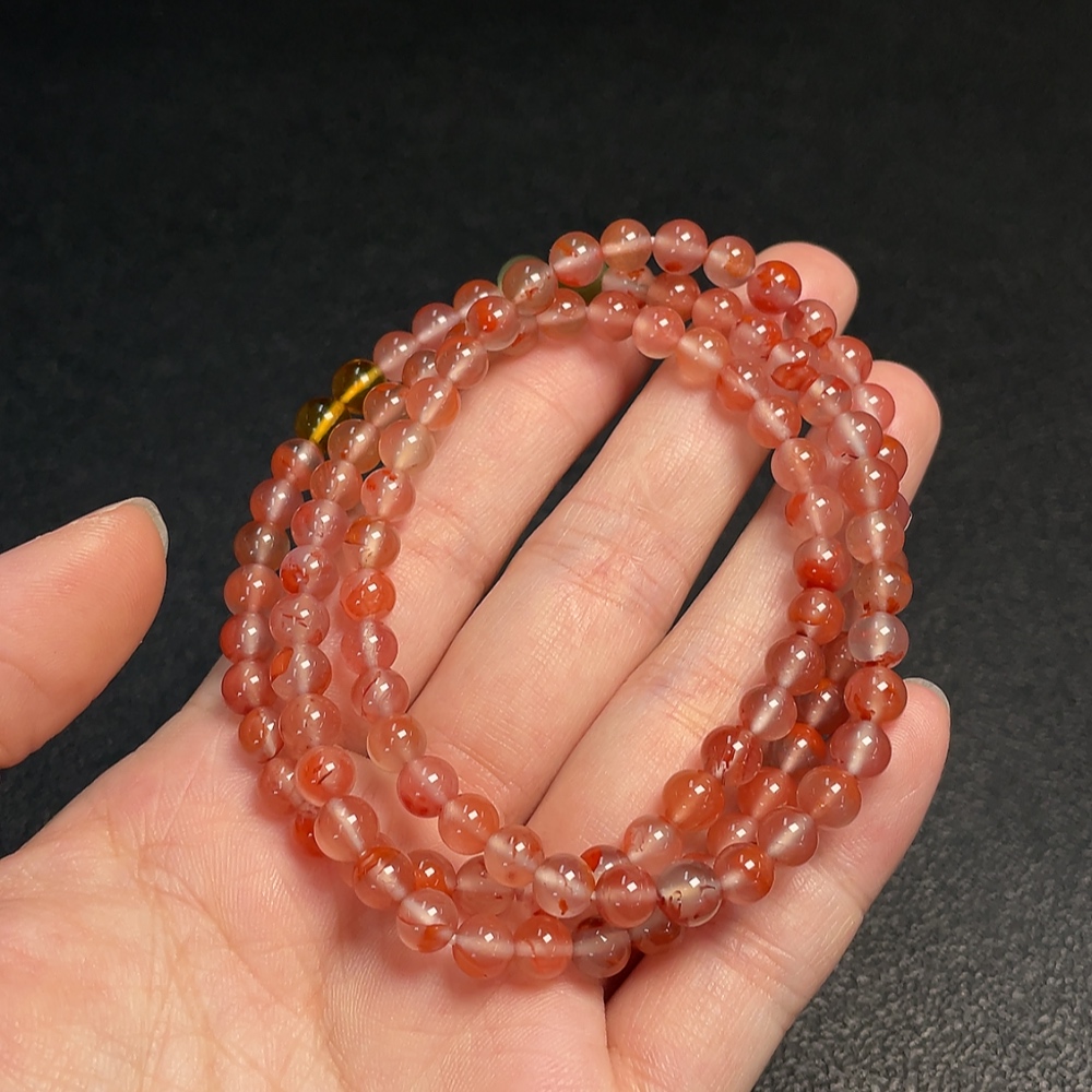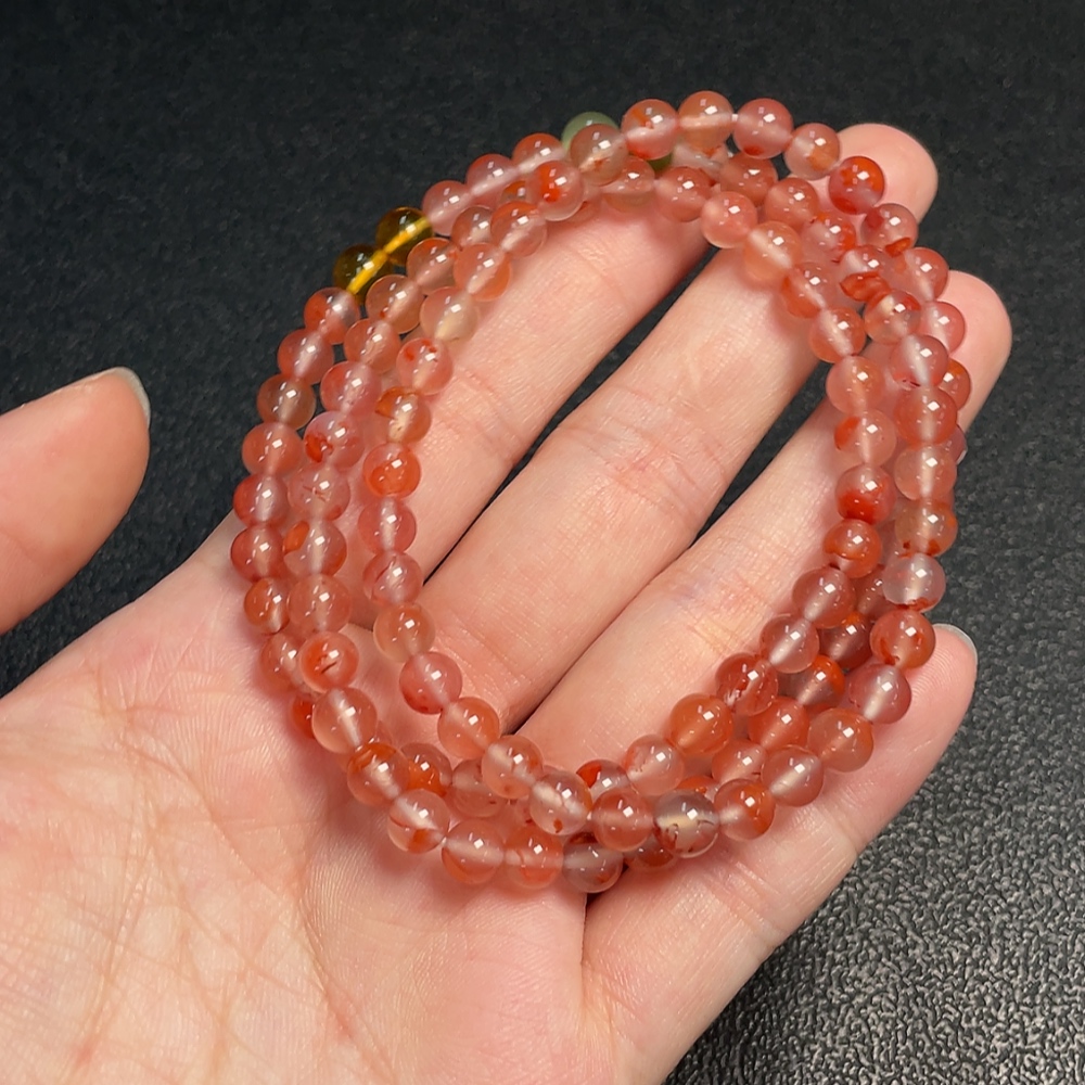 Red Agate Bead Necklace with Visible Organic Matter, Total Weight Approx. 25.56g, 5.8mm Beads, Amber Accents, Non-Natural Accent Stones Considered