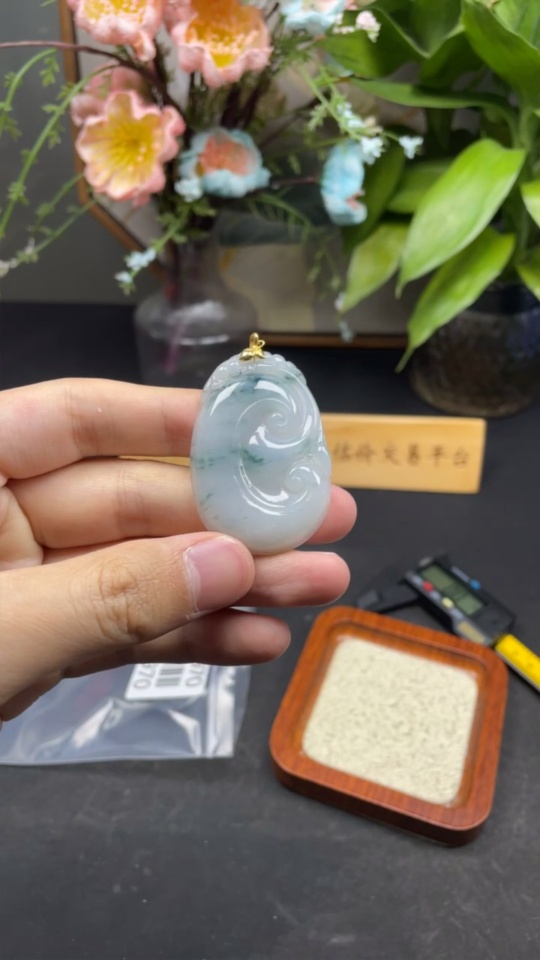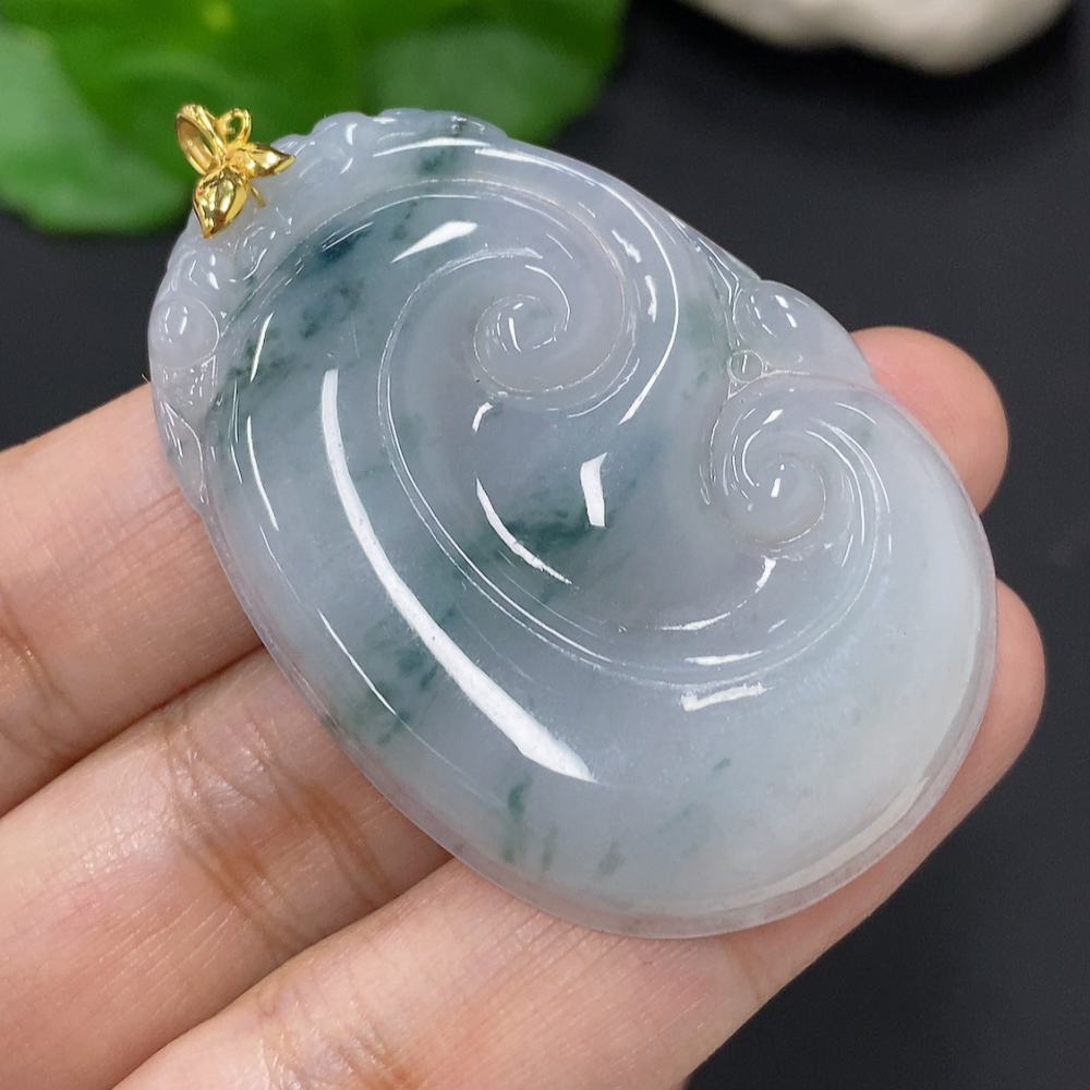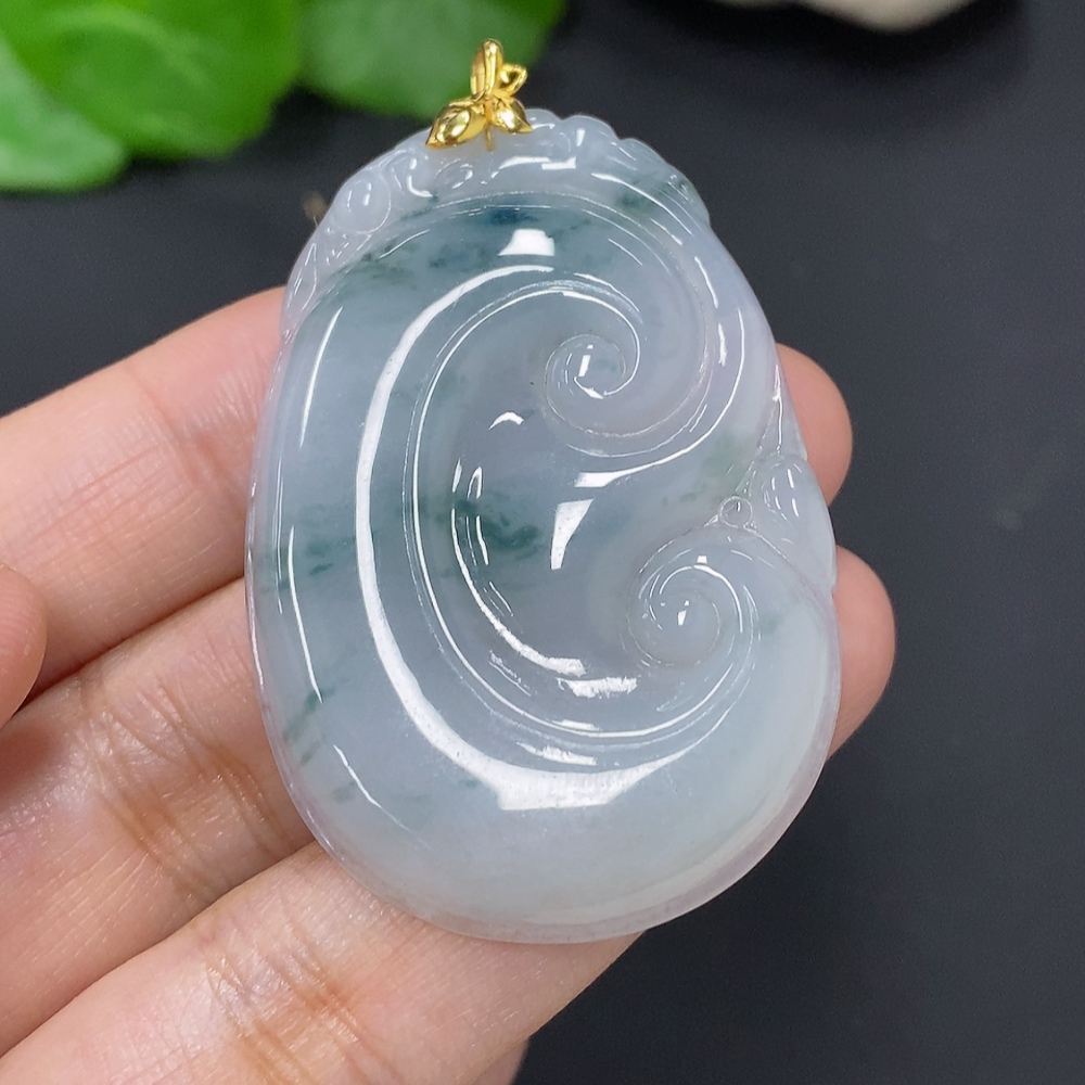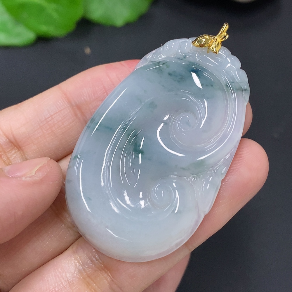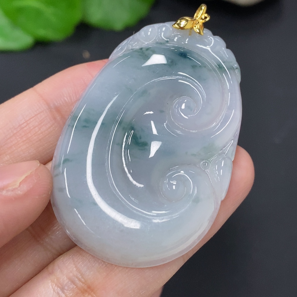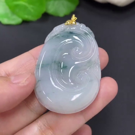 Jadeite Ruyi Pendant with 18K Gold Clasp, Total Weight Approximately 15.9g