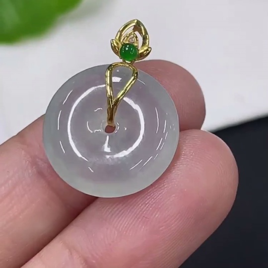 Jadeite Pendant Peace Buckle 18k Non-Diamond Total Weight Approx. 2.38g