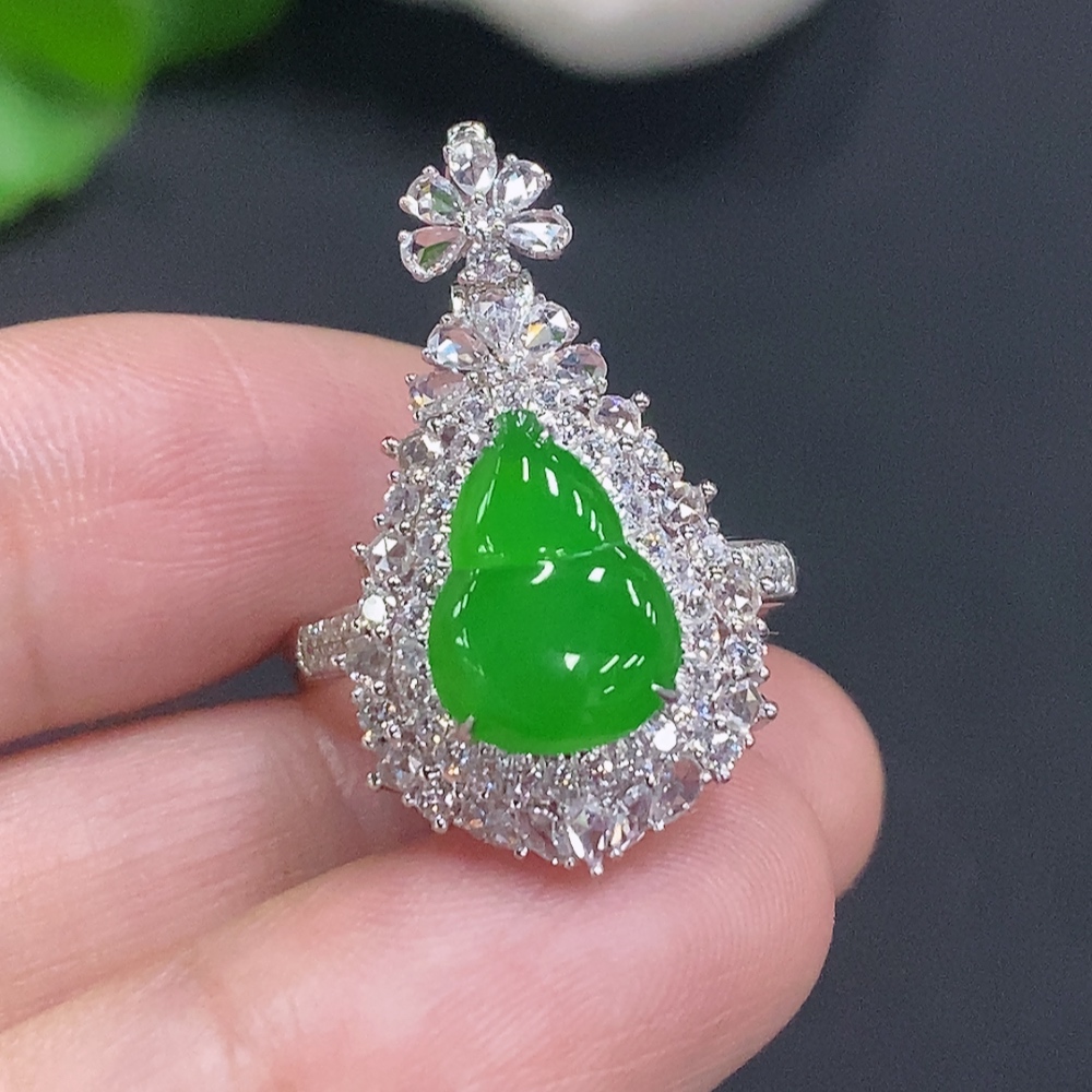 Trezaar - Jadeite Gourd Inlaid Ring/Pendant Two-Way Style 18K Goayit1yloa