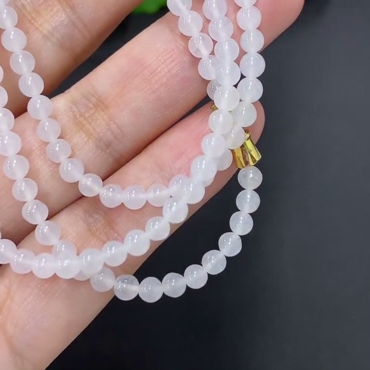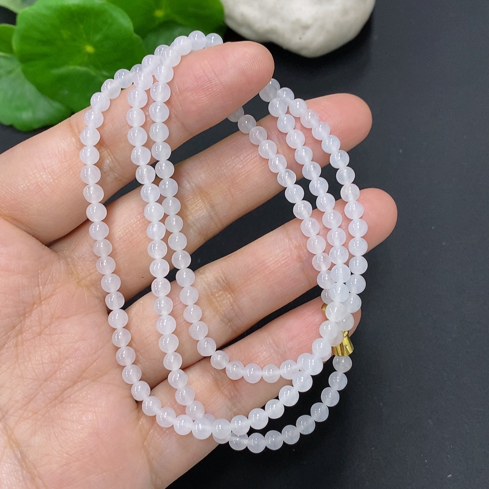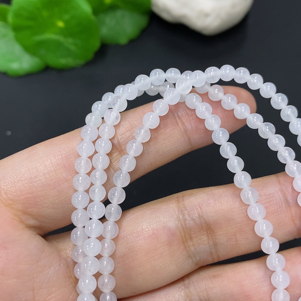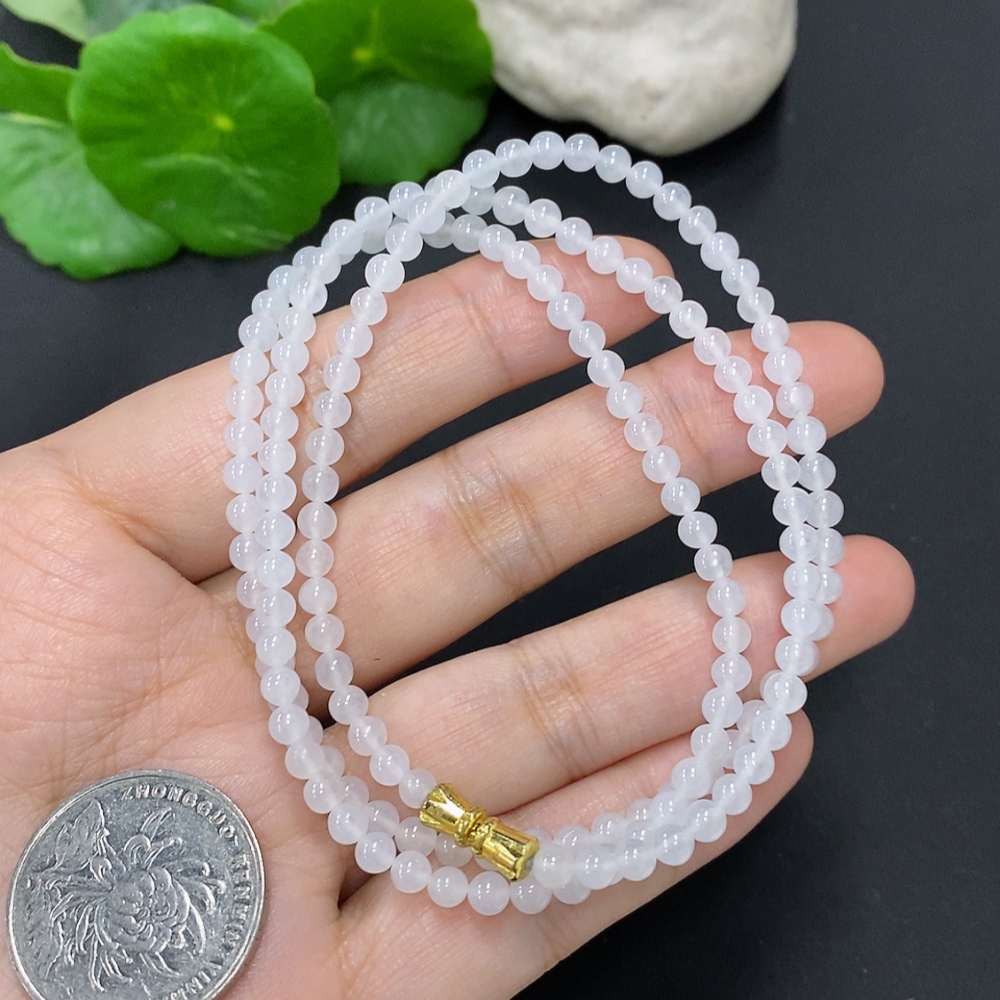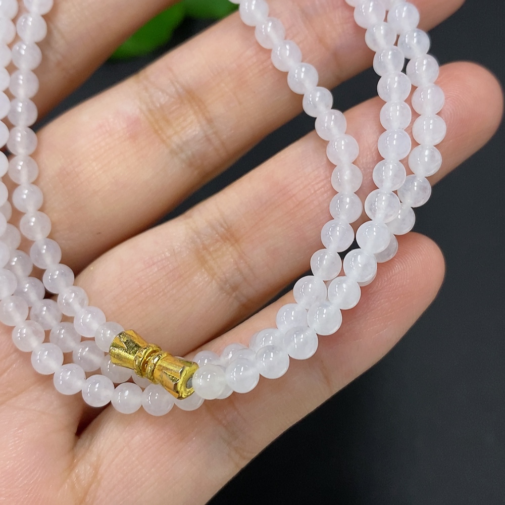 Jadeite Bead Necklace Approx. 3.8mm Non-Gold Total Weight Approx. 16.5g