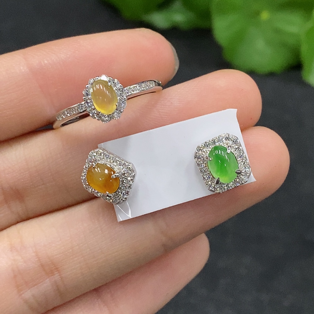 Jadeite Inlaid Piece Non-Gold Sell as a Lot Adjustable Color Origin Undetermined