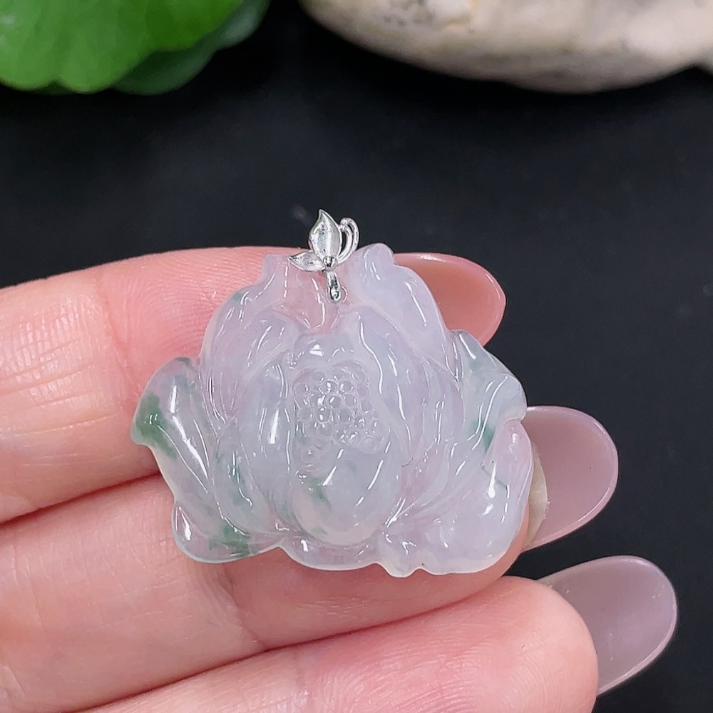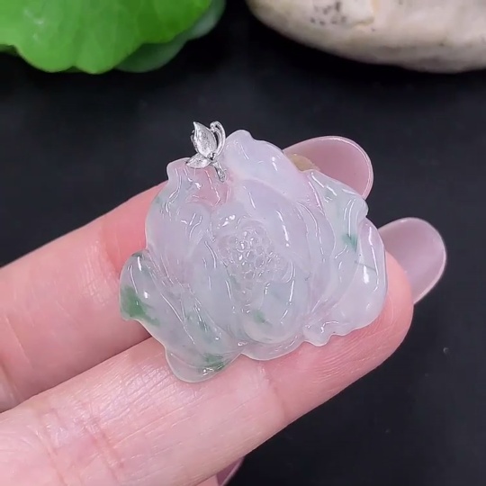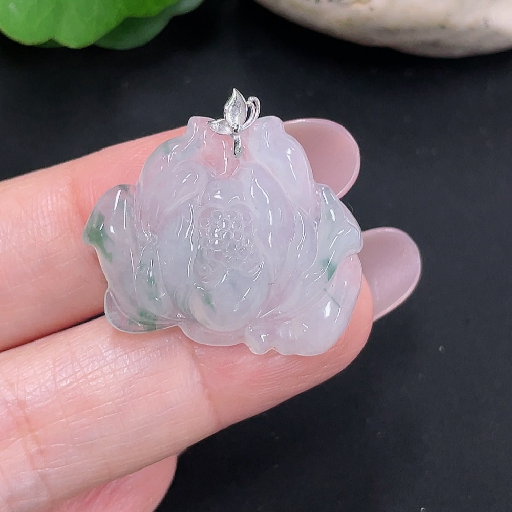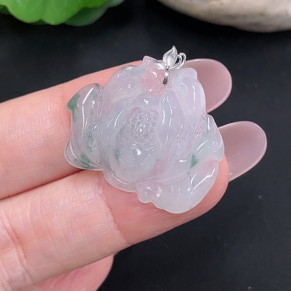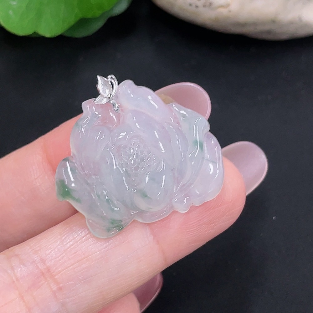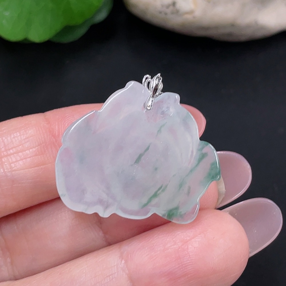 Jadeite floral plaque pendant with 18K gold, total weight approximately 4.7g