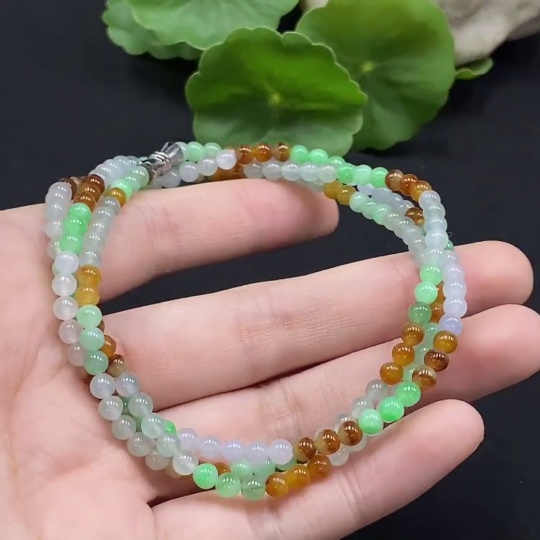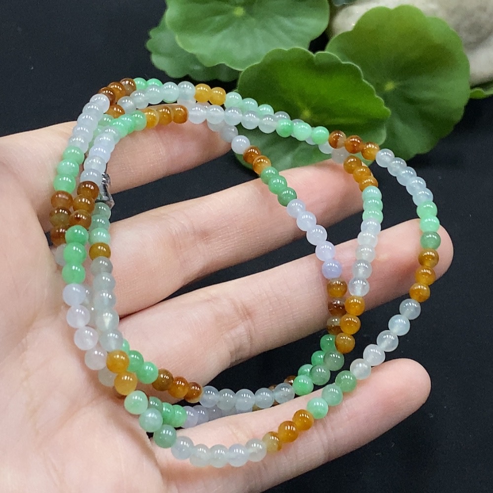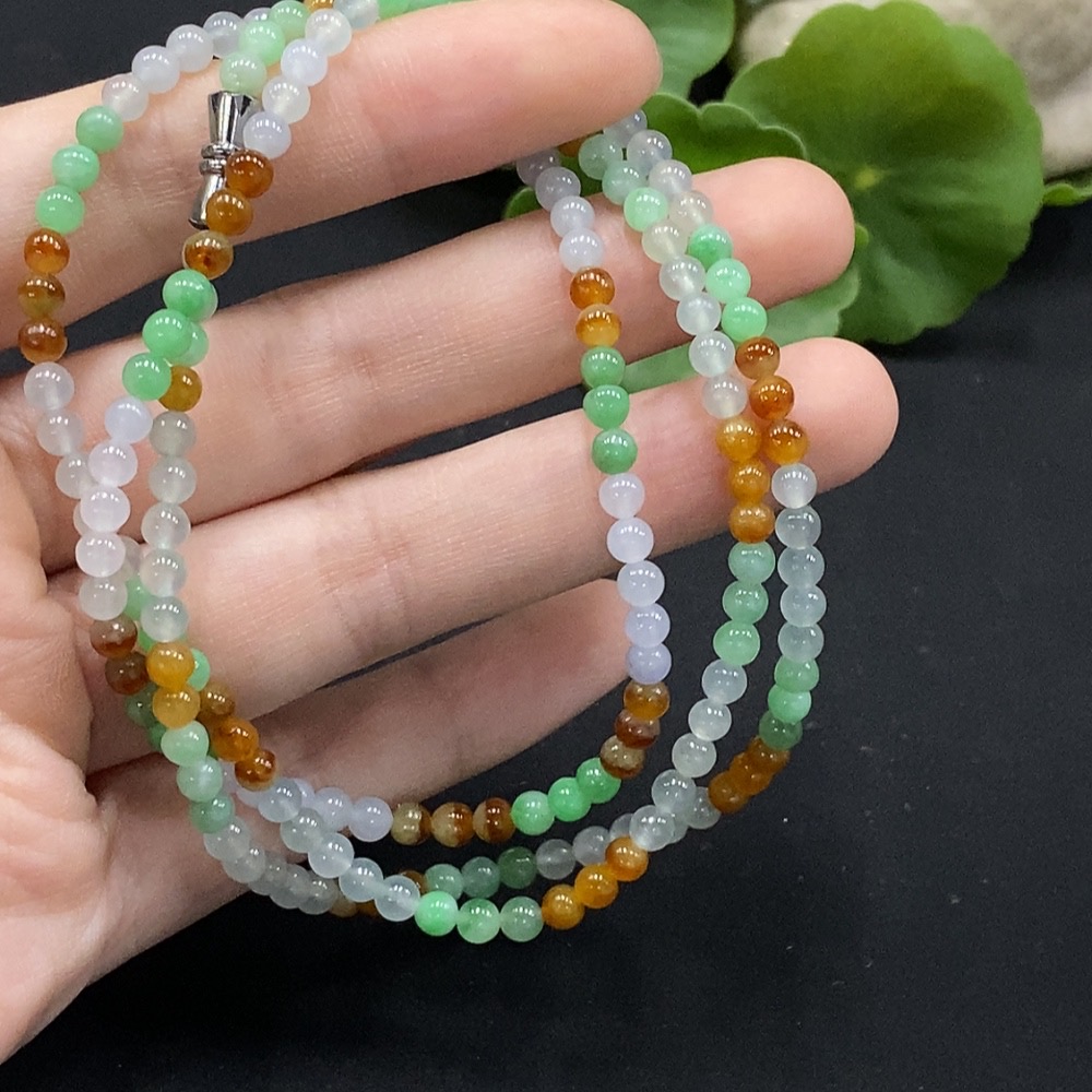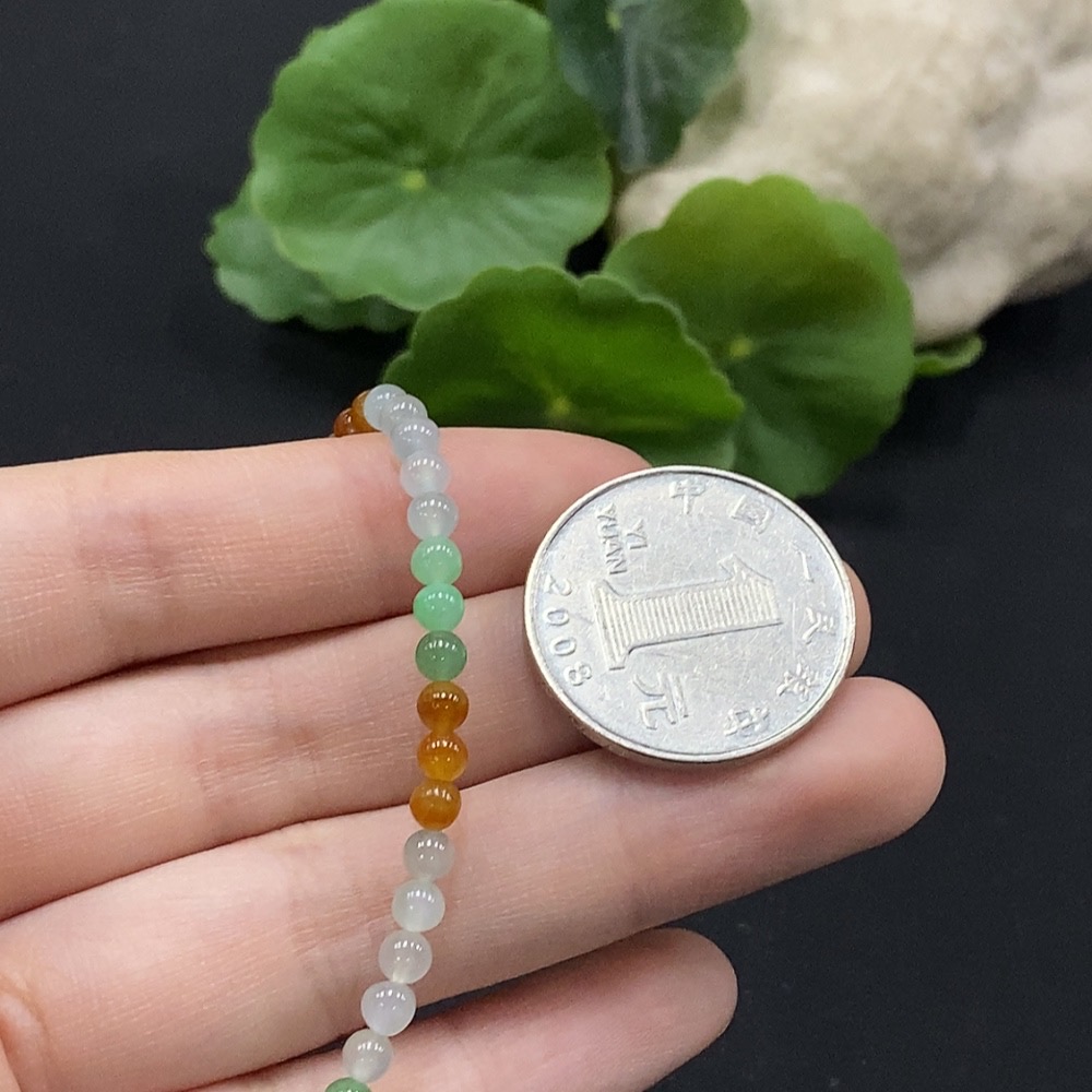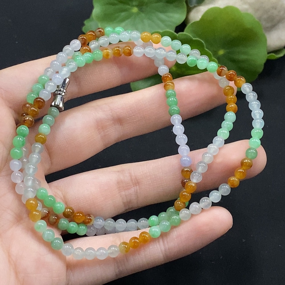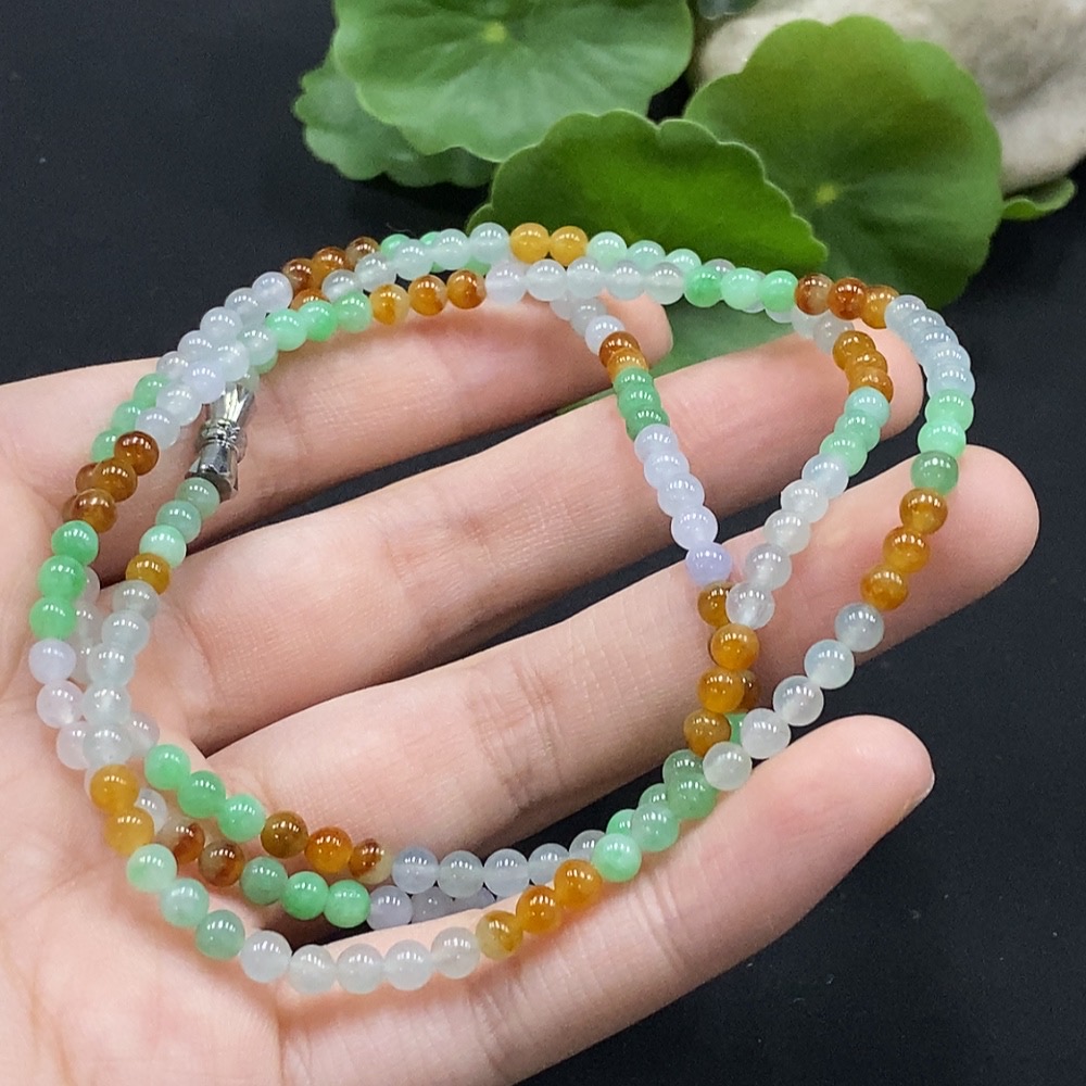 Jadeite Bead Necklace Approx. 3.7mm Non-Gold Setting Total Weight Approx. 16.86g