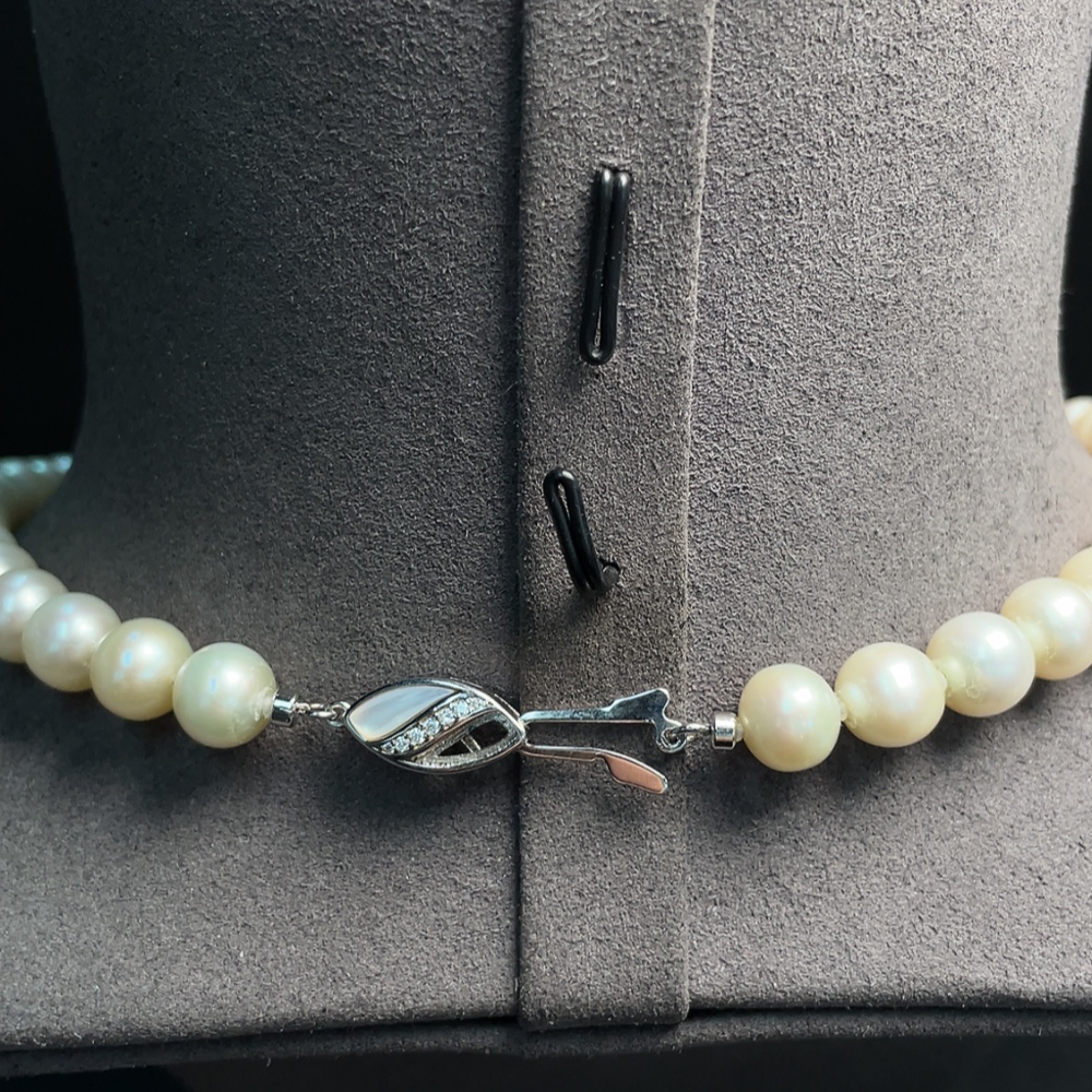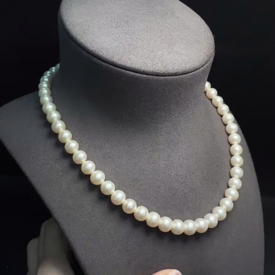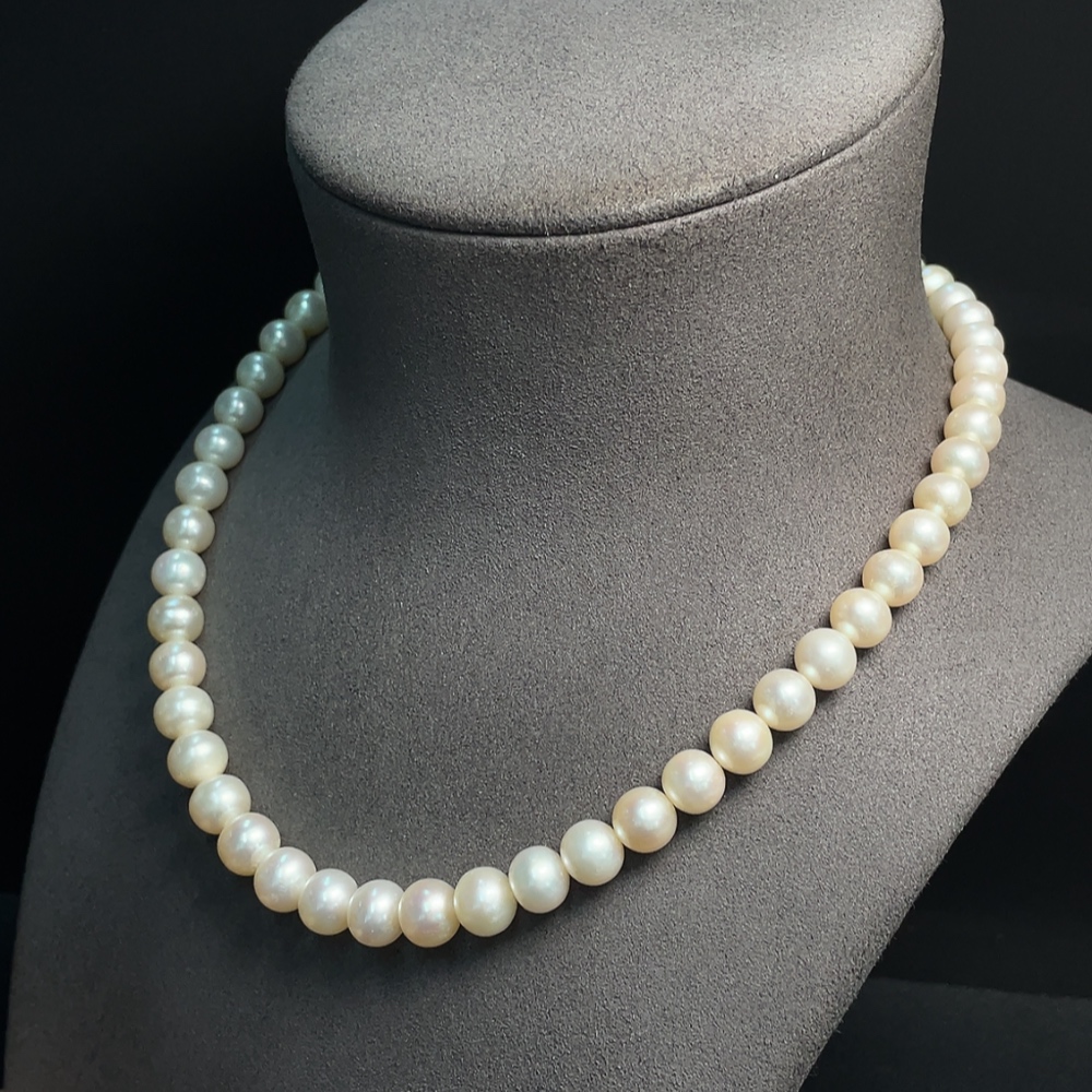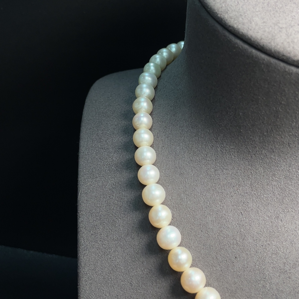 Pearl necklace with non-natural gemstones, non-gold, total weight approximately 47.06g, pearl size about 8-9.2mm